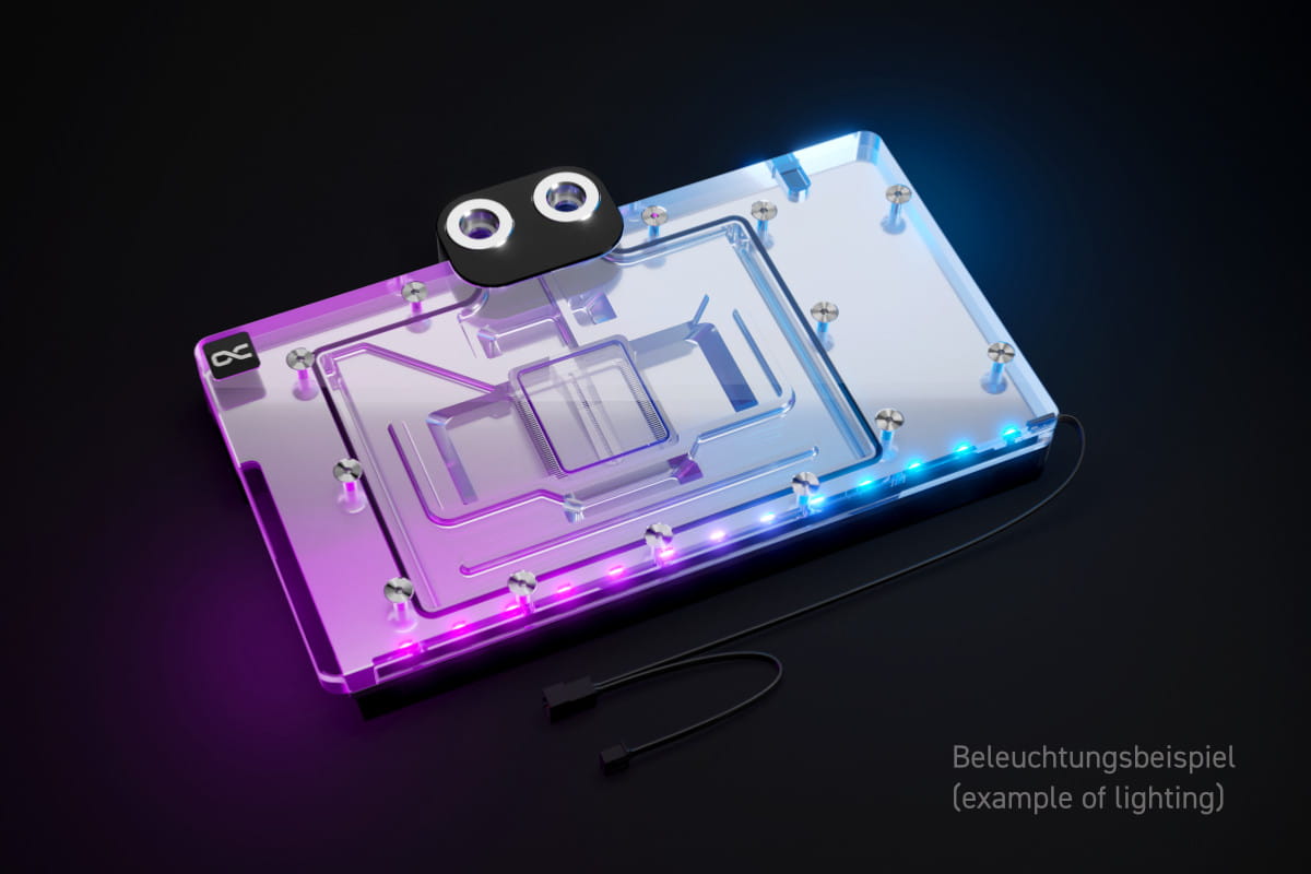 s Core Produktserie zeichnet sich aus durch hochwertige Qualität, herausragende Performance sowie der einheitlichen und funktionellen Designsprache. Der Kupferkühler, welcher gemeinsam mit dem Abschlussterminal aus einem Stück Kupfer gefräst wird, ist das Kernstück dieses Kühlers. Die feine Verarbeitung gepaart mit der harten und resistenten Verchromung des gesamten Kupferkühlers entsprechen den höchsten Qualitätsansprüchen. Die in Chrome belassenen, beidseitig integrierten G1/4? Gewinde aus Messing heben sich optisch vom Terminal ab und sind einer der Kernpunkte der neuen Designsprache, die sich bei allen Produkten der Core-Serie zeigen wird. Die dem Design angepasste Aluminium Backplate bildet gemeinsam mit dem Terminal eine Einheit und überzeugt auf der Rückseite des Kühlers mit einer klaren und homogenen Optik. Die Beleuchtung besteht aus digital adressierbaren RGB-LEDs, die den gesamten Kühler gleichmäßig und gut ausleuchten. Die technische Weiterentwicklung zeigt sich beim Wasserzulauf zur Düsenplatte sowie bei der Optimierung der Jetplate selbst. Diese wurde komplett neu gestaltet auf Basis von vielen Simulationen und praktischen Tests in Zusammenarbeit mit Boardpartnern. Die Finnendicke und Abstände wurden verändert, die Kühlfläche vergrößert und der Wasserfluss auf die Kernkomponenten mit der größten Wärmeabgabe optimiert. Die beiliegenden speziellen Soft Wärmeleitpads mit bis zu 7 W/mK passen sich perfekt selbst kleinsten Toleranzen an. Kompatibilität: Hinweis: Diese Version (V.2) des Kühlers ist mit dem PCB Layout V.1.1 kompatibel – Gigabyte AORUS GeForce RTX 4090 Master 24G, 24GB GDDR6X (GV-N4090AORUS M-24GD) – Gigabyte GeForce RTX 4090 Gaming OC 24G, 24GB GDDR6X (GV-N4090GAMING OC-24GD) Technische Daten Kühler Abmessungen (L x B x H) 235,80 x 152,96 x 31,90mm Material Kühlerboden verchromtes Kupfer Material Kühleroberseite Acryl Maximale Arbeitstemperatur 60°C Druckgetestet 0,8 bar Anschlüsse 4 x G1/4" Dicke Kühlerboden 11,3mm Dicke Kühlfinnen 0,4mm Abstand Kühlfinnen 0,4mm Beleuchtung digital aRGB LEDs Stromanschluss digital aRGB LEDs 3-Pin JST Spannung digital aRGB LEDs 5V Anzahl digital aRGB LEDs 13 Farbe transparent Technische Daten Backplate Abmessungen (L x B x H) 235,80 x 129,96 x 5mm Material Aluminium Farbe schwarz Garantie: 3 Jahre 🔗 Garantiebestimmungen