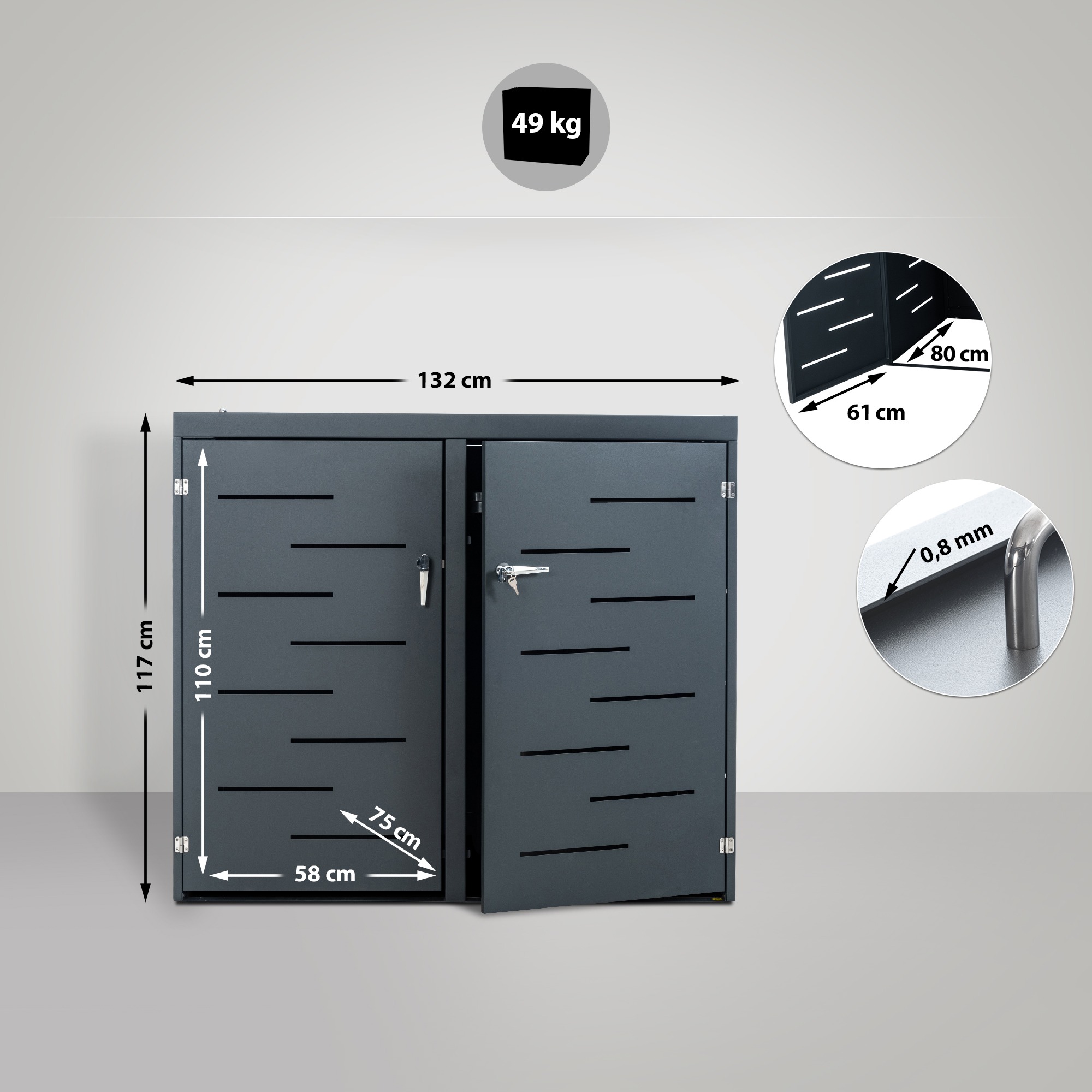 Neben dem modernen Äußeren hat die Mülltonnen-Box besonders vorteilhafte Eigenschaften. Zunächst gestaltet sich das Handling als besonders einfach. Über die abschließbaren Türen können die Mülltonnen entnommen werden. Zum Befüllen der Tonnen ist dies aber nicht notwendig, da die Schiebedeckel an der Oberseite einfachen Zugang zu den Mülltonnen gewähren.