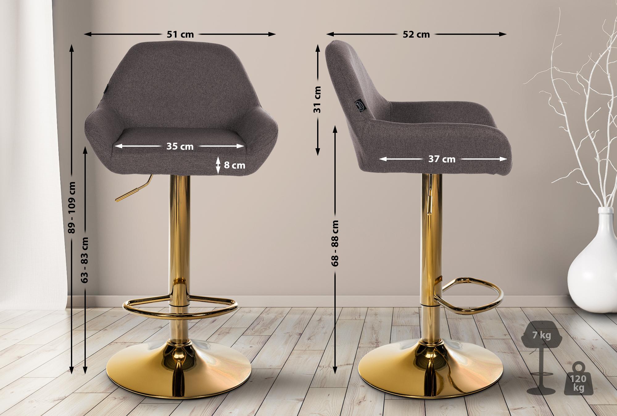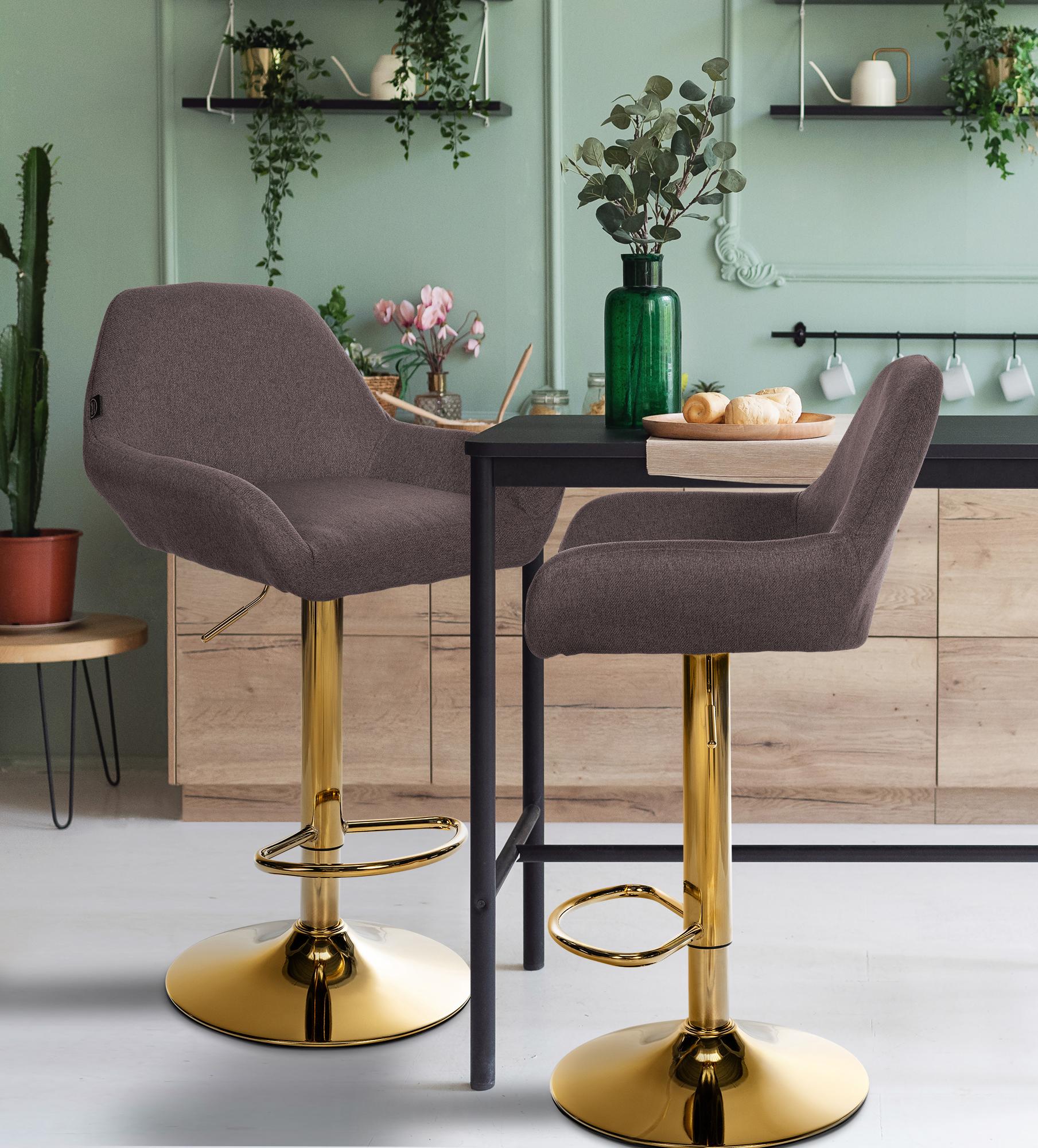 2er Set Barhocker Braga Stoffbezug mit Goldgestell