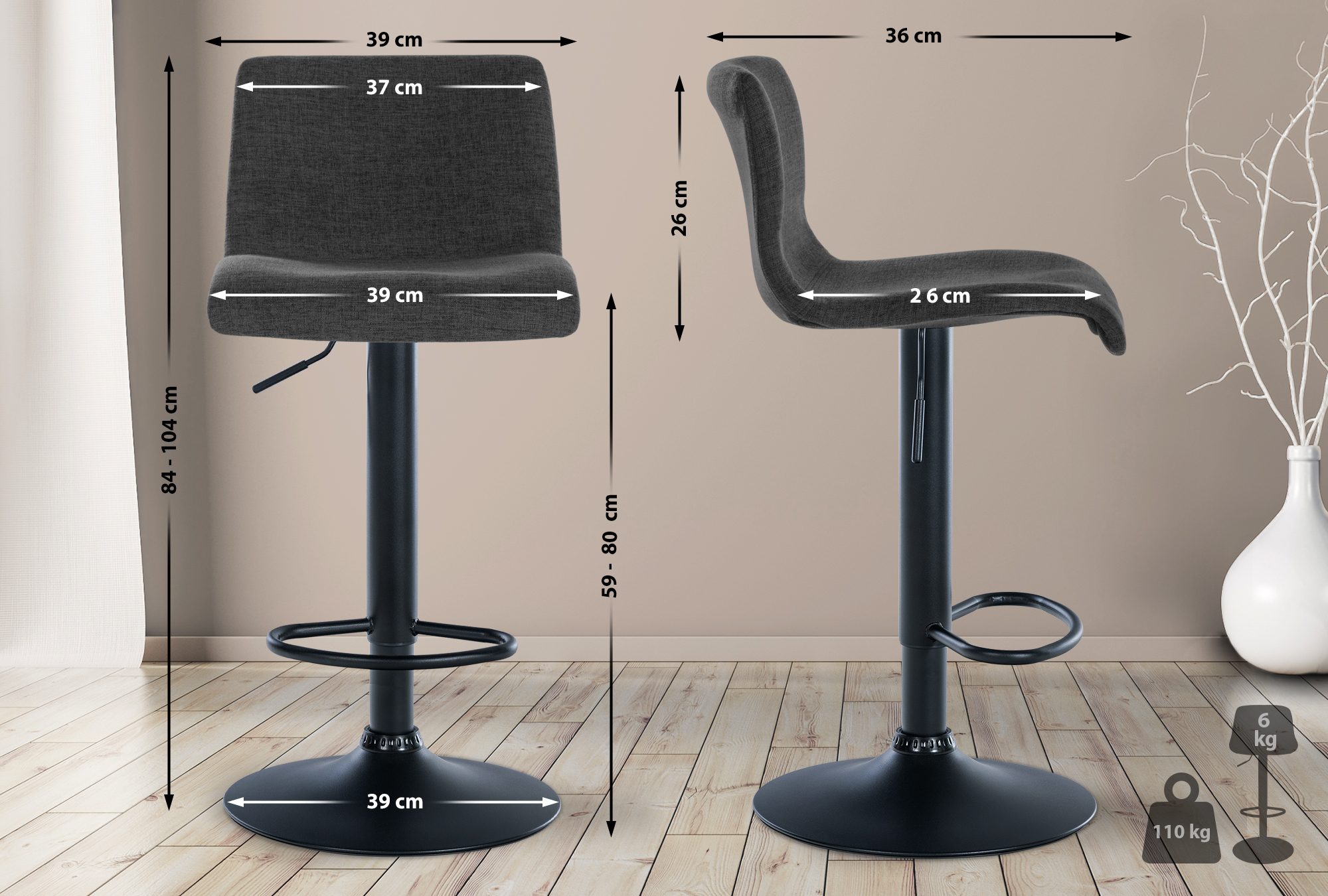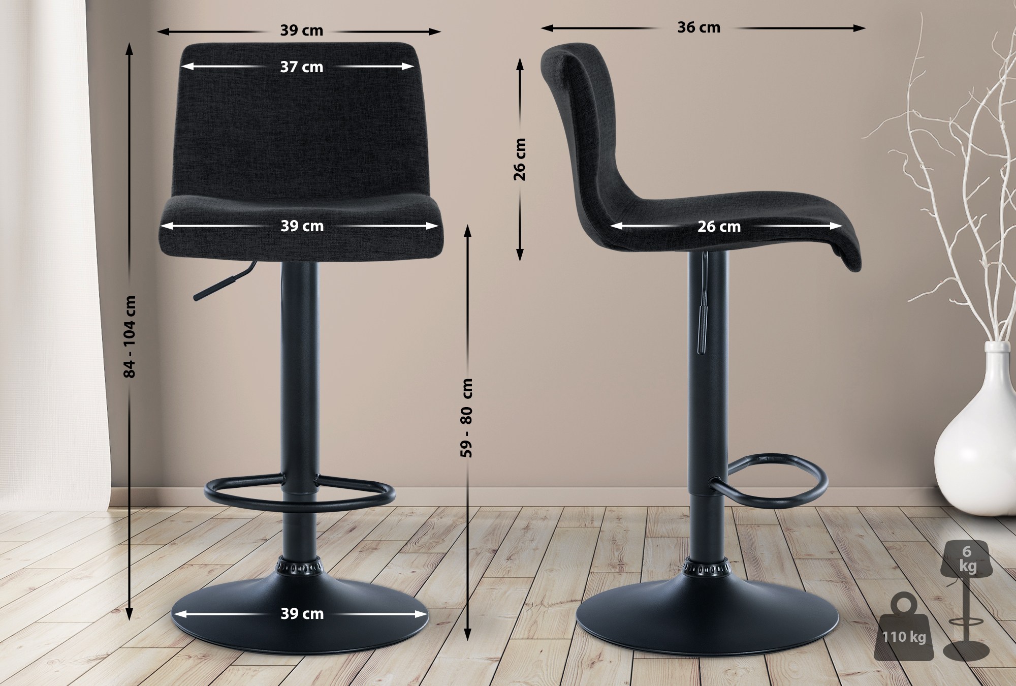 Der Barhocker Branford ist ein moderner und stilvoller Tresenhocker. Der Barhocker ist in zwei verschiedenen Ausführungen erhältlich. Entweder mit einer bequemen Kunststoffoberfläche oder einem weichen Stoffbezug. Der Tresenstuhl ist um 360° Grad drehbar und bietet eine stufenlose Höhenverstellung, sodass er sich an jede Tresenhöhe anpassen lässt. Die Fußstütze, die einen sehr guten Sitzkomfort gewährleistet, ist synchron mit der Höhe des Sitzes verstellbar.