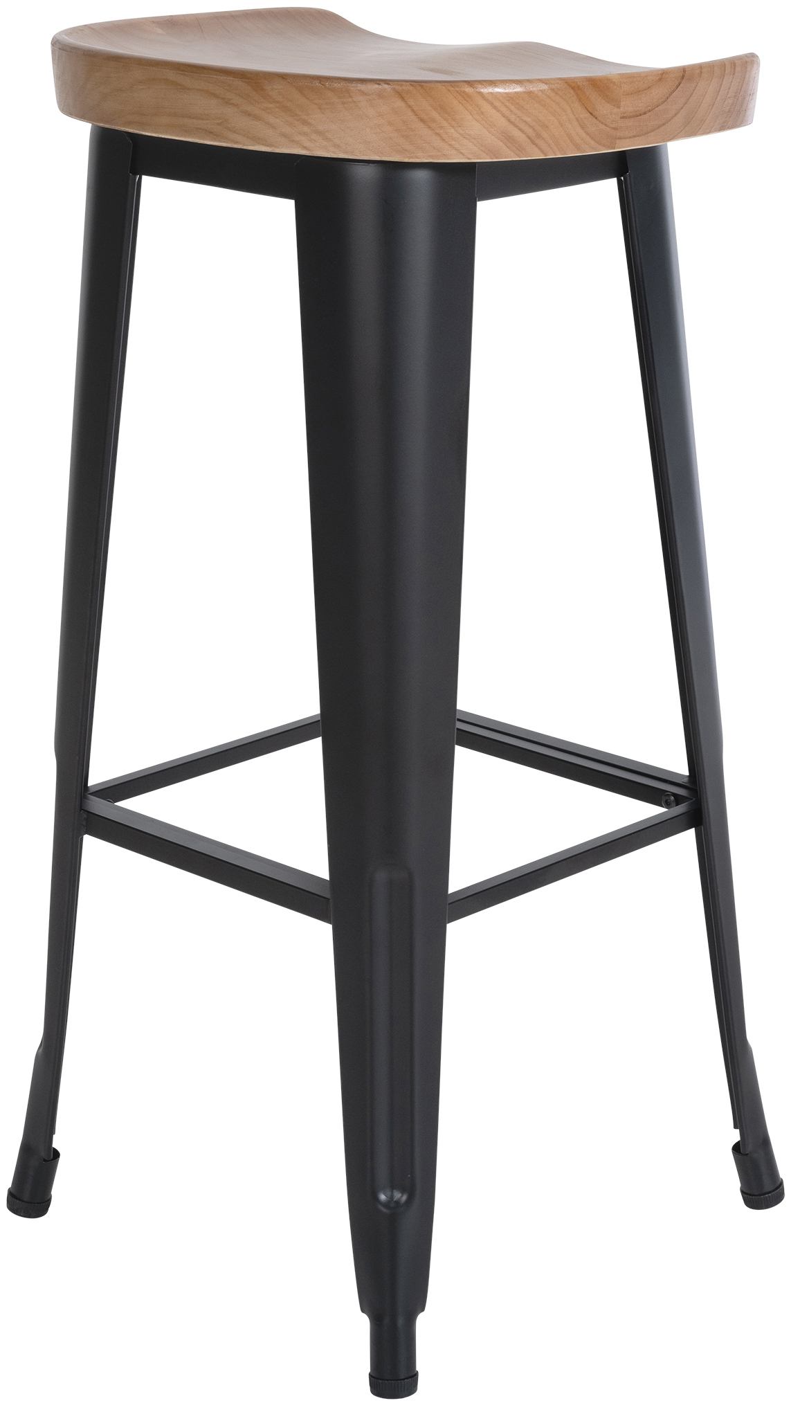 Die Sitzbereiche der Tresenstühle bestehen aus massivem Holz mit guten Festigkeitseigenschaften und ist damit ideal geeignet für die Fertigung hochwertiger Möbel. Die Oberflächen sind präzise geschliffen, sodass die Barhocker eine besonders angenehme Haptik haben. Die Hocker stehen auf Vierfußgestellen aus matt-schwarzem Metall.