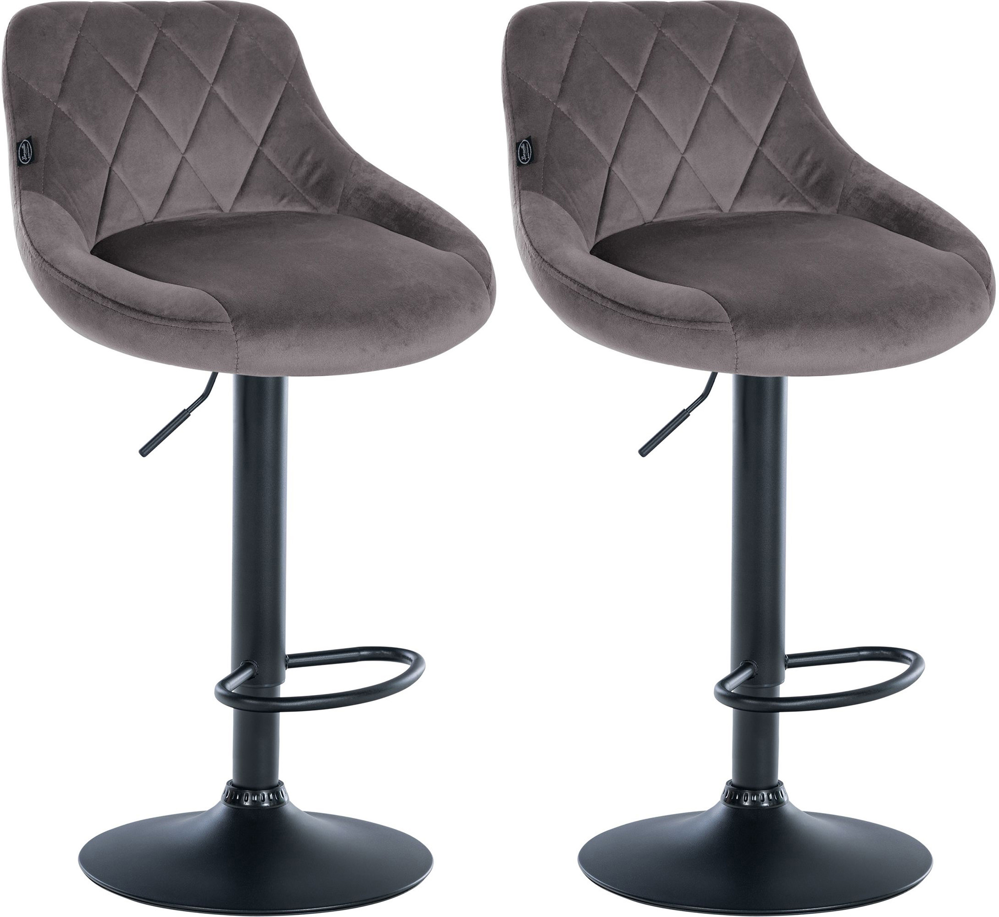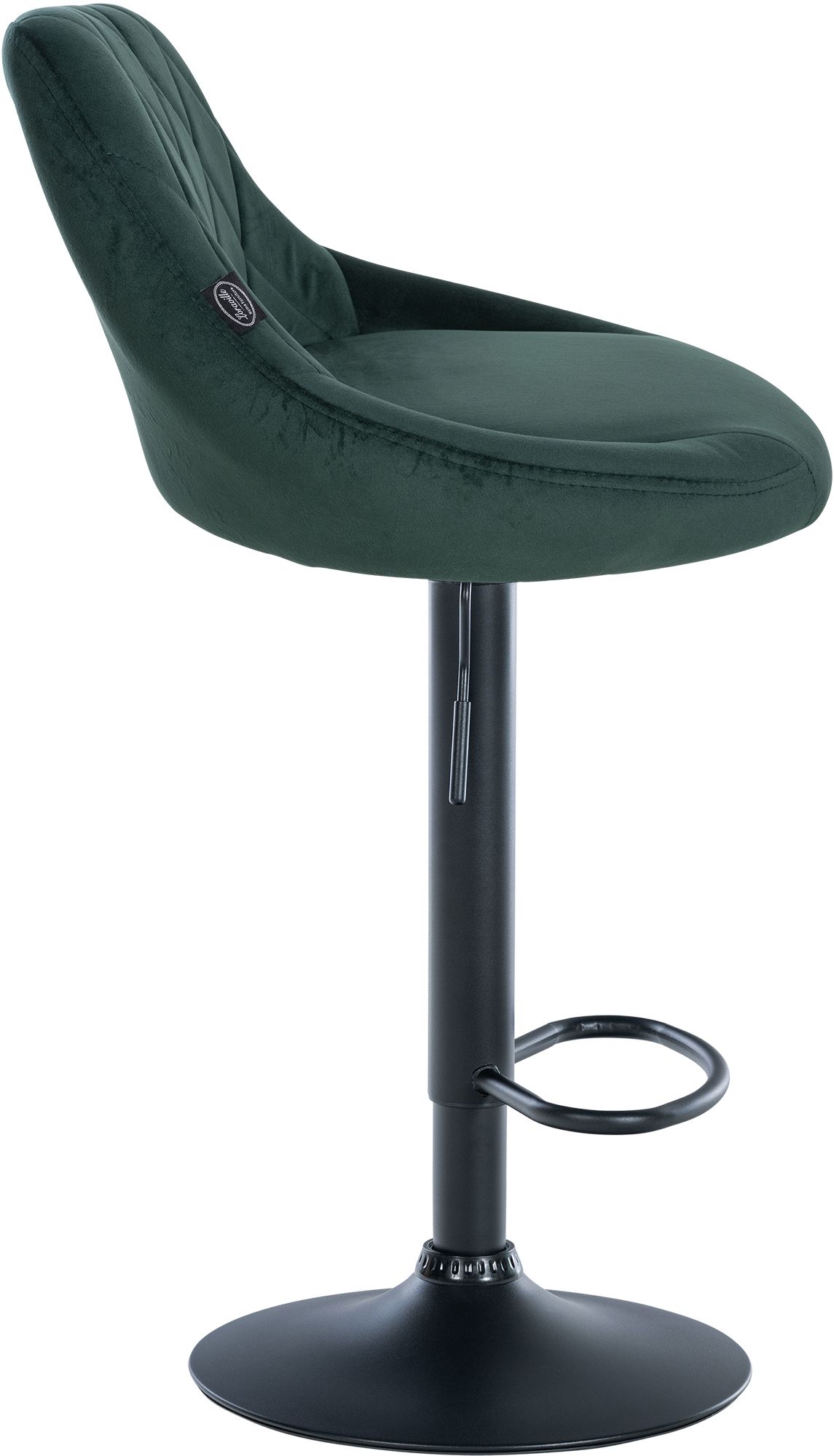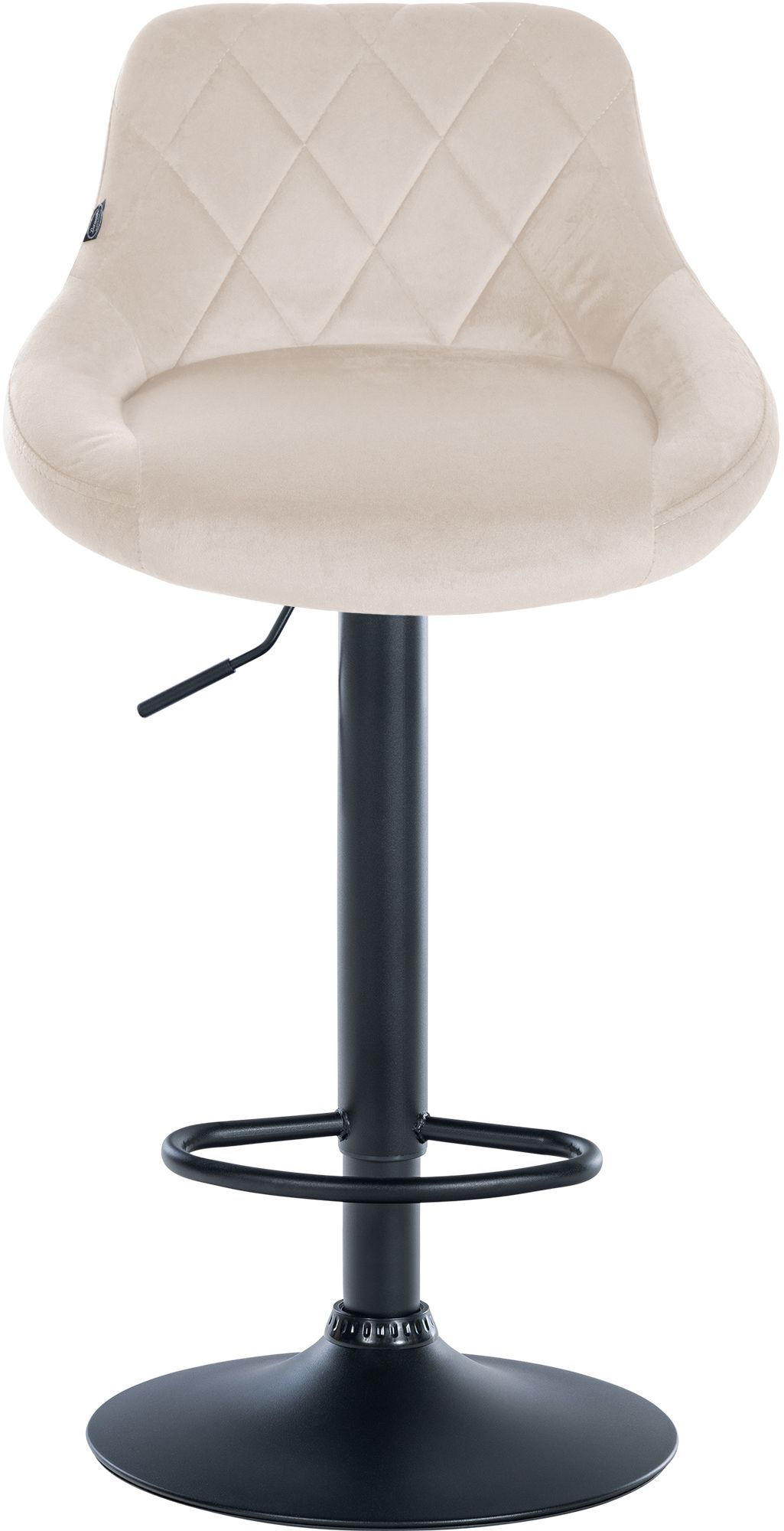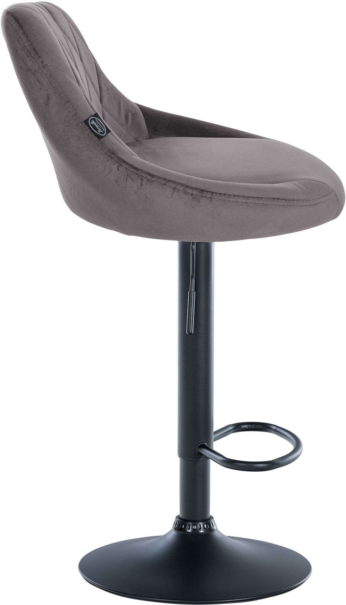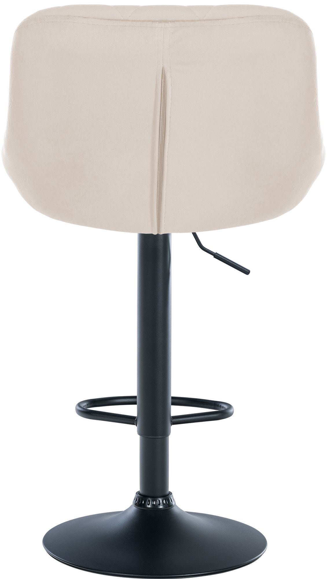 Diese Hocker bestechen durch ihr stilvolles Design. Der Sitz ist mit Samtstoff bezogen und mit aufwendigen Ziernähten verarbeitet. Mithilfe des Gaslifts lässt sich dieses Modell in der Wunschhöhe stufenlos einstellen, sodass er für jede Thekenhöhe bestens geeignet ist. Die Fußstütze, die einen hervorragenden Sitzkomfort gewährleistet, ist synchron mit der Höhe des Sitzes verstellbar. Die Sitzfläche ist mit der Fußablage um 360° drehbar. Das Gestell besteht aus Metall, unter dem Trompetenfuß befinden sich Bodenschoner, die ein Verkratzen des Bodens verhindern.