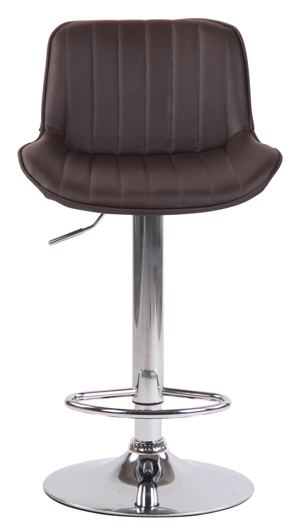 Diese Barhocker verleihen jedem Raum einen exklusiven Look und bestechen nicht nur durch ihre hervorragenden Sitzeigenschaften, sondern auch durch ihr modernes Design. Der Sitz ist mit einem pflegeleichten Kunstlederbezug versehen. Mithilfe des Gaslifts lässt sich dieses Modell in der Wunschhöhe stufenlos einstellen, sodass er für jede Thekenhöhe bestens geeignet ist. Die Fußstütze, die einen sehr guten Sitzkomfort gewährleistet, ist synchron mit der Höhe des Sitzes verstellbar. Die Sitzfläche ist mit der Fußablage um 360° drehbar. Das Gestell besteht wahlweise aus Metall in Chromoptik, weißem oder schwarzem Metall. Zudem befinden sich unter dem Trompetenfuß Bodenschoner, die ein Verkratzen der Oberflächen verhindern.