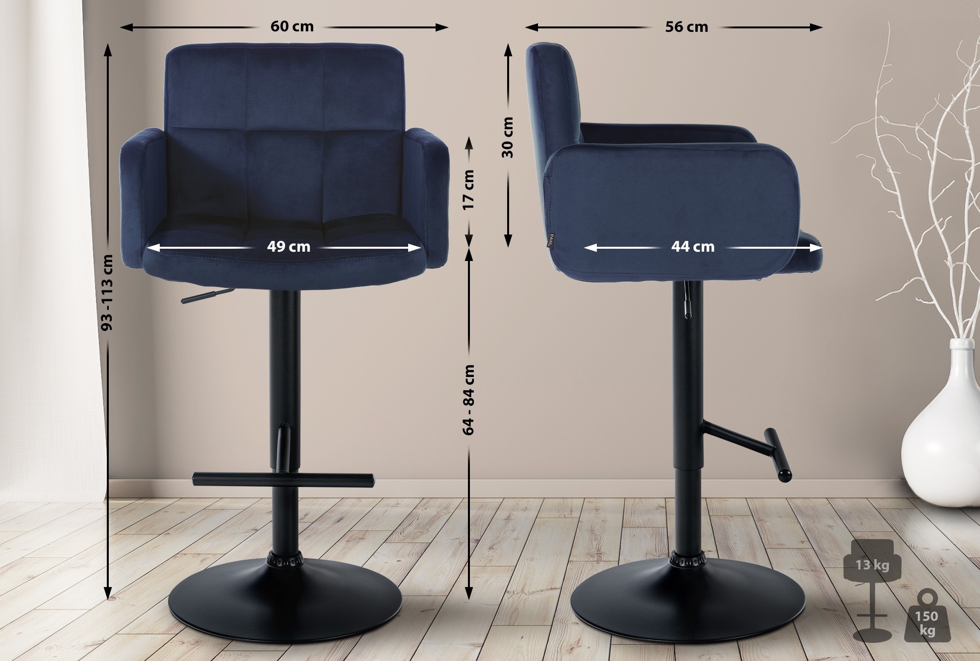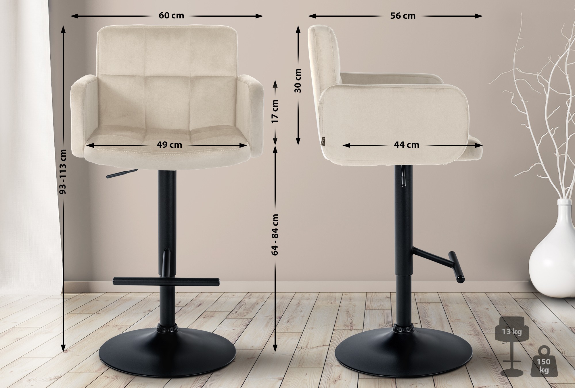 Home » Shop »2er Set Barhocker Los Angeles Samt schwarz