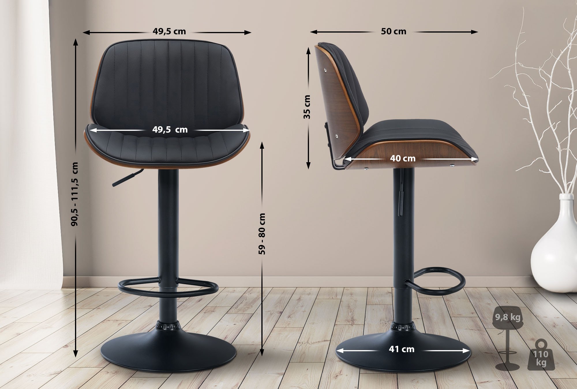 Diese Barhocker Nova verkörpern zeitlose Eleganz und modernen Komfort. Die Kombination des mit Ziernähten ausgestatteten Kunstleder-Bezugs und dem eleganten Rahmen aus hochwertigem Bugholz macht diese Stühle zu einem Highlight.