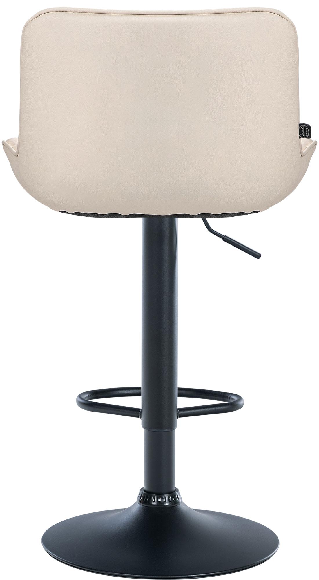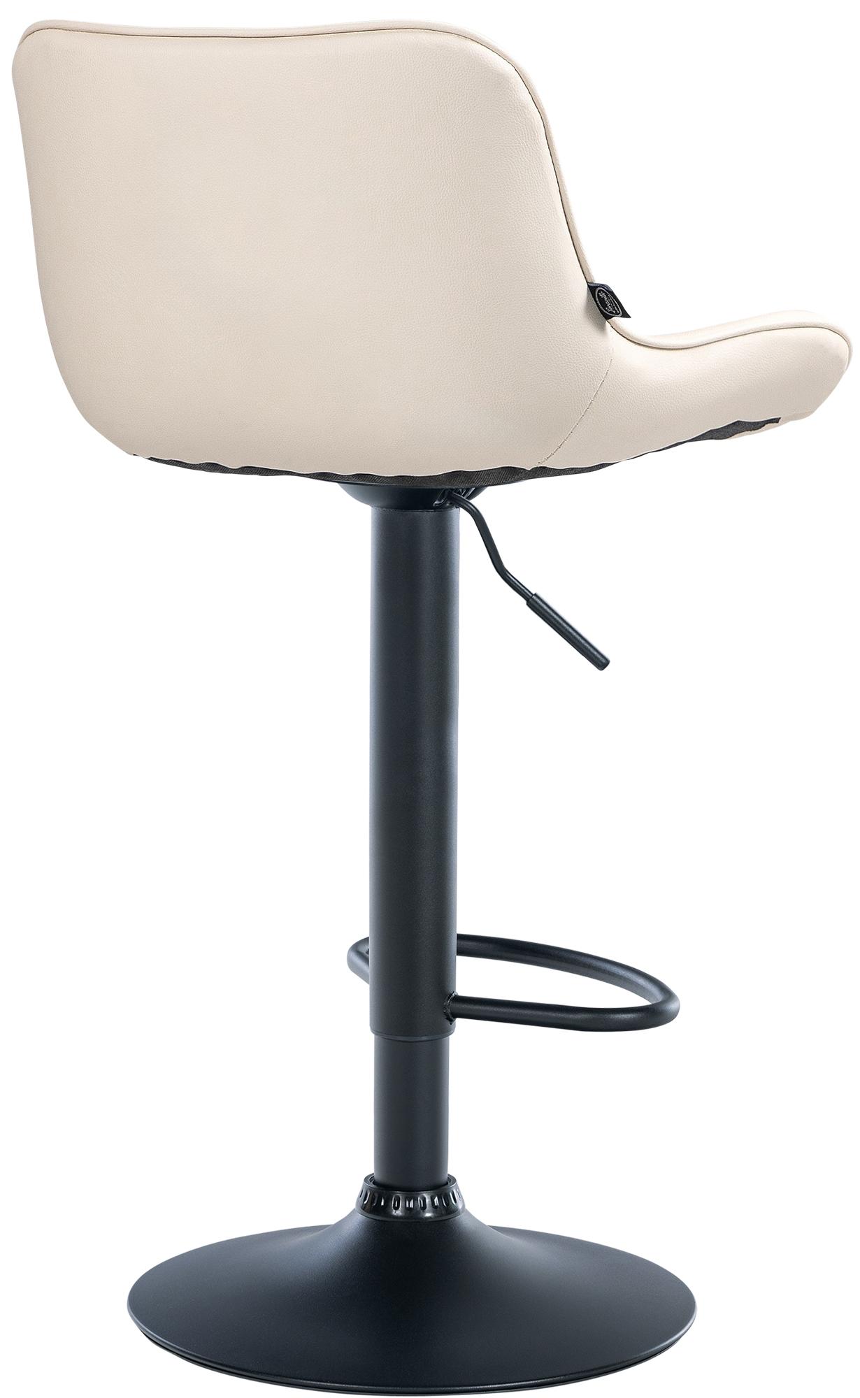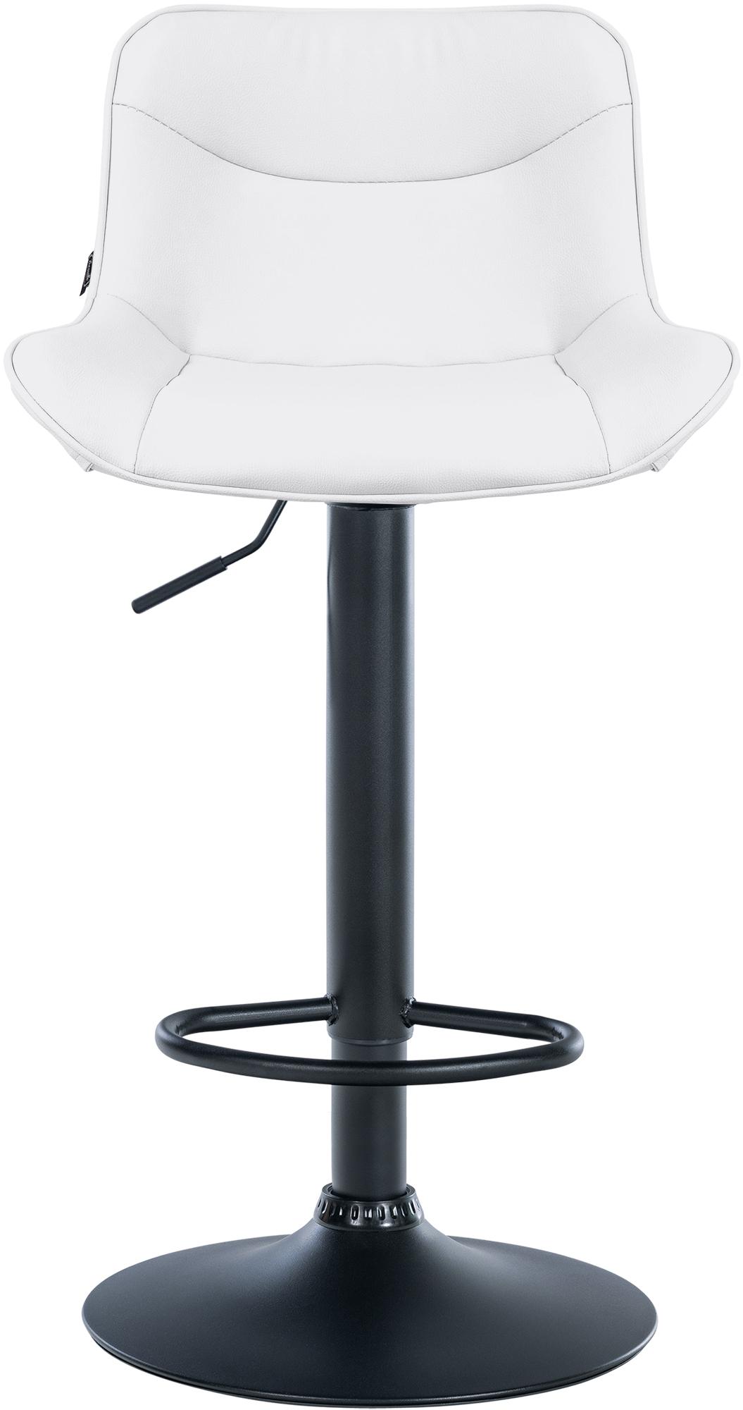 Das Metallgestell und der Trompetenfuß sorgen für Stabilität und Langlebigkeit. Die integrierte Fußstütze passt sich der Sitzhöhe an und bietet zusätzliche Unterstützung. Der Kunstledersitz ist pflegeleicht und langlebig. Bodenschoner schützen vor Kratzern.