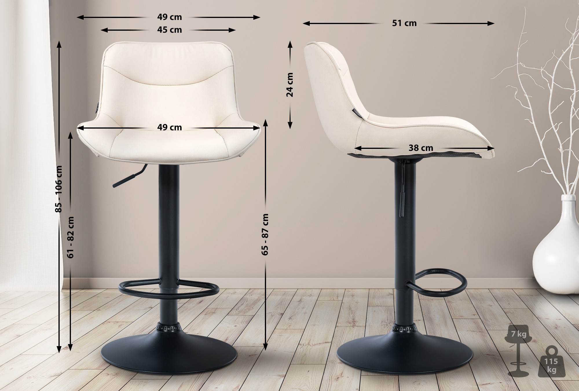 Der Barhocker Vonore Kunstleder kombiniert Funktionalität und modernes Design. Der höhenverstellbare Barhocker bietet einen gepolsterten Sitz und eine ergonomische Form für optimalen Komfort. Die 360° Drehfunktion und die stufenlose Höhenverstellung ermöglichen flexible Sitzpositionen.