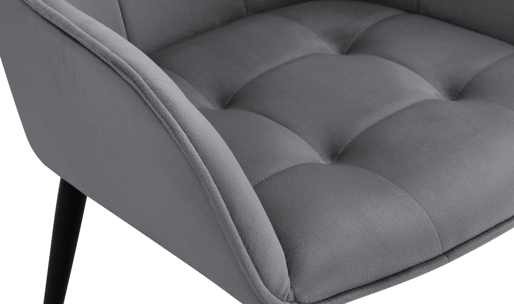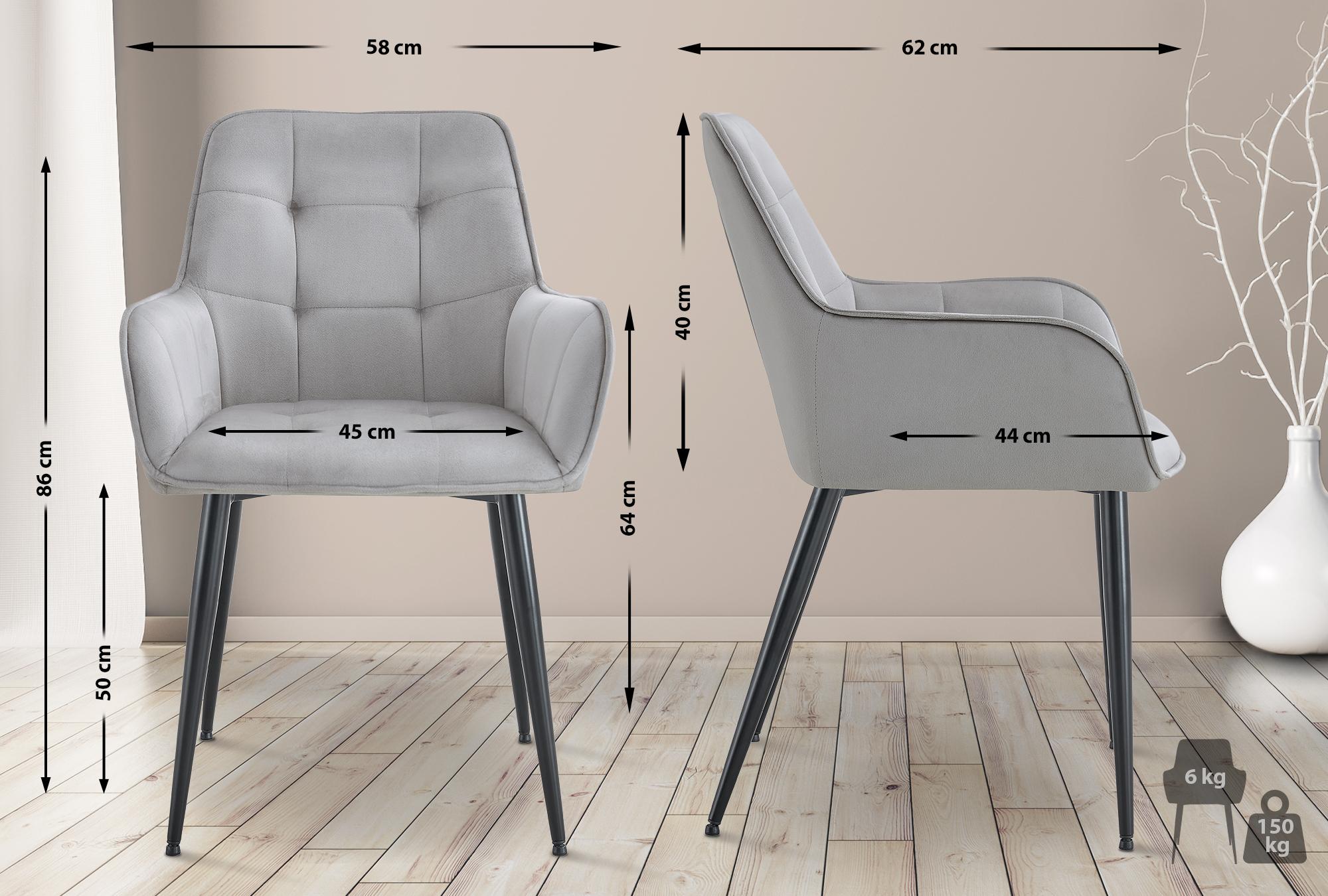 Dieser Esszimmerstuhl kombiniert modernes Design mit komfortabler Funktionalität. Die gepolsterte Sitzfläche und Armlehnen bieten angenehmen Halt. Der pflegeleichte Samtbezug sorgt für eine stilvolle Optik, während das stabile Metallgestell mit Bodenschonern den Boden vor Kratzern schützt und Rutschen verhindert.Mit einer Belastbarkeit bis 150 kg und ergonomischer Form ist der Sessel ideal für längeres Sitzen geeignet. Der Armlehnstuhl ist in verschiedenen Farben verfügbar. Dieser Stuhl fügt sich harmonisch in unterschiedliche Einrichtungsstile ein – perfekt für Esszimmer, Schlafzimmer oder als Lesesessel.