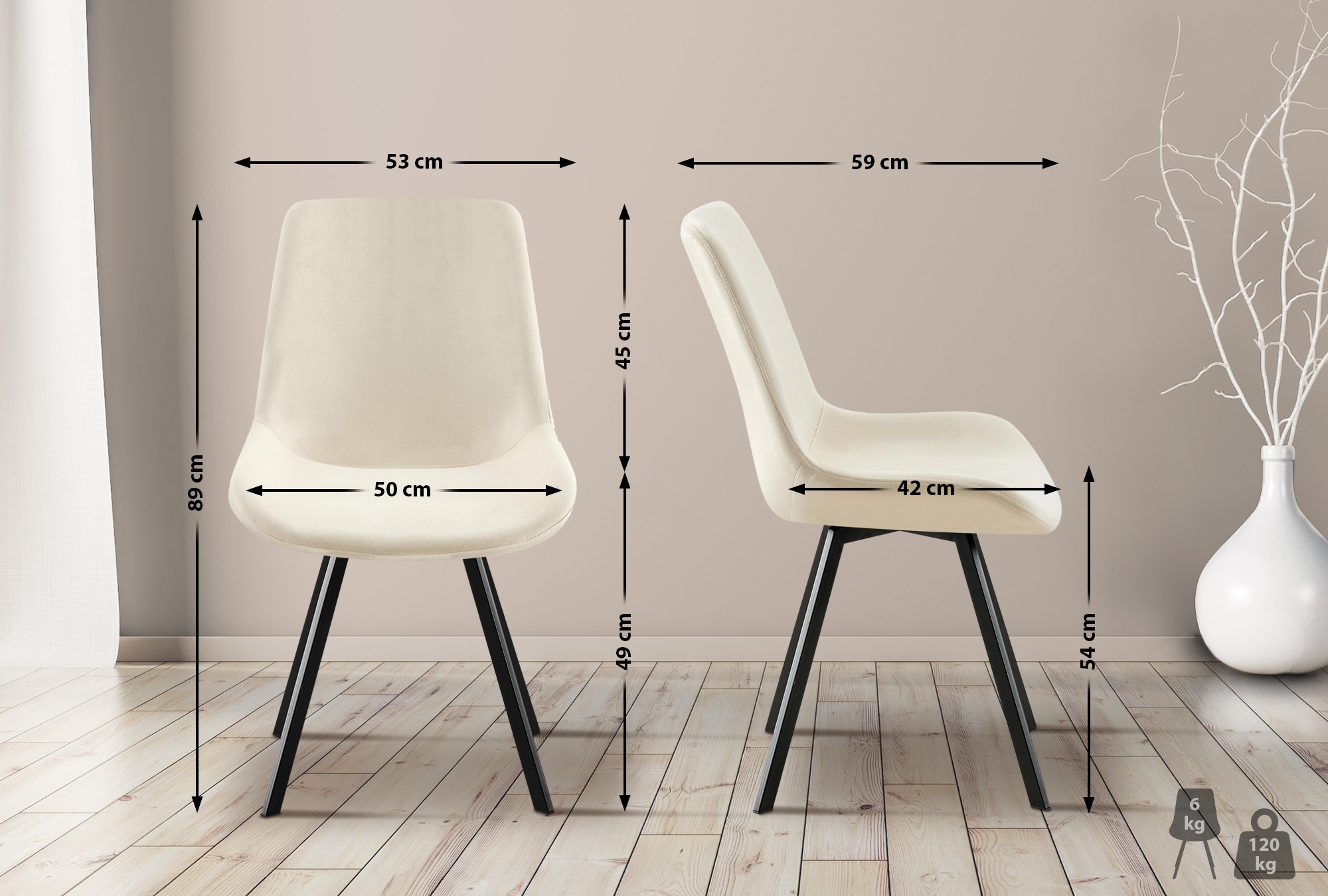 Sitzfläche (B x T): 50 x 42 cm