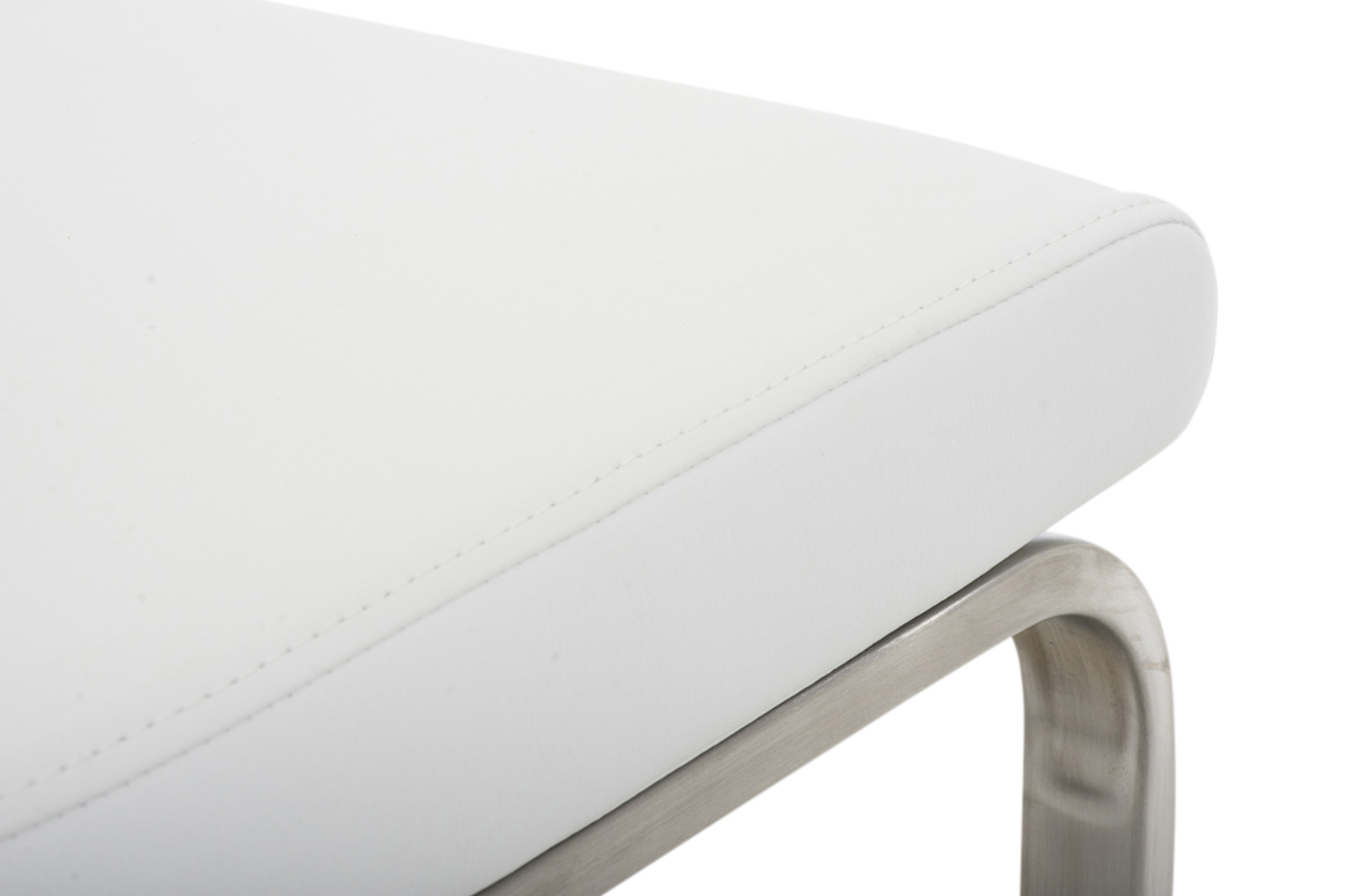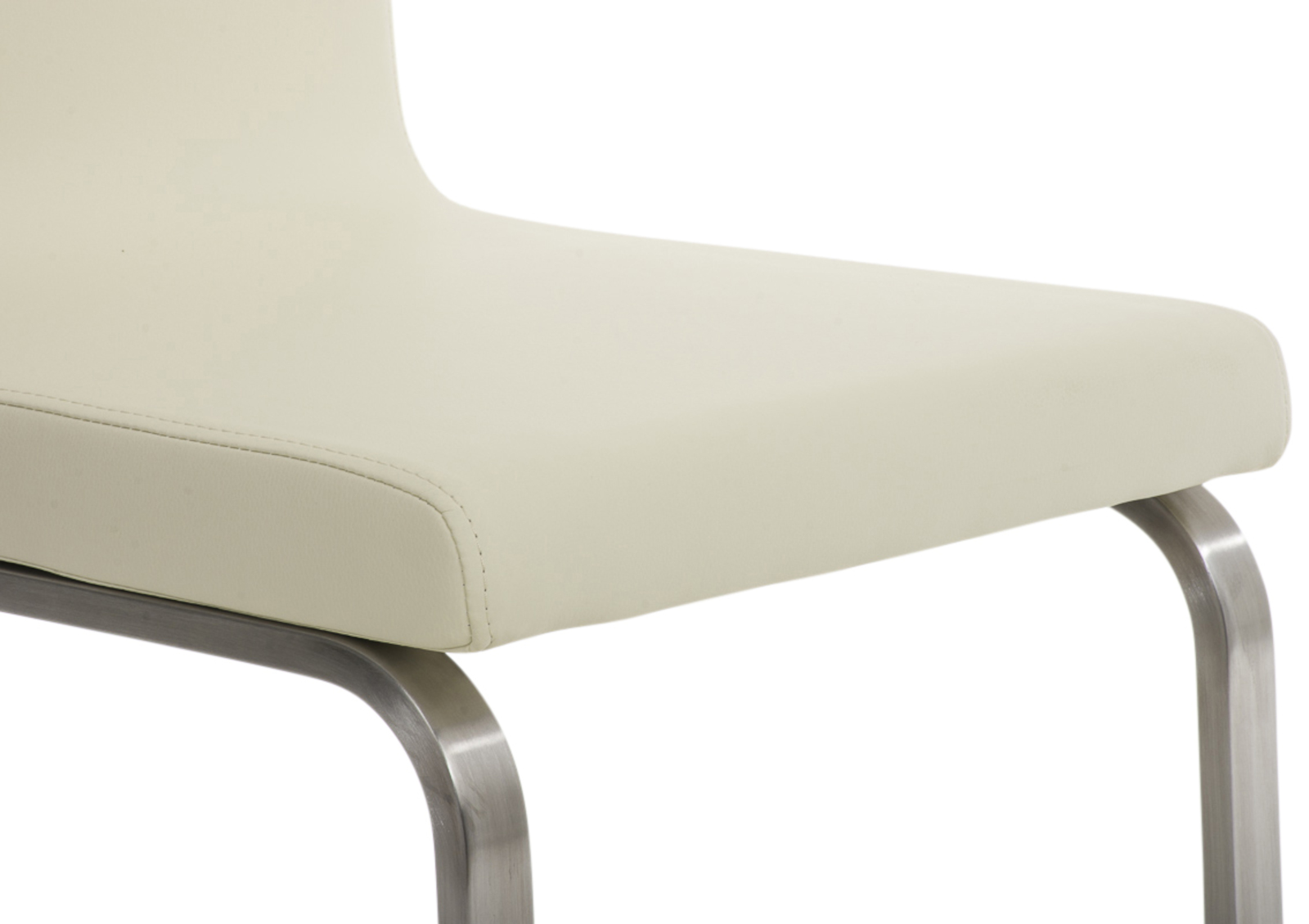 Der angenehm gepolsterte Sitz mit feinem Kunstlederbezug verspricht Bequemlichkeit und sieht einfach schick aus. Außerdem passen Sie sich frei schwingend ganz genau der Beinlänge und dem Gewicht des Sitzenden an. Dank pflegeleichter Materialien sind die Sitzfläche und das Edelstahl-Gestell auch schnell und einfach zu reinigen.