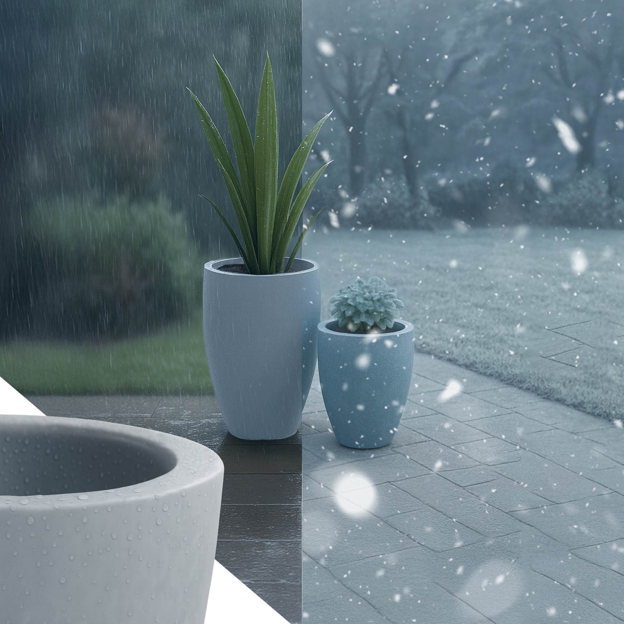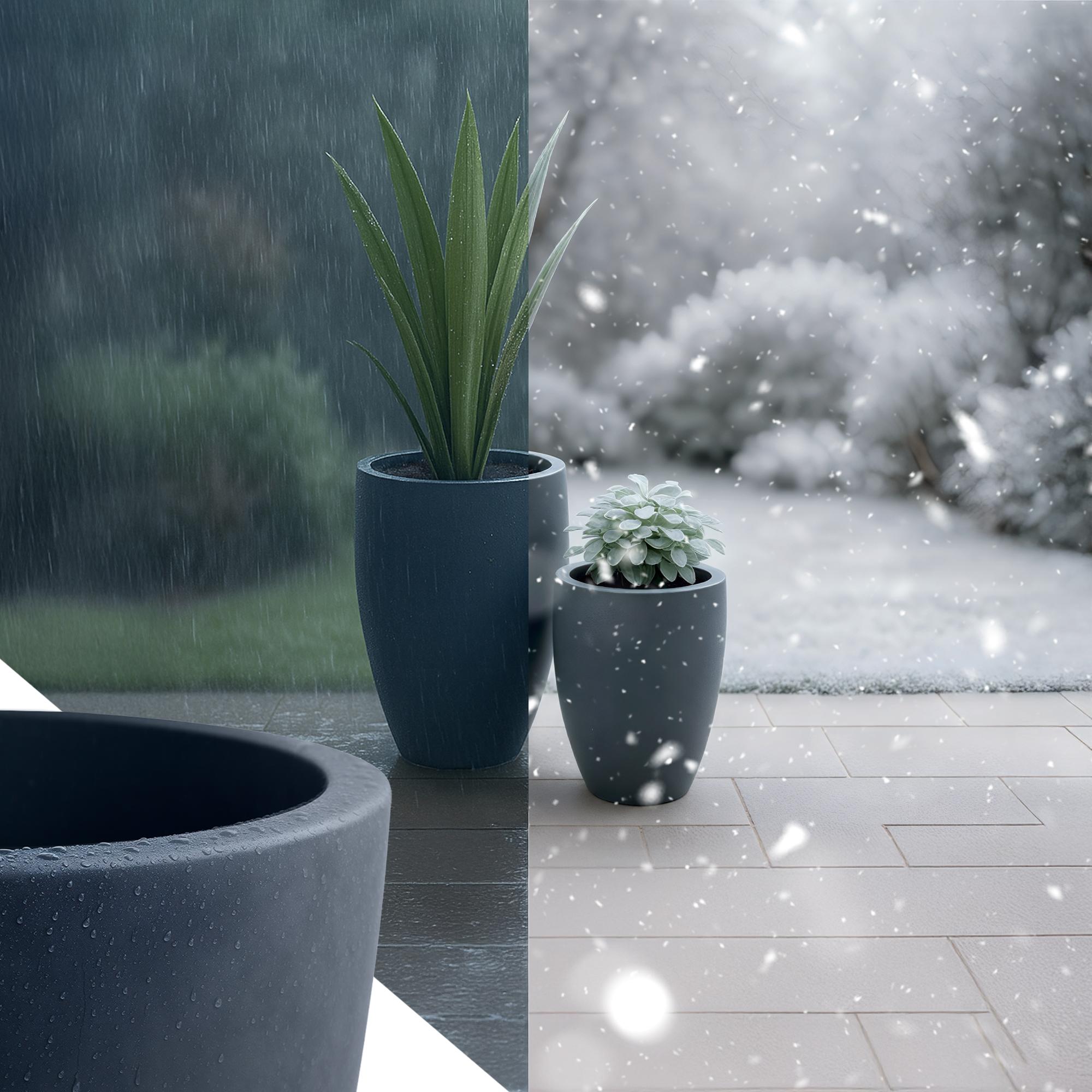 Das Set umfasst Blumenkübel in zwei verschieden Größen und bietet dadurch vielfältige Gestaltungsmöglichkeiten für drinnen und draußen. Dank ihrer steinähnlichen Oberfläche fügen sie sich harmonisch in viele Garten- und Wohnstile ein.