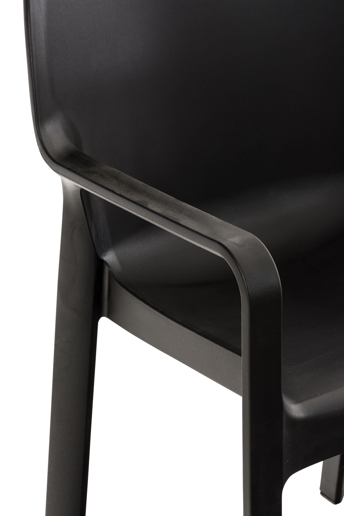 Die nicht verstellbaren Arm- und Rückenlehnen verleihen dem Stuhl eine klare, minimalistische Ästhetik, die jeden Außenbereich aufwertet. Gleichzeitig ist der Stuhl stapelbar, sodass er sich platzsparend verstauen lässt, wenn er nicht gebraucht wird. Im montierten Versandzustand geliefert, sparen Sie Zeit und Mühen, da der Stuhl sofort einsatzbereit ist.
