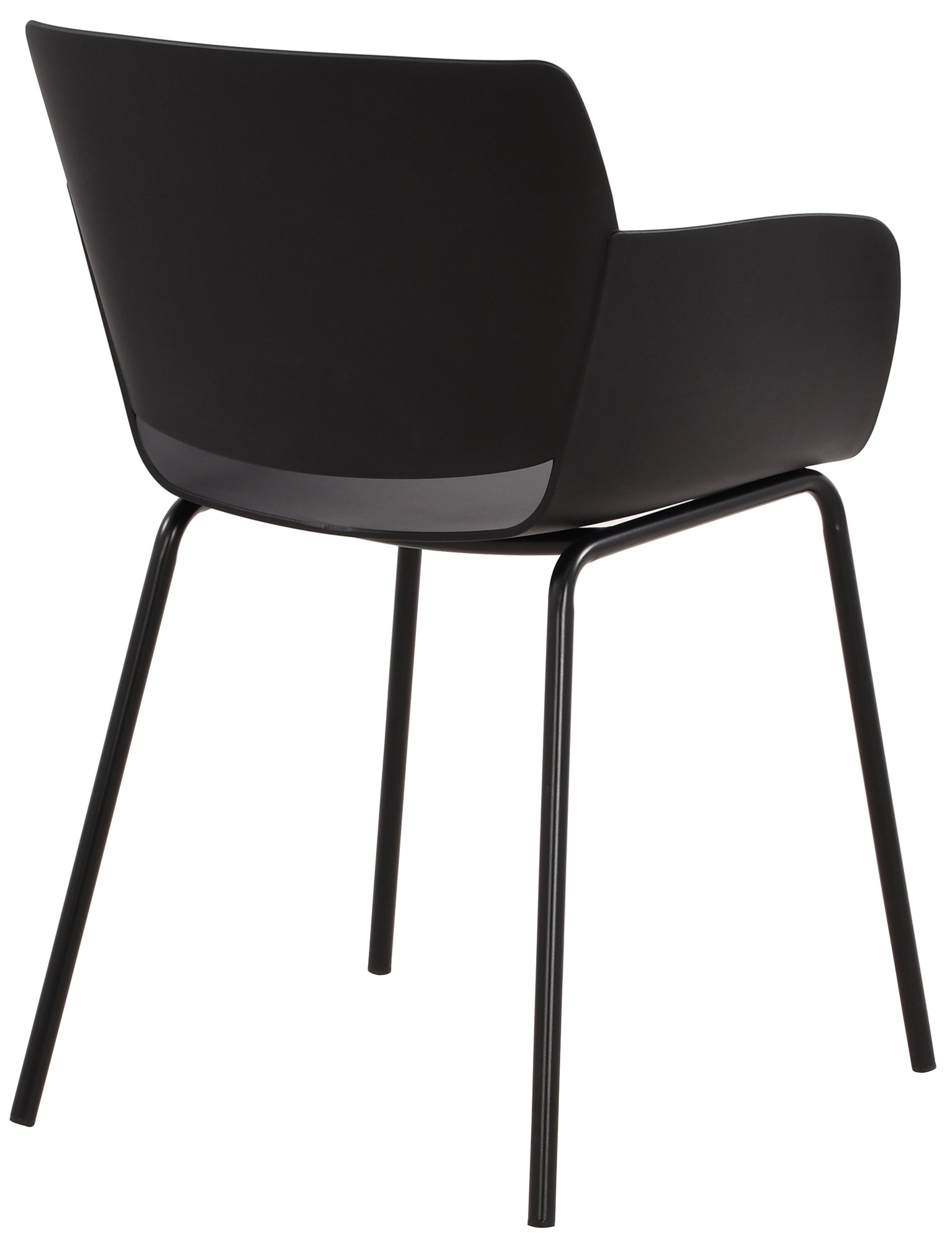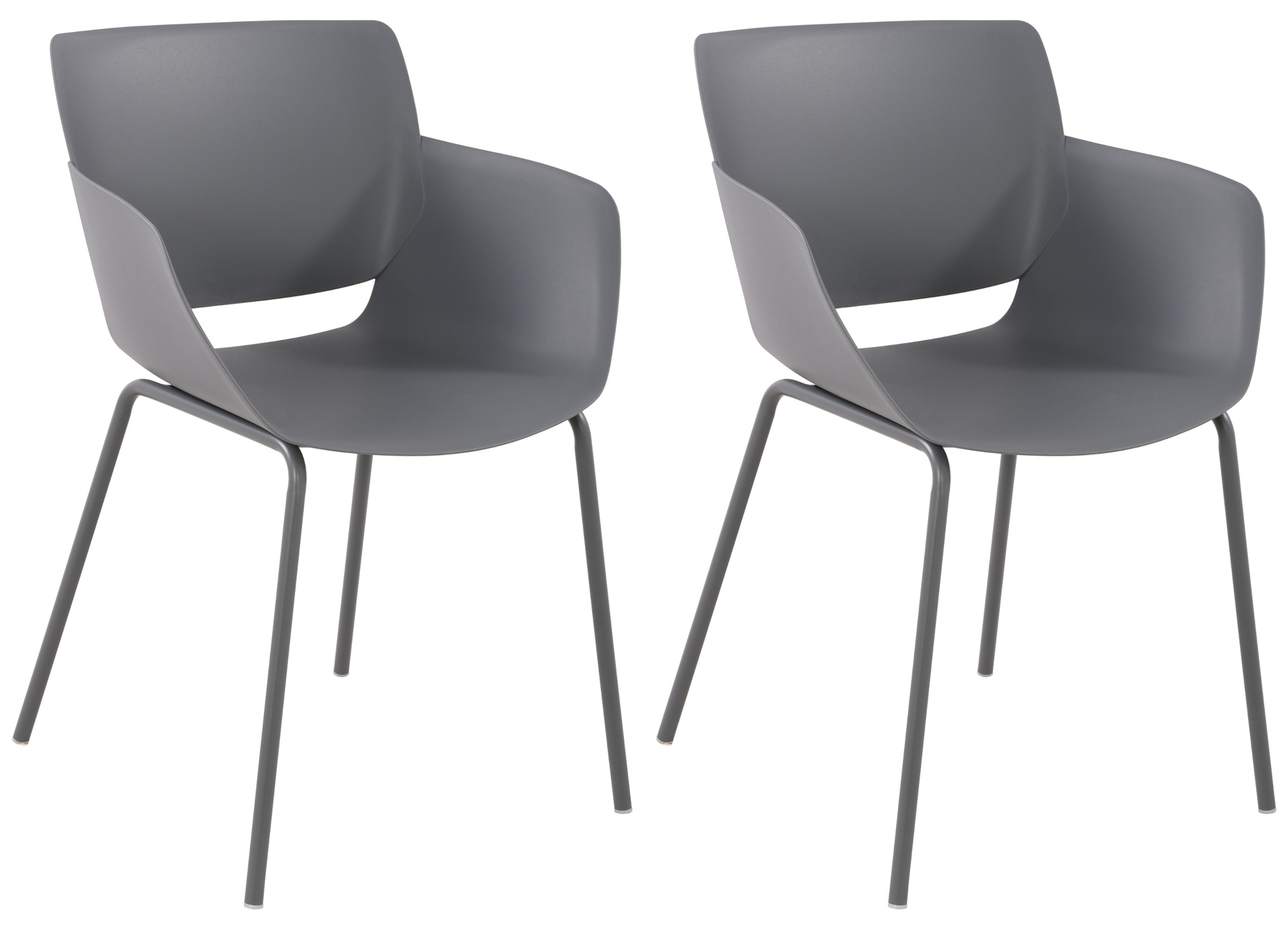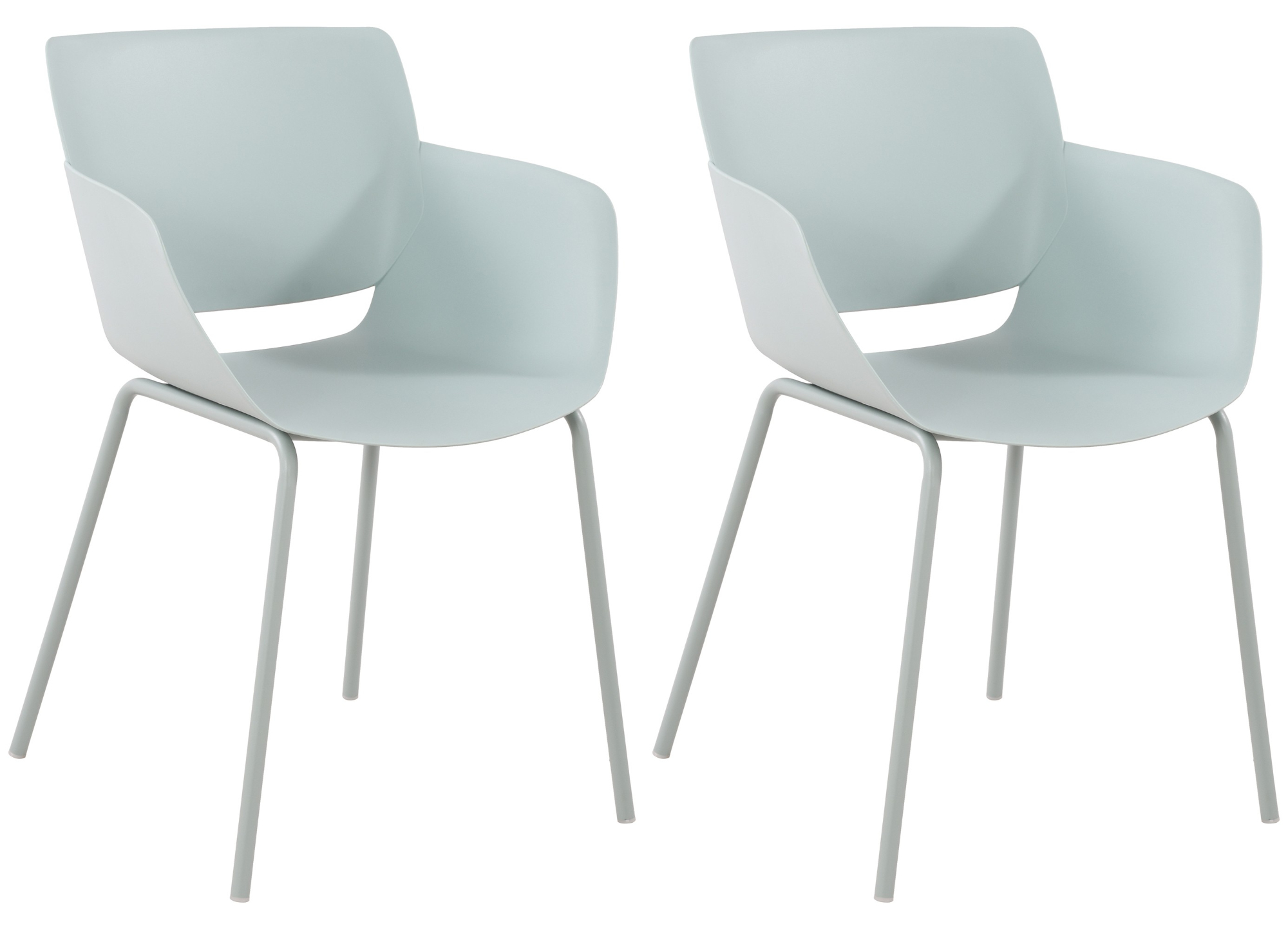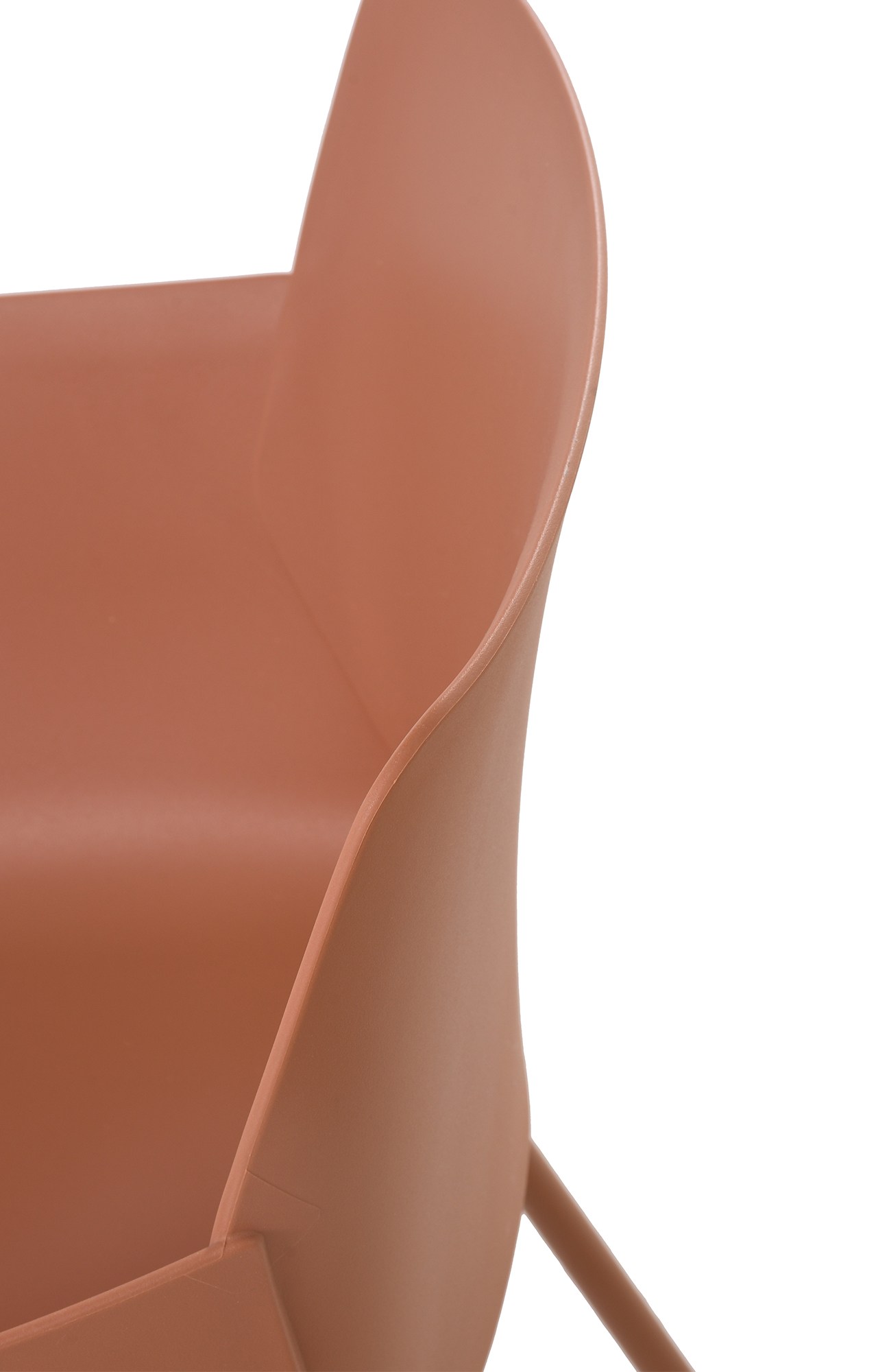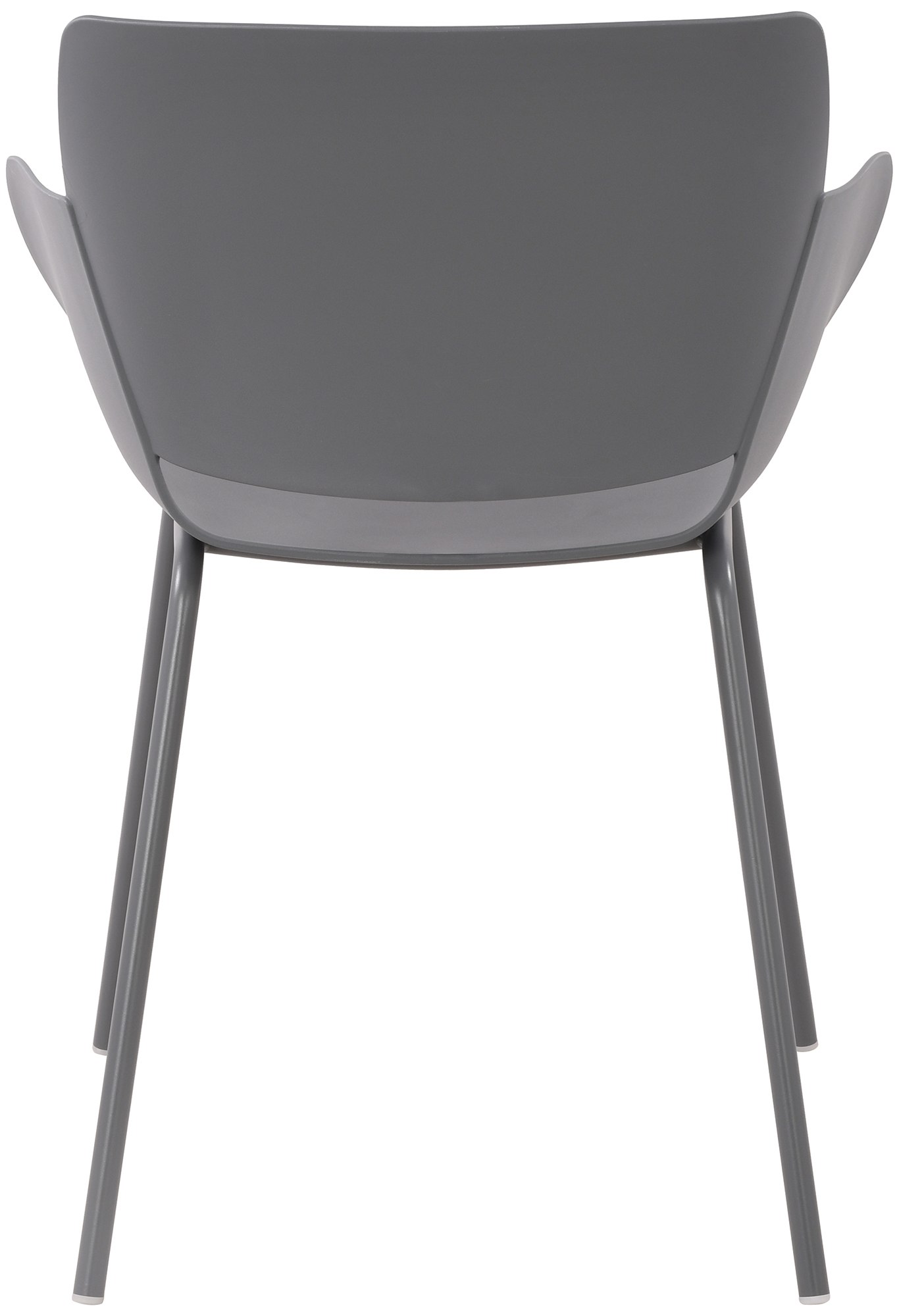 Das Stuhlgestell ist aus pulverbeschichtetem Stahl gefertigt, sodass es korrosionsbeständig ist und nicht rostet. Die Farben von Sitzschale und Stuhlgestellen sind aufeinander abgestimmt.