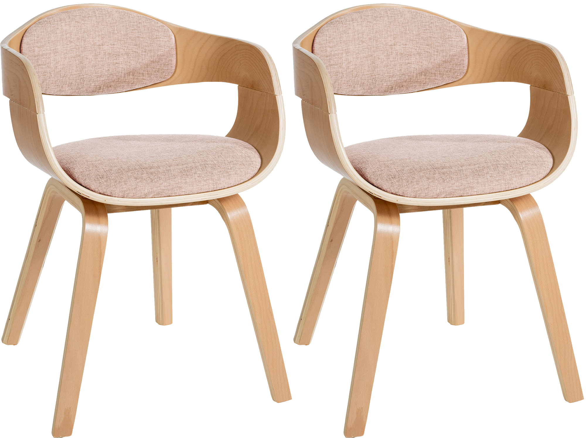 Die beiden Stühle verfügen über fest integrierte Armlehnen, die stabilen Halt bieten, während die angenehm gepolsterten Sitzflächen für höchsten Komfort beim Sitzen sorgen – ob beim gemütlichen Abendessen oder langen Gesprächen am Tisch. Das Gestell aus robustem Holz bringt nicht nur optische Wärme und Natürlichkeit in Ihren Wohnbereich, sondern garantiert auch eine langlebige Stabilität. Bodenschoner an den Stuhlbeinen schützen empfindliche Böden und sorgen für einen sicheren Stand, auch auf glatten Oberflächen.
