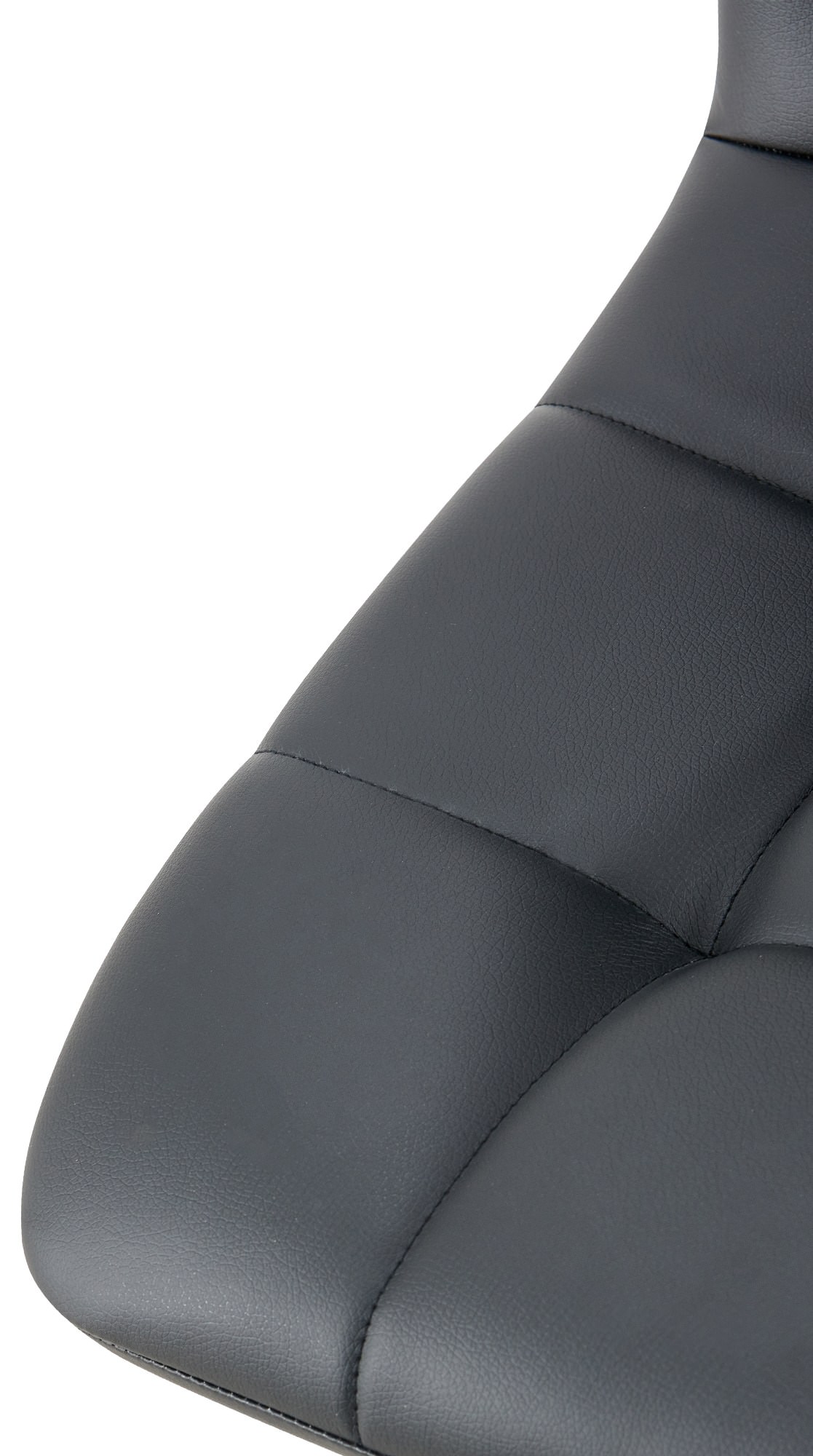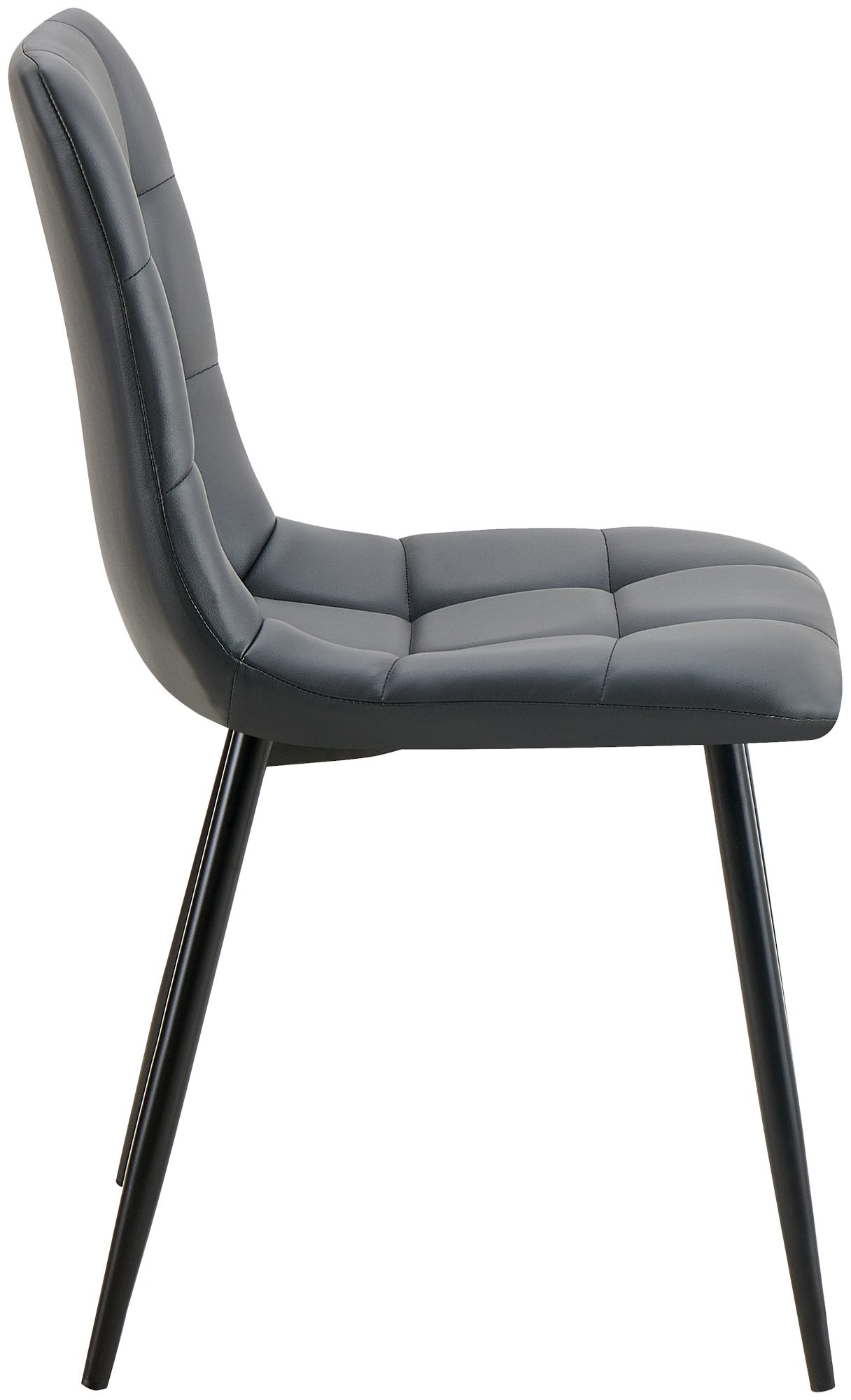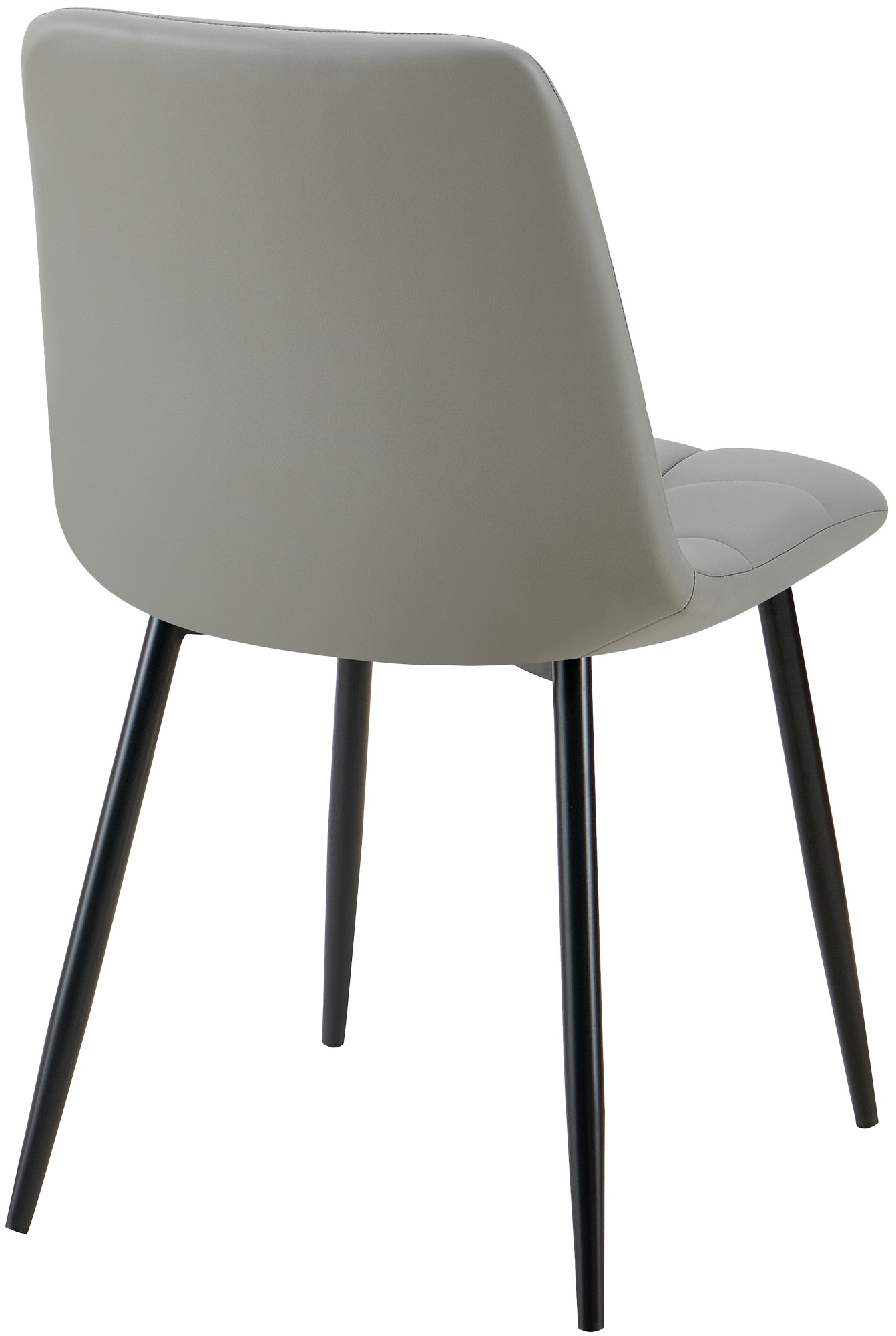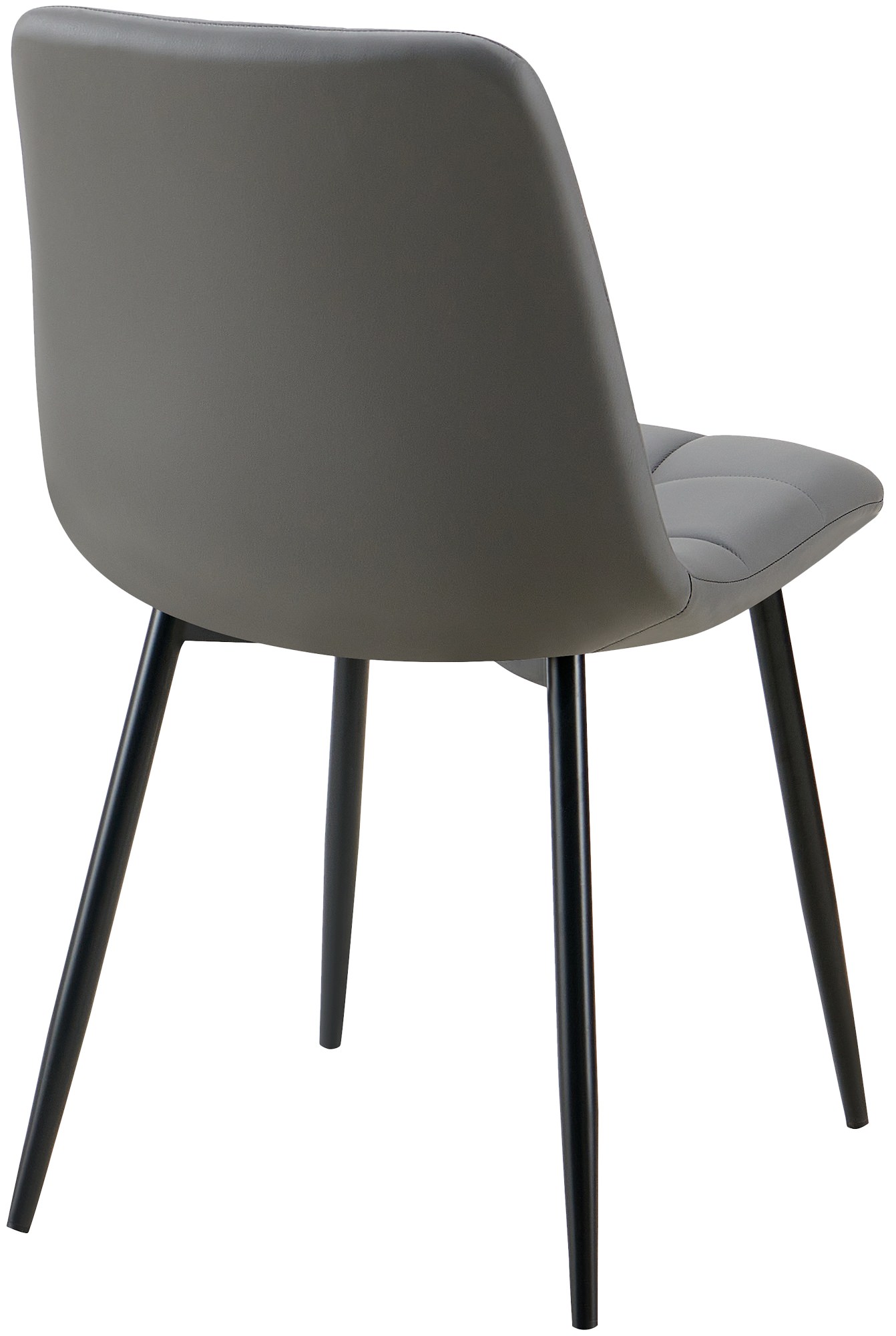 Der Esszimmerstuhl Antibes kombiniert hohen Sitzkomfort mit einer modernen zeitgemäßen Optik. Entscheidend für einen bequemen Sitz ist die angenehme Polsterung über Sitz und Rückenlehne. Dabei sind sowohl Sitzschale als auch Rückenlehne durchgängig mit einem pflegeleichten und robusten Kunstleder-Bezug mit modischem Stepp-Muster versehen. Die Stuhlbeine bestehen aus einem matt-schwarzen Metallgestell. Die maximale Belastbarkeit beträgt bis zu 150 Kilogramm. Bodenschoner beugen dabei Beschädigungen empfindlicher Böden vor.