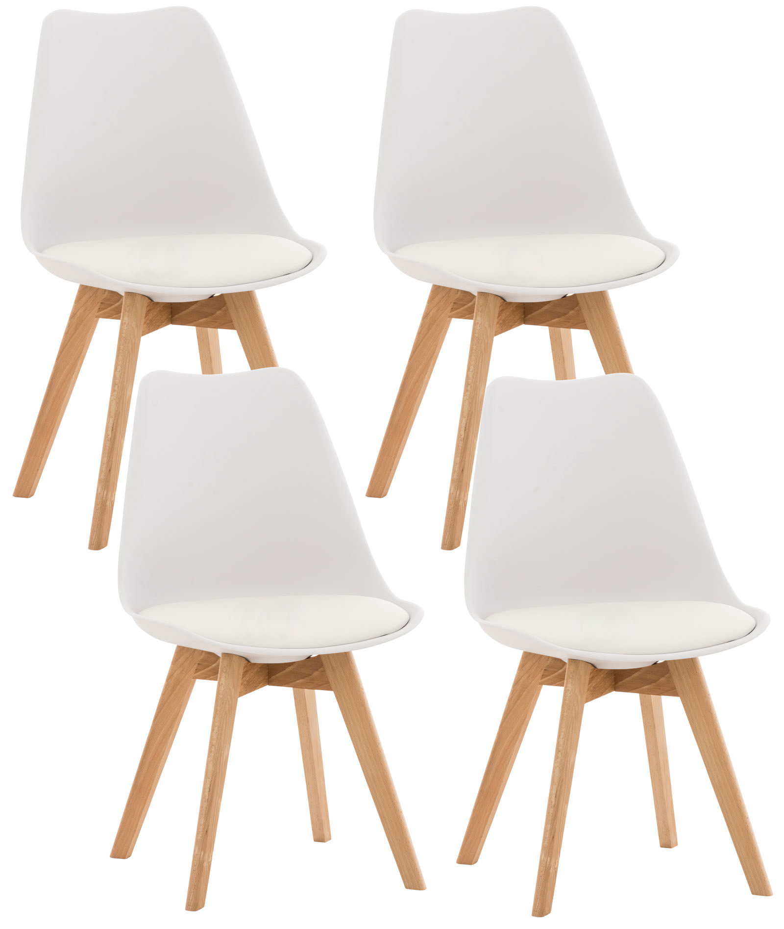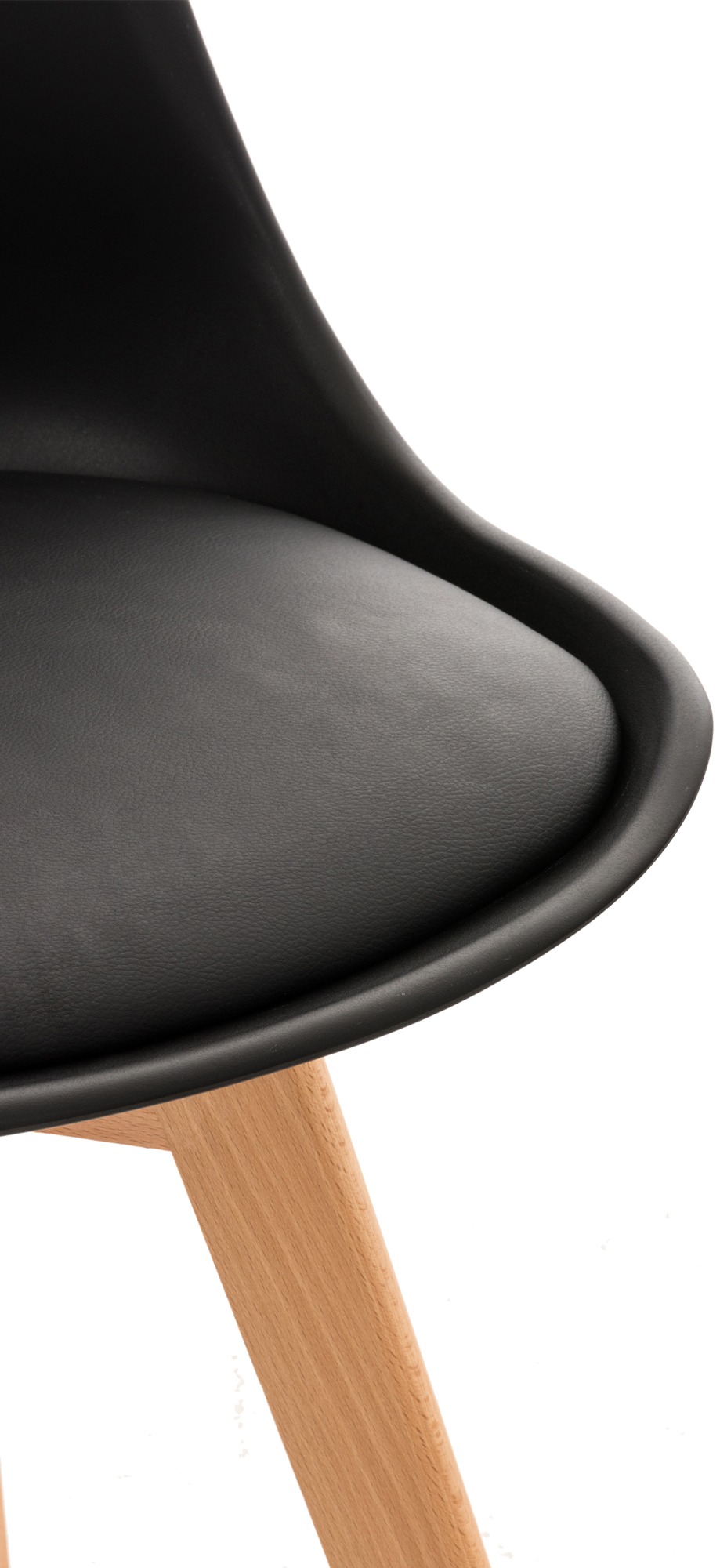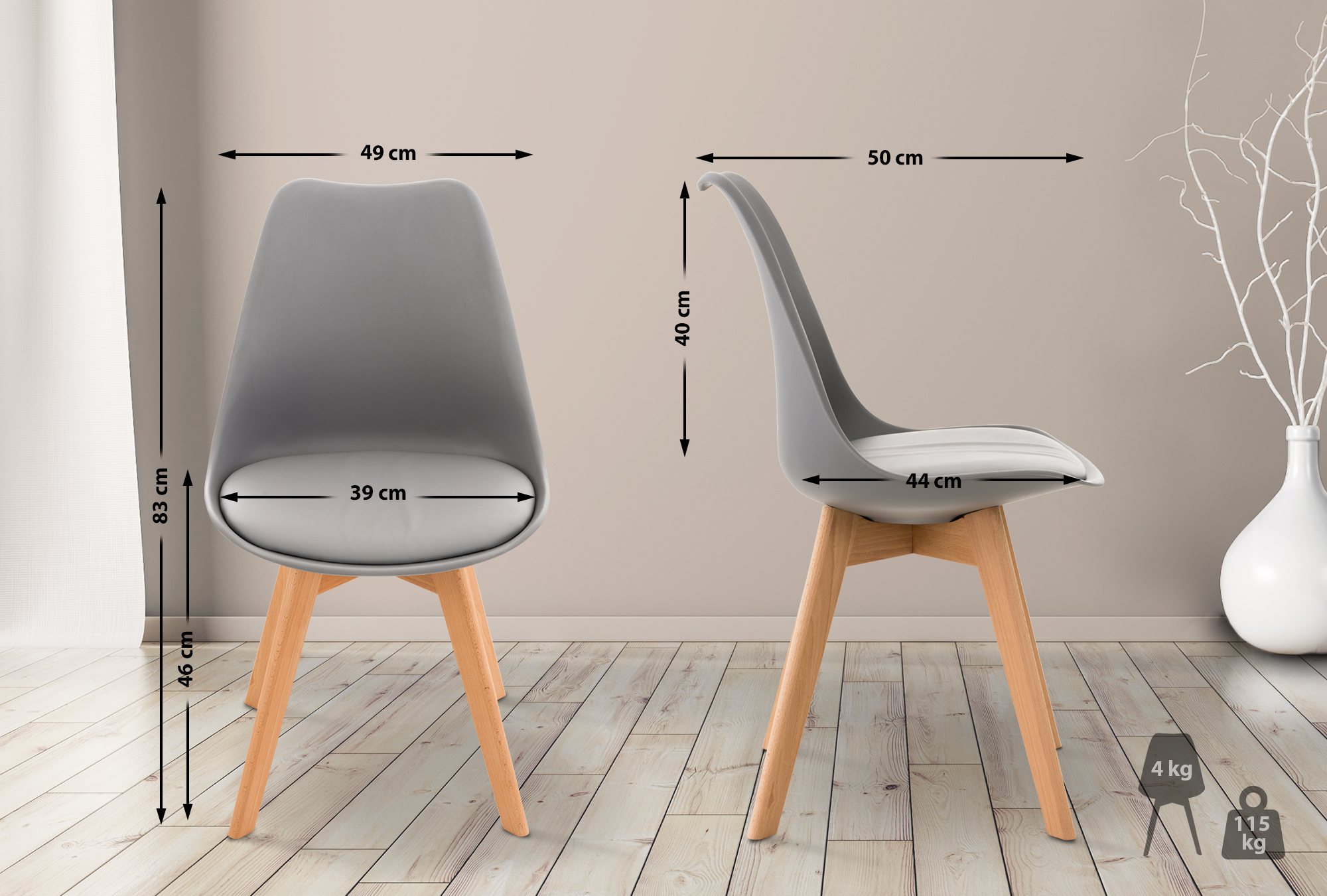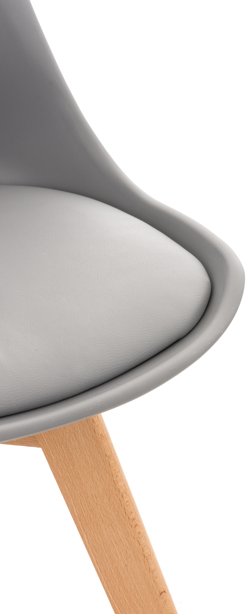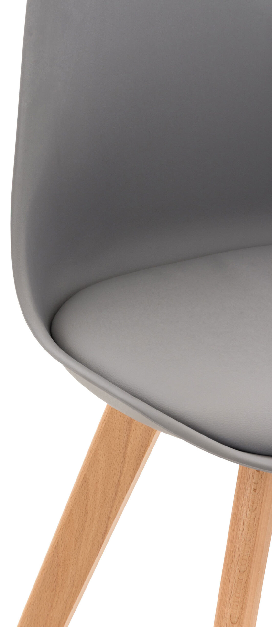 Dieser komfortable Stuhl besticht nicht nur durch hervorragende Sitzeigenschaften, sondern auch durch den spannenden Materialmix. Die Sitzschale ist aus stabilem Kunststoff gefertigt und mit einem Sitzpolster ausgestattet. Dabei stehen verschiedenste Materialien zur Auswahl, wie Stoff, Samt, Cord, Kunstleder oder ein Bezug in Lederoptik. Die Verwendung pflegeleichter Materialien gewährleistet eine mühelose Reinigung des Esszimmerstuhls zu jeder Zeit. Getragen von einem zeitgemäßen 4-Fuß Holzgestell, aus Buchenholz, präsentiert sich der Stuhl bei jeder Gelegenheit vorteilhaft. Zudem sind Bodenschoner an den Füßen angebracht, um den Boden vor Kratzern zu schützen.