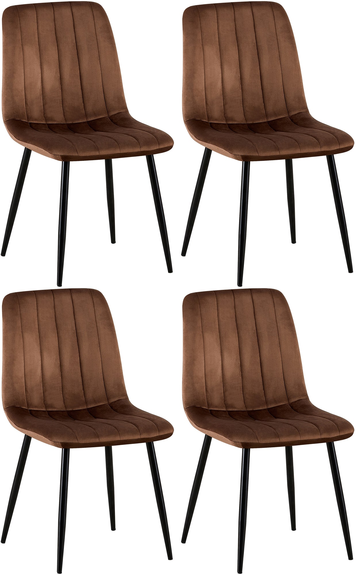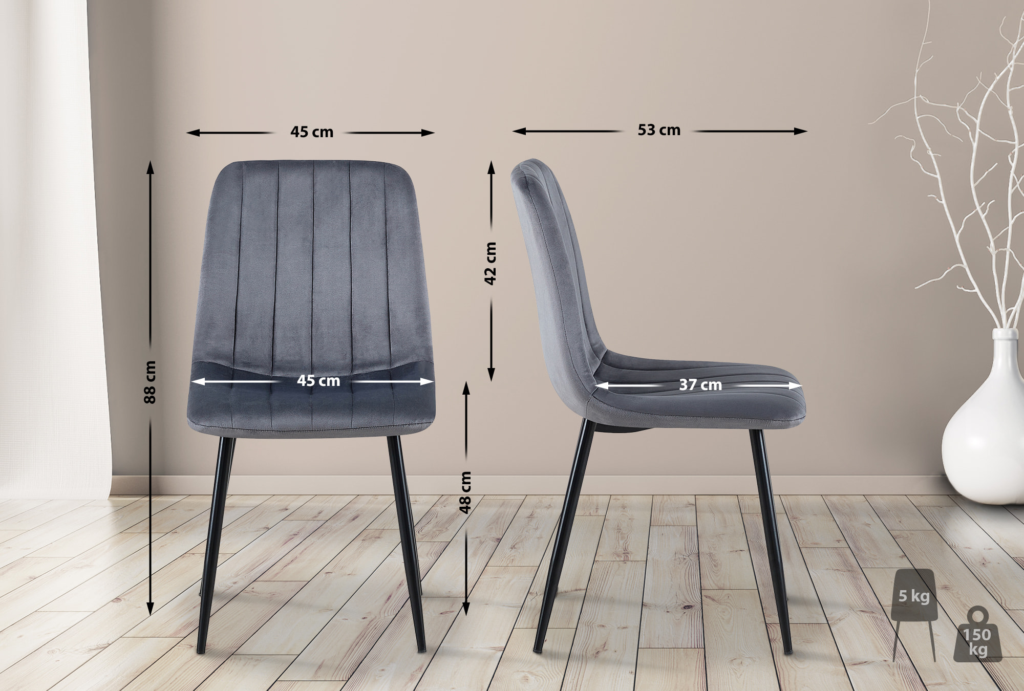 Im modernen, zeitlosen Design ist das 4er Set Stühle Dijon eine geschmackvolle Ergänzung für jedes Wohnambiente. Seine bequem gepolsterten Sitze versprechen langanhaltenden Komfort. Die Oberflächen aus strapazierfähigem Stoff oder Samt sind pflegeleicht. Feine Ziernähte gefallen als schönes Detail. Unter dem stabilen 4-Fuß-Gestell aus Metall befinden sich Bodenschoner. Damit eignet sich das Set für empfindliche Bodenbeläge wie Fliesen und Parkett. Das Set ist in verschiedenen Farben und mit verschiedenen Sitzbezügen erhältlich. Es bietet der Familie und den Gästen einen stilvollen Sitzplatz.