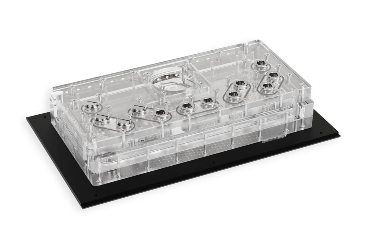 Die Apex Distro Plate ist das optische Upgrade für das Dark Base Pro 901. Speziell für dieses Gehäuse entworfen, ersetzt sie das Front Cover und hebt jede Custom-Wasserkühlung auf das nächste Level. Ein Must-Have für alle, die höchste Leistung und Design vereinen möchten. Für höchste Perfektion steht die Apex Produktlinie. Mit erstklassigen Materialien und innovativen Technologien garantiert die Distro Plate ein einzigartiges Premium-Produkt. Die verchromten, aus Messing gefertigten G1/4″-Anschlüsse verhindern Leckagen durch Rissbildung, da sie nicht direkt ins Acryl eingeschraubt werden. Stattdessen sind die Anschlüsse zweiteilig, mit einem O-Ring versehen, und sichern sich bei der Montage im Acryl gegenseitig. Die aus hochwertigem Acrylglas gefertigte Apex Distro Plate, ermöglicht einen freien Blick auf den Wasserkühlkreislauf. Das Zusammenspiel der aRGB-Beleuchtung sorgt für ein beeindruckendes Farbspiel, das das Gehäuse perfekt in Szene setzt. Die Distro Plate ist in zwei Varianten erhältlich, die sich nur in der Farbe unterscheiden. Sowohl in Schwarz als auch in Weiß passt sie sich perfekt den Gehäusefarben des Dark Base Pro 901 an und fügt sich nahtlos ins Design ein. Das Dark Base Pro 901 Gehäuse bietet viele Anpassungsmöglichkeiten, darunter auch ein invertiertes Layout. Die Apex Distro Plate passt sich diesen Optionen optimal an. Um die Flexibilität zu gewährleisten, verfügt die Distro Plate über zusätzliche, speziell angepasste Anschlüsse, die auch bei einem invertierten Aufbau des Innenlebens des Gehäuses problemlos genutzt werden können. Die Distro Plate ersetzt das Front Cover und wird mit den mitgelieferten M4x16 Schrauben und Montagehalterungen sicher und einfach montiert. Bei einem invertierten Layout muss die Distro Plate um 180 Grad gedreht werden. Hinweis: Die Apex Distro Plate für das Dark Base Pro 901 ist ausschließlich mit diesem Gehäuse kompatibel. Eine Pumpe ist nicht im Lieferumfang enthalten Technische Daten Abmessungen (L x B x H) 365,10 x 222 x 86,06mm Material Acryl Volumen 433ml Pumpenkompatibilität VPP/D5 Anschlüsse 12x G1/4? + 1x Fillport und 1x Drainport Maximale Arbeitstemperatur 60°C Druckgetestet 0,8 Bar Anzahl digital aRGB LEDs 16 Spannung digital aRGB LEDs 5V Stromanschluss digital aRGB LEDs 3-Pin JST + 3-Pin 5V Gewicht 3600g Farbe weiß Garantie: 3 Jahre 🔗 Garantiebestimmungen