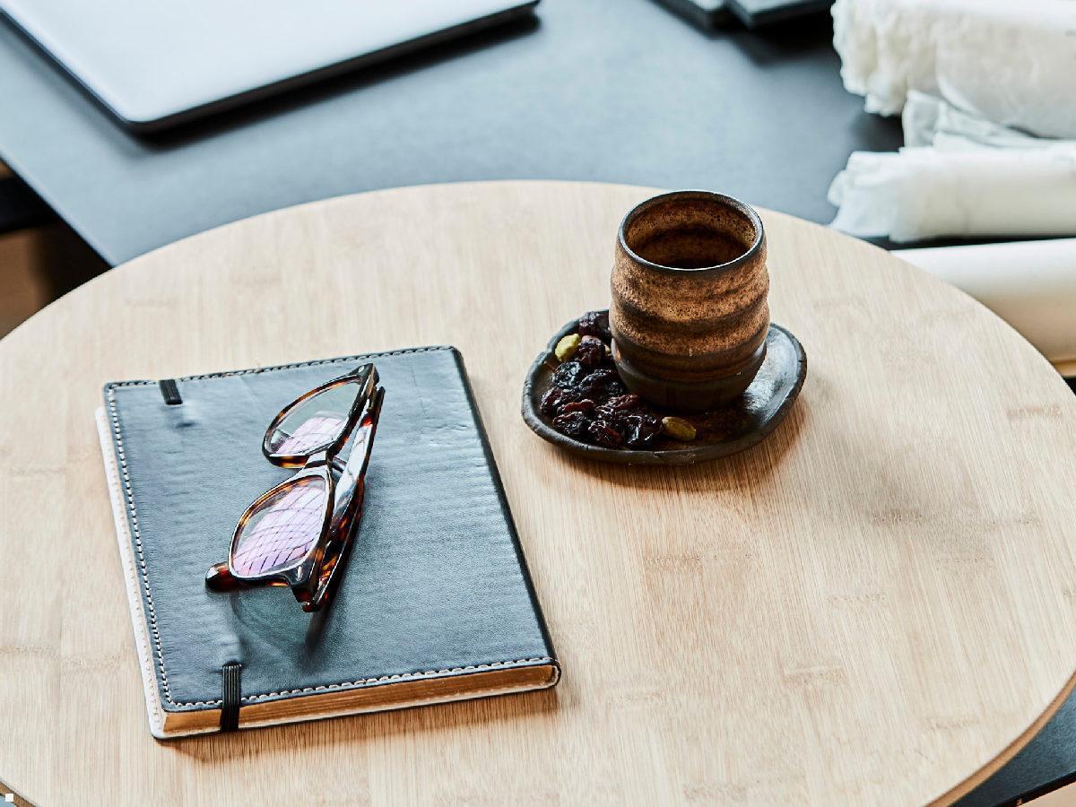 Home » Shop »APTO Round Table Bamboo Ablageboard, Bambus mit Tischklemme marineblau