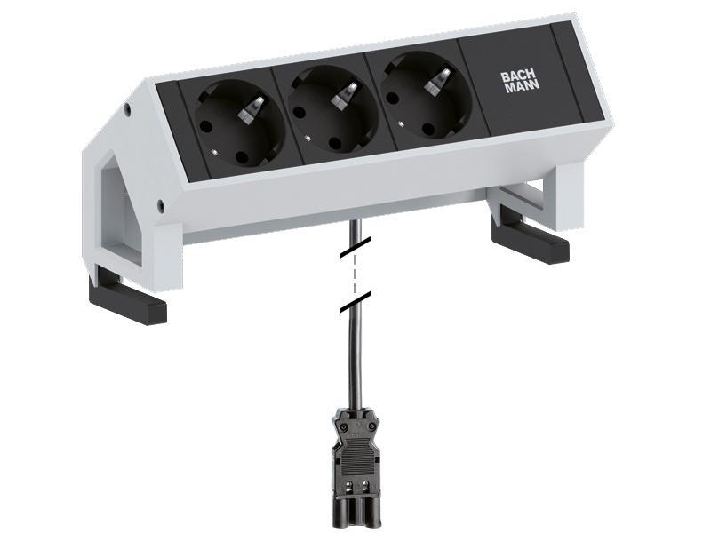 – Die Steckdosenleiste Bachmann DESK 2 3x Steckdose weiß mit 1,5m Kabel (902.300) lässt sich mit einem Haltewinkelset …