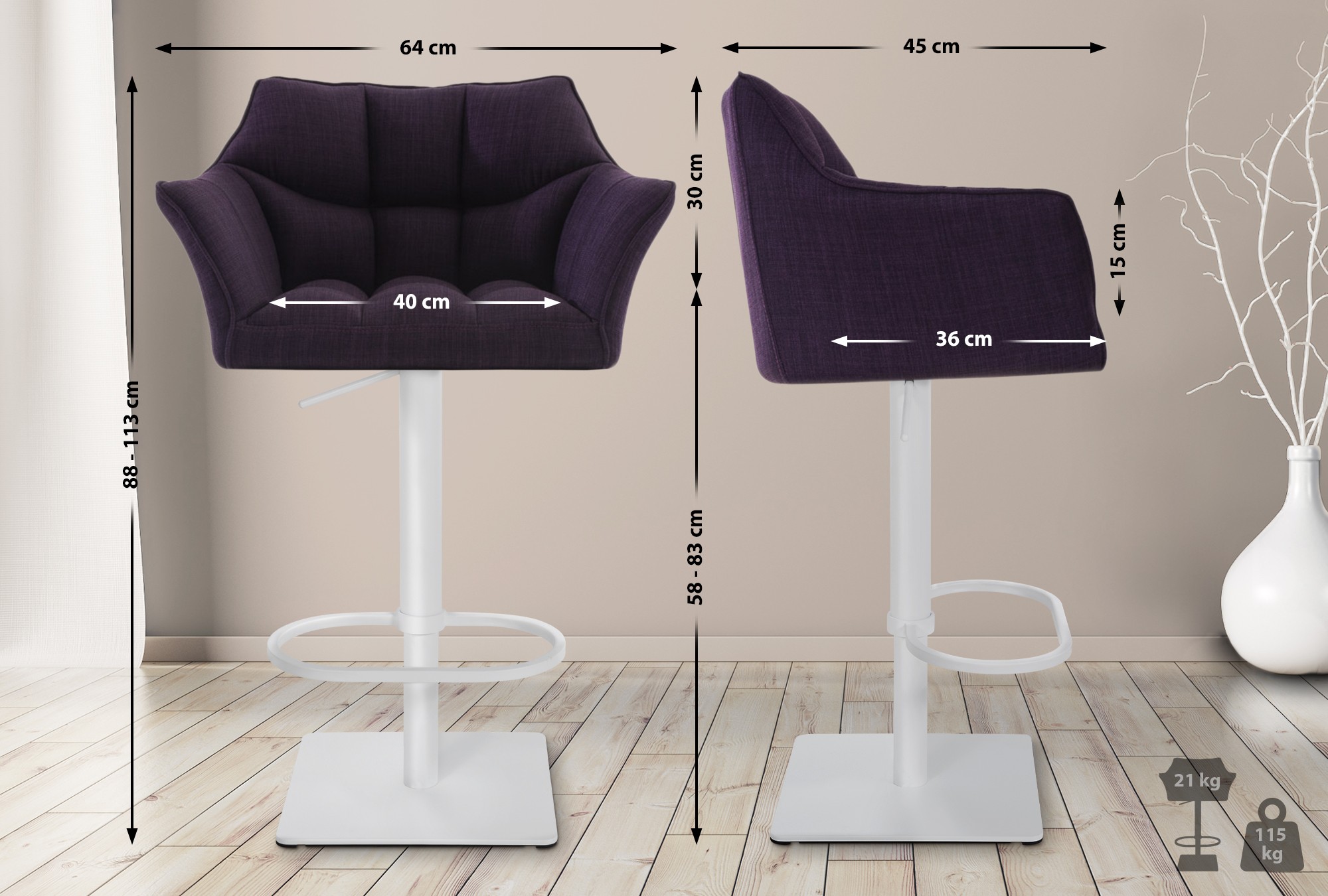 Home » Shop » Wohnen »Barhocker Damaso W Stoff