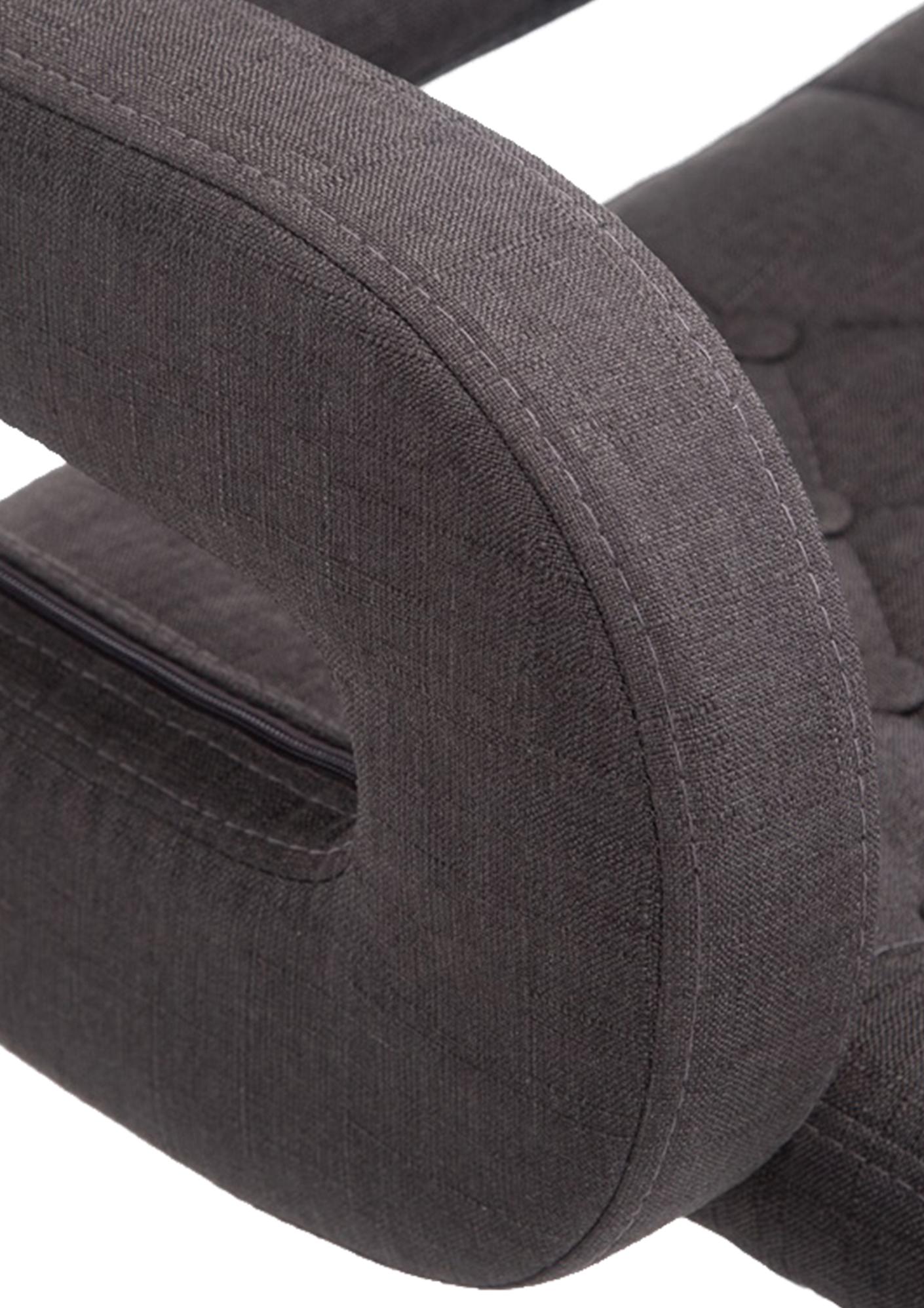 Mit geschwungenen Armlehnen und einer Rückenlehne für den unteren Rückenbereich bietet er komfortable Unterstützung insbesondere für den unteren Rückenbereich. Das robuste Metallgestell mit Fußstütze gewährleistet Stabilität und eine Belastbarkeit von bis zu 120 Kilogramm. Bodenschoner schützen Böden vor Kratzern.