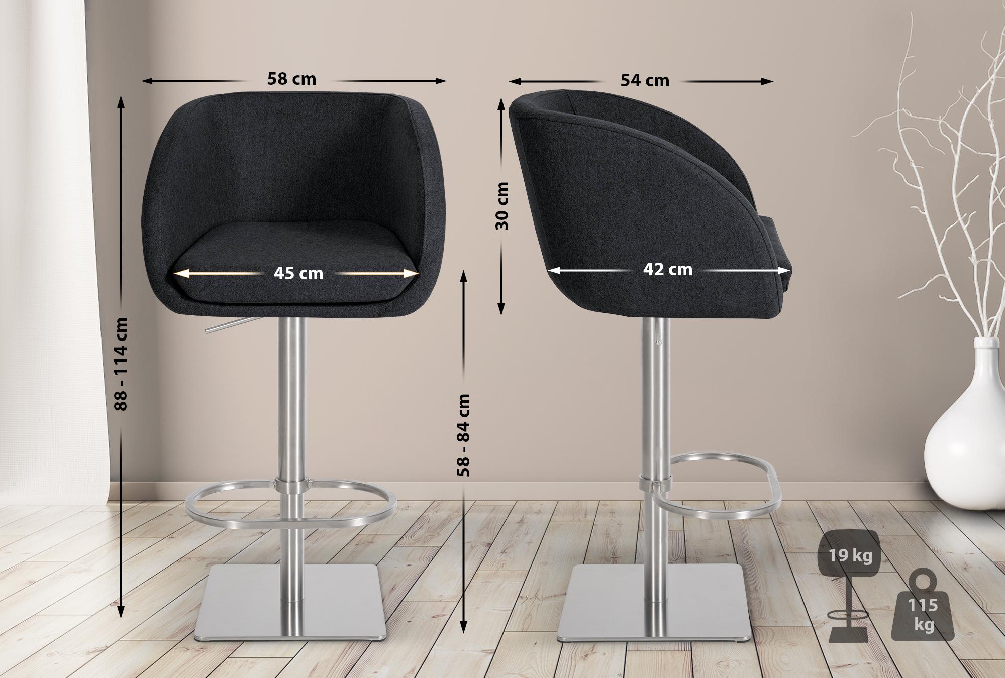 Dieser Barhocker bietet mit seinen hochwertigen Materialien, wie dem Filzbezug, nicht nur ein angenehmes Sitzgefühl, sondern verleiht dem Hocker auch eine moderne Note. Ausgestattet mit einer leichtgängigen 360° Drehmechanik und einer einfachen Hebelbedienung zur stufenlosen Höhenverstellung, bietet dieser Küchenhocker Komfort und Anpassungsfähigkeit.