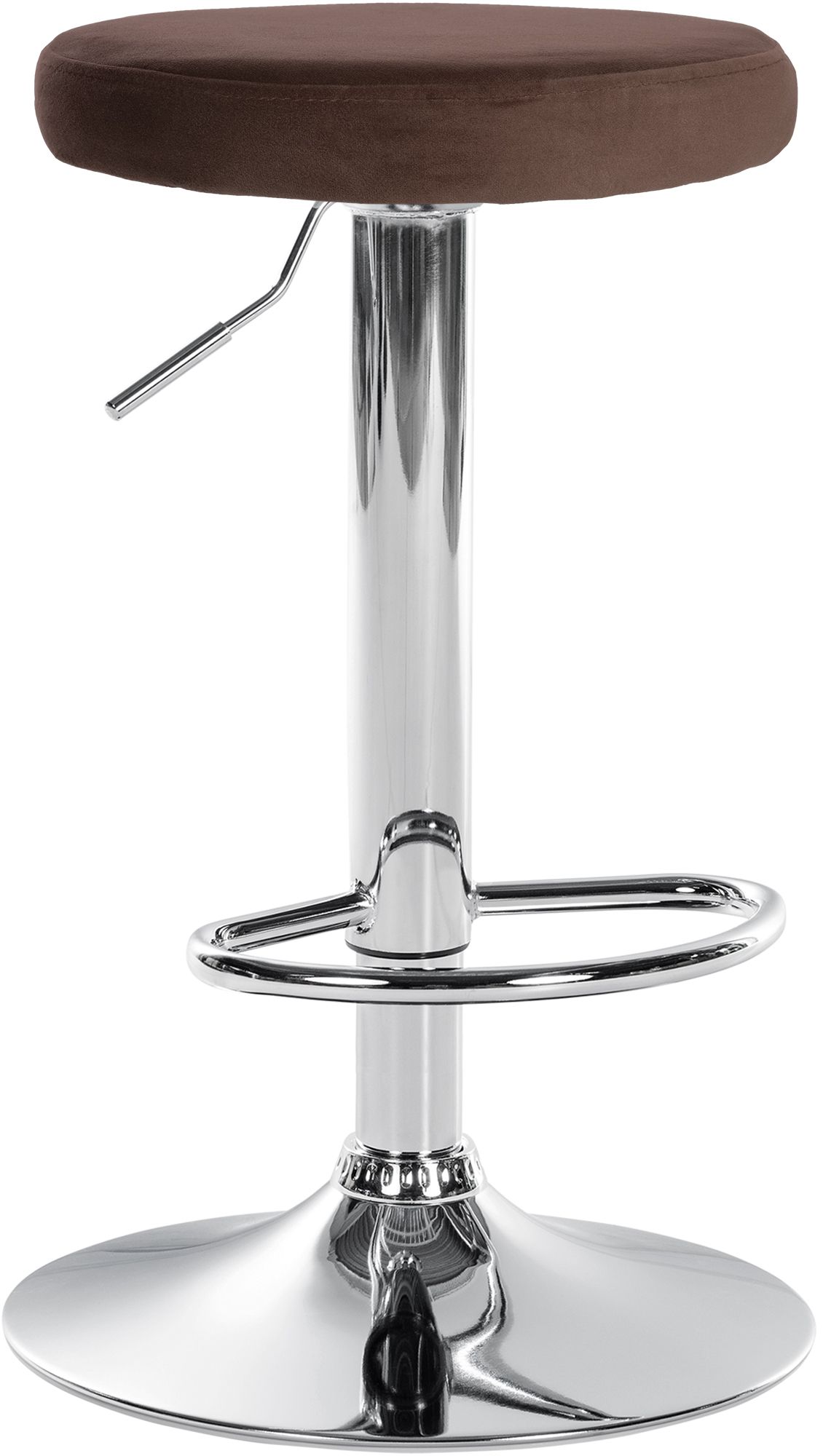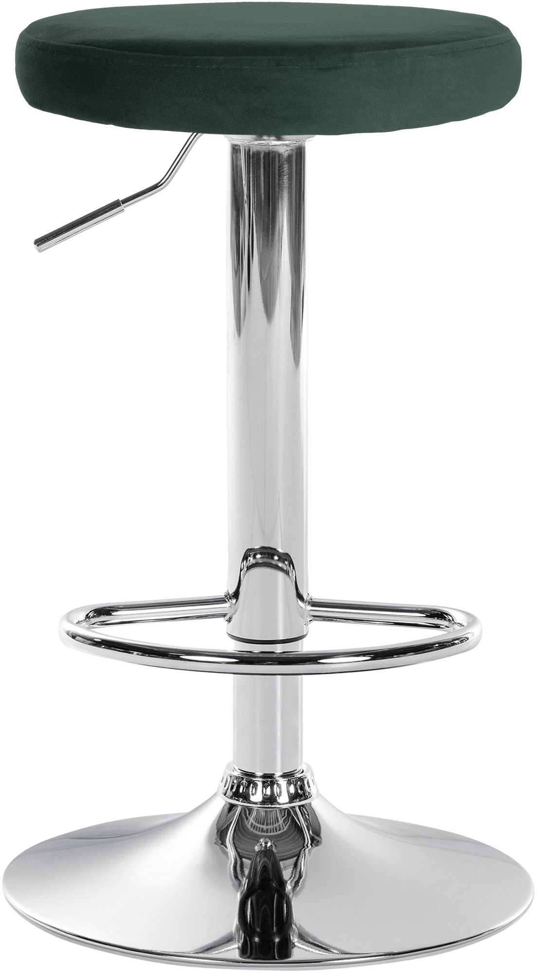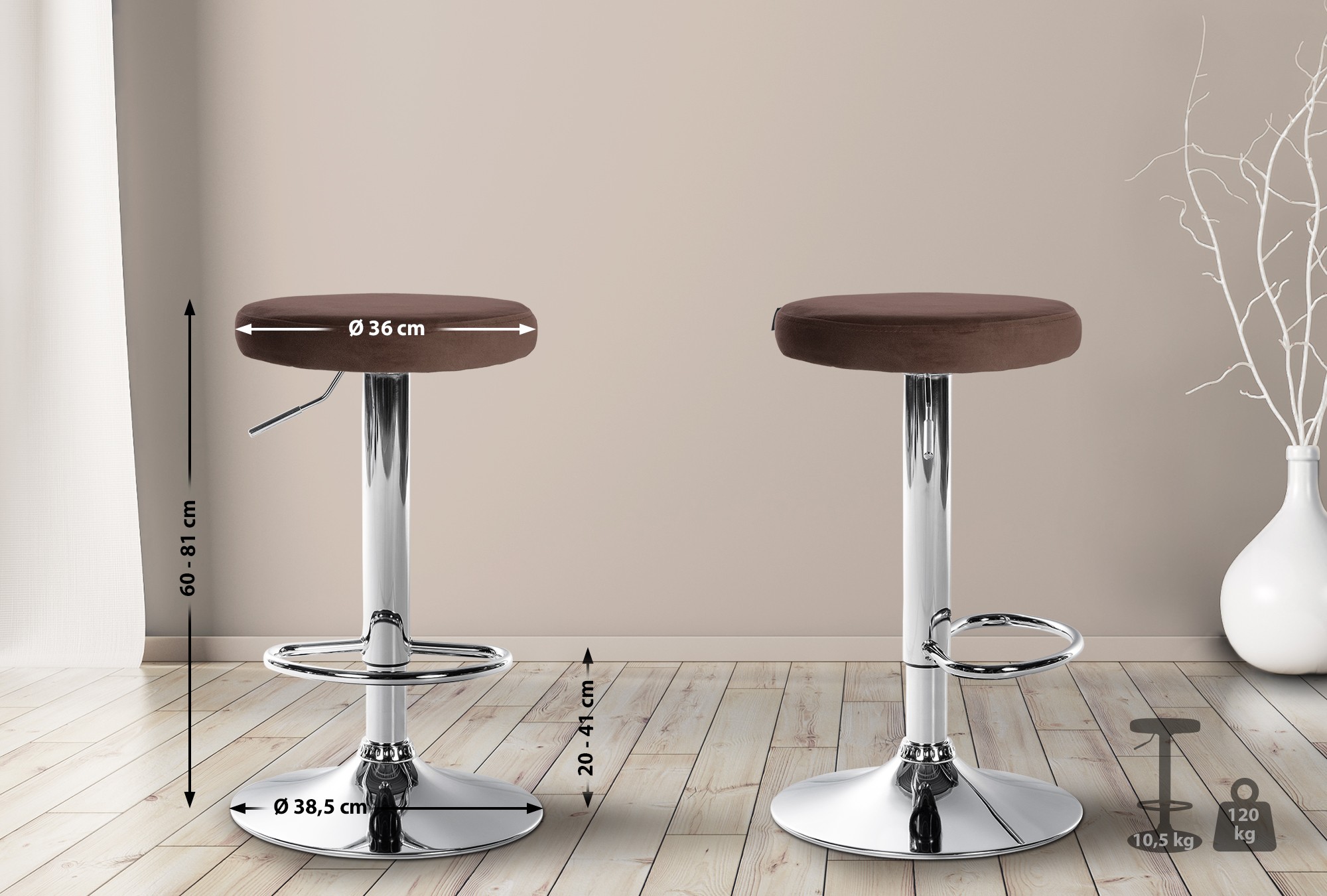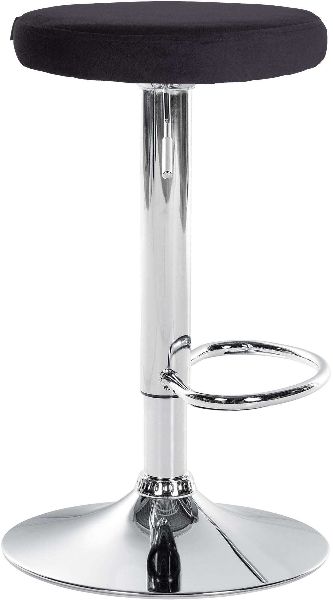 Der Samtbezug der runden, gepolsterten Sitzfläche ist in acht ansprechenden Farben erhältlich, sodass Sie den perfekten Look für Ihr Zuhause auswählen können. Das robuste Metallgestell ist in drei attraktiven Ausführungen erhältlich: matt-weiß, matt-schwarz oder in Chrom-Optik. Eine integrierte Fußablage sorgt für zusätzlichen Komfort.