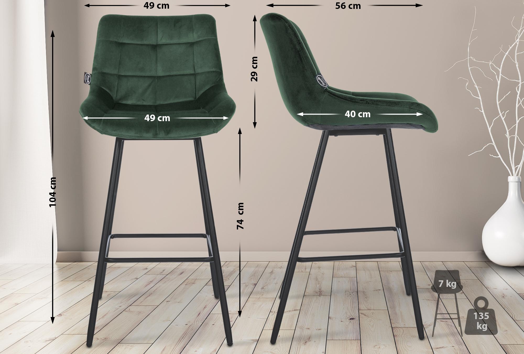 Der Barhocker Weston verkörpert Stil und Stabilität in perfekter Harmonie. Ausgestattet mit einem eleganten Steppmuster im Samt- oder Kunstlederbezug, bietet er einen Blickfang für jede Bar oder Kücheninsel. Die bequeme Polsterung zusammen mit der ergonomischen Rückenlehne verspricht ein außergewöhnlich komfortables Sitzerlebnis. Das solide Vierfußgestell sorgt für die nötige Stabilität und ist mit Bodenschonern versehen. Die integrierte Fußstütze steigert den Sitzkomfort weiter und macht den Barhocker Weston zur idealen Wahl für lange und gesellige Stunden. Ob im gewerblichen Einsatz oder Zuhause, dieser Barstuhl verspricht Langlebigkeit und besticht durch seine pflegeleichten Eigenschaften.