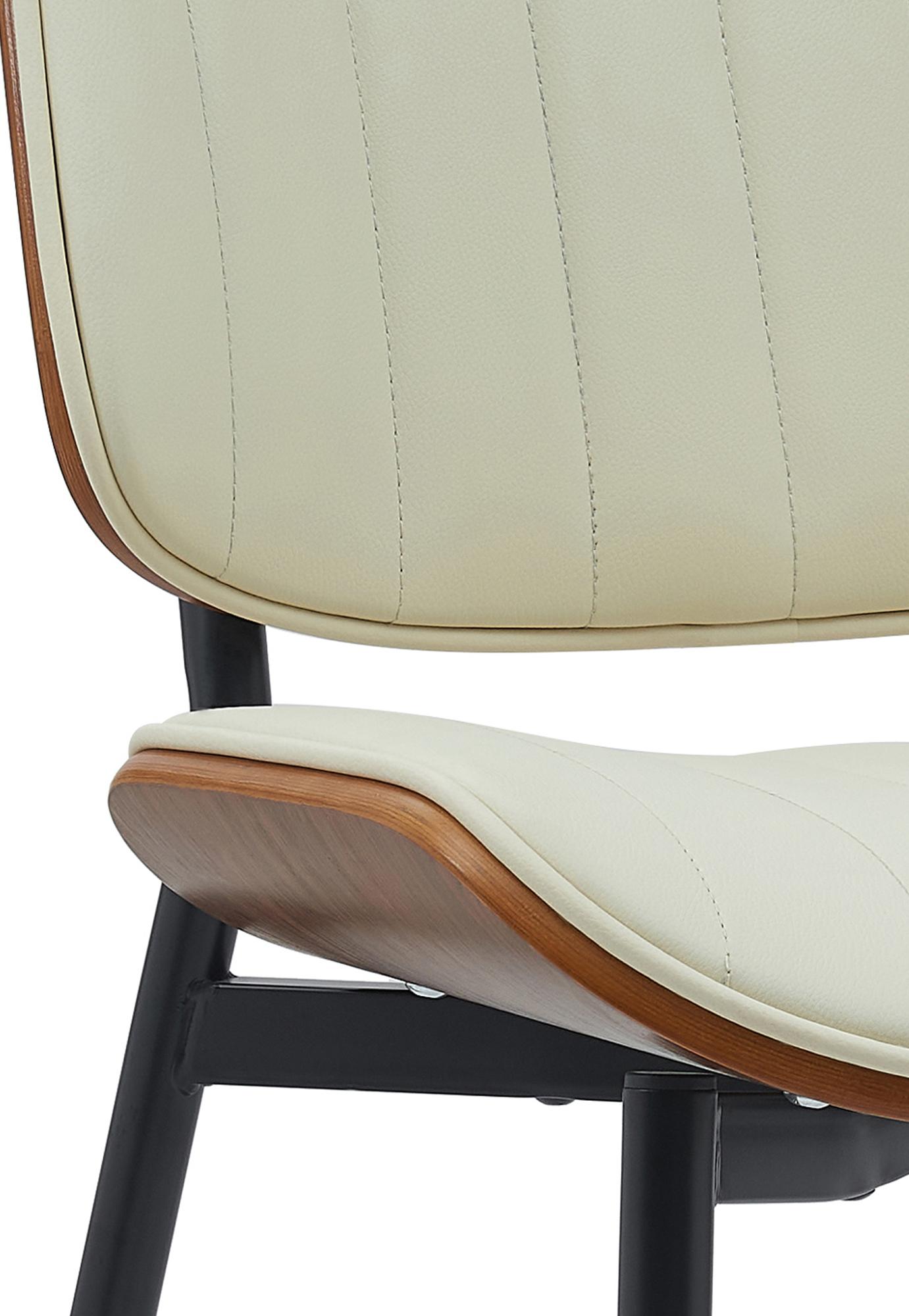 Der Küchenstuhl verfügt über eine bequeme Polsterung über Sitzfläche und Rückenlehne, wodurch ein komfortables Sitzen auch über einen längeren Zeitraum hinaus ermöglicht wird. Das Polster ist wahlweise mit strapazierfähigem Stoffbezug oder pflegeleichtem Kunstlederbezug versehen.
