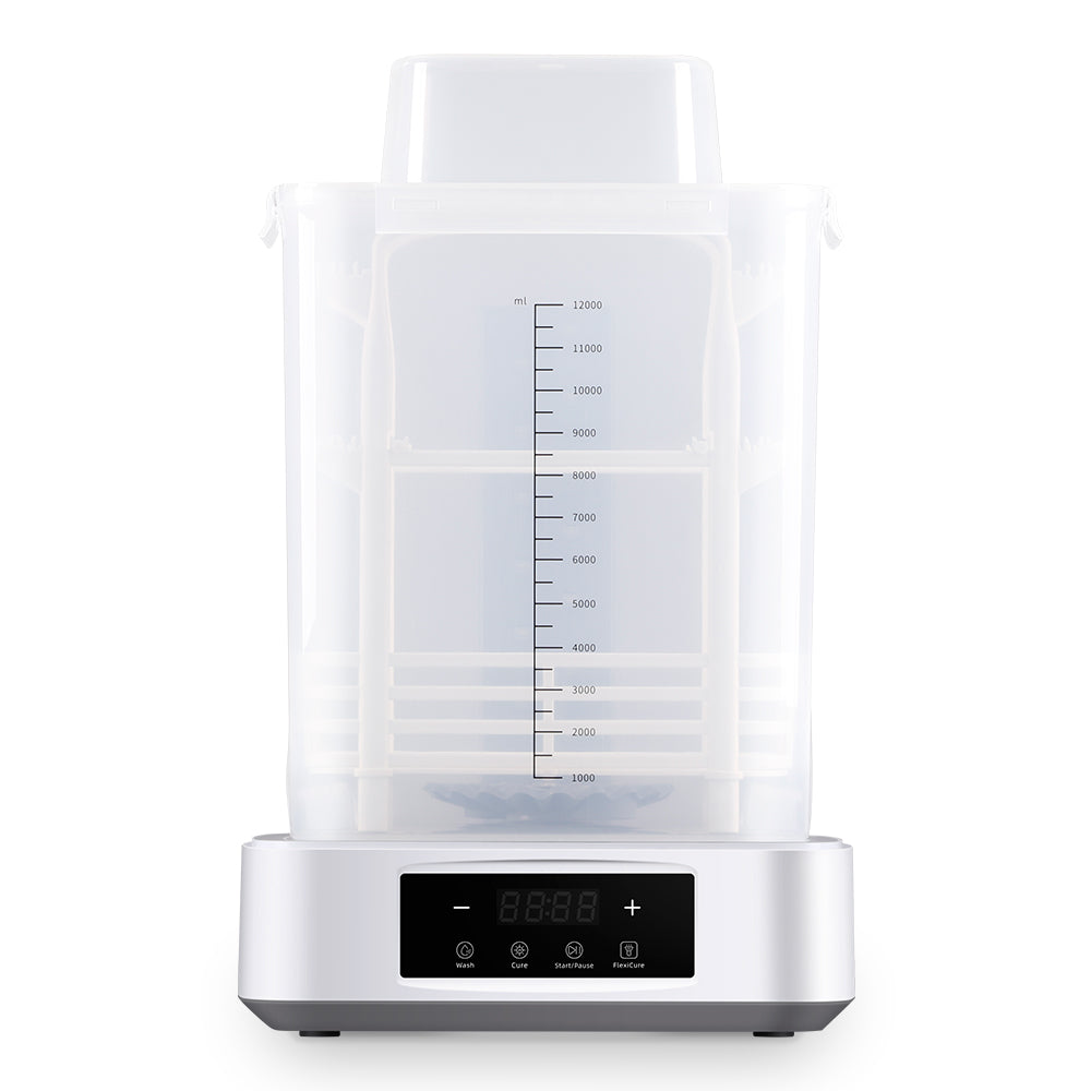 Compared with Anycubic Wash & Cure Plus, the washing volume of the washing basket is increased by about 13.4% to 7.6 liters, and the total volume of the washing bucket is 12 liters, which is suitable for light-curing 3D printers of 10.6 inches and below.