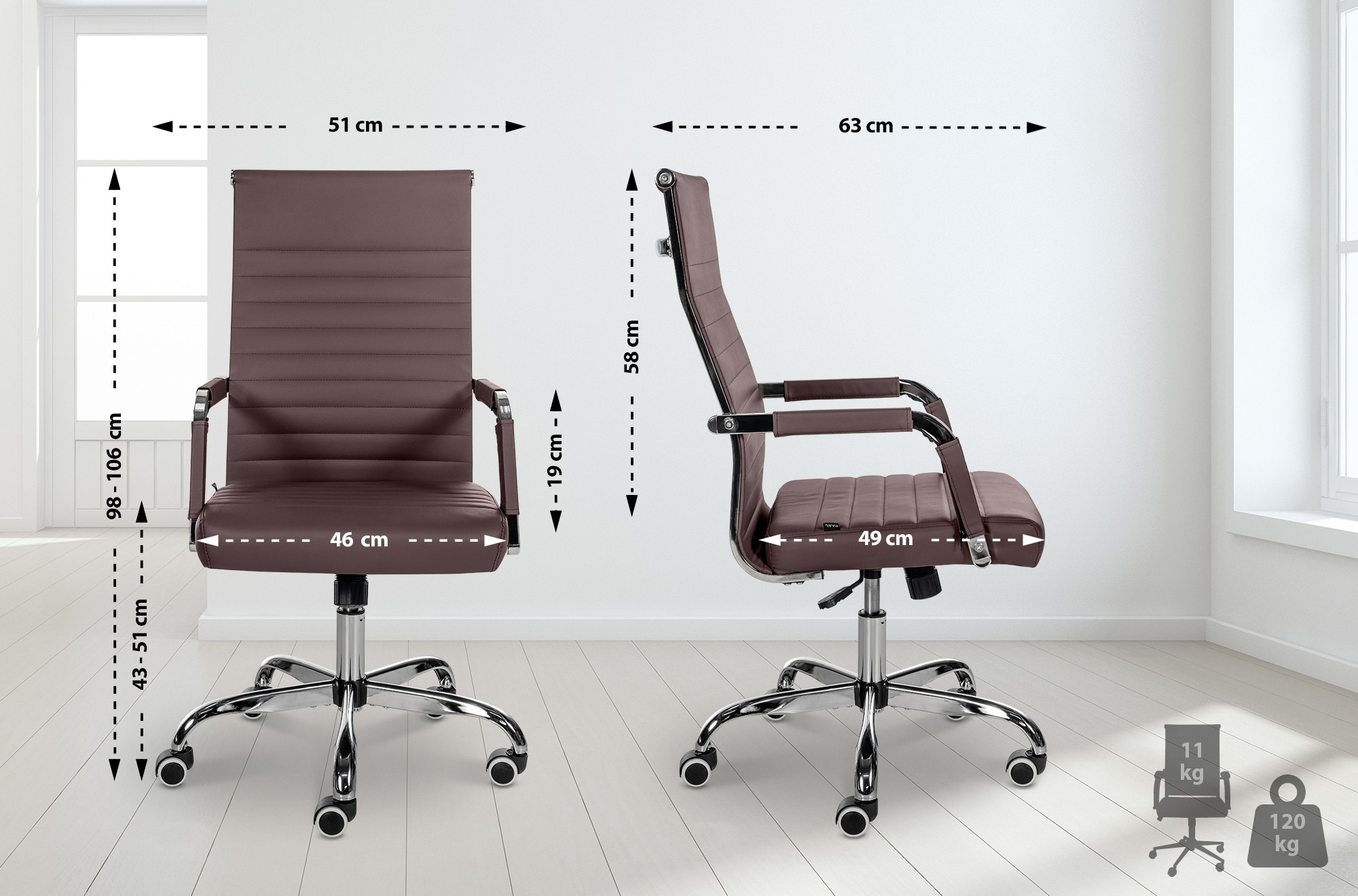 Der Bürostuhl Amadora vereint stilvolles Design mit ergonomischer Funktionalität. Ausgestattet mit einer höhenverstellbaren und 360° drehbaren Sitzfläche, passt sich dieser Stuhl perfekt an Ihre individuellen Bedürfnisse an. Die Wippfunktion ermöglicht es Ihnen, sich auch während langer Arbeitsphasen zu entspannen und die Rückenlehne unterstützt eine gesunde Haltung. Das robuste Chromgestell und die leichtgängigen Rollen bieten eine lange Lebensdauer und hohe Stabilität. Wahlweise erhältlich in Kunstleder oder Stoff, bietet der Amadora Bürostuhl nicht nur Komfort, sondern auch eine pflegeleichte Oberfläche. Mit einer maximalen Belastbarkeit von 120 kg und einem modernen Design, ist dieser Stuhl die perfekte Ergänzung für jedes Büro.