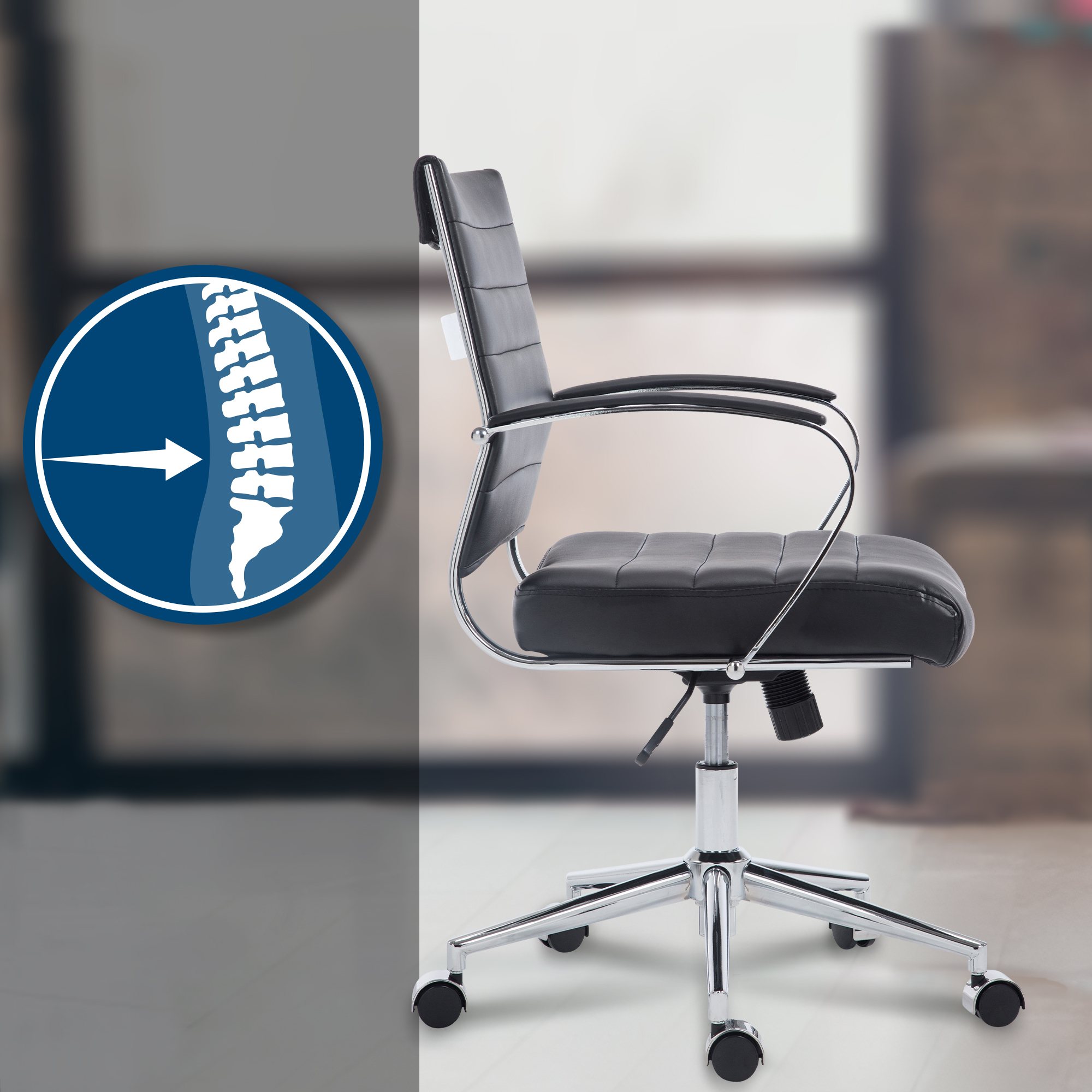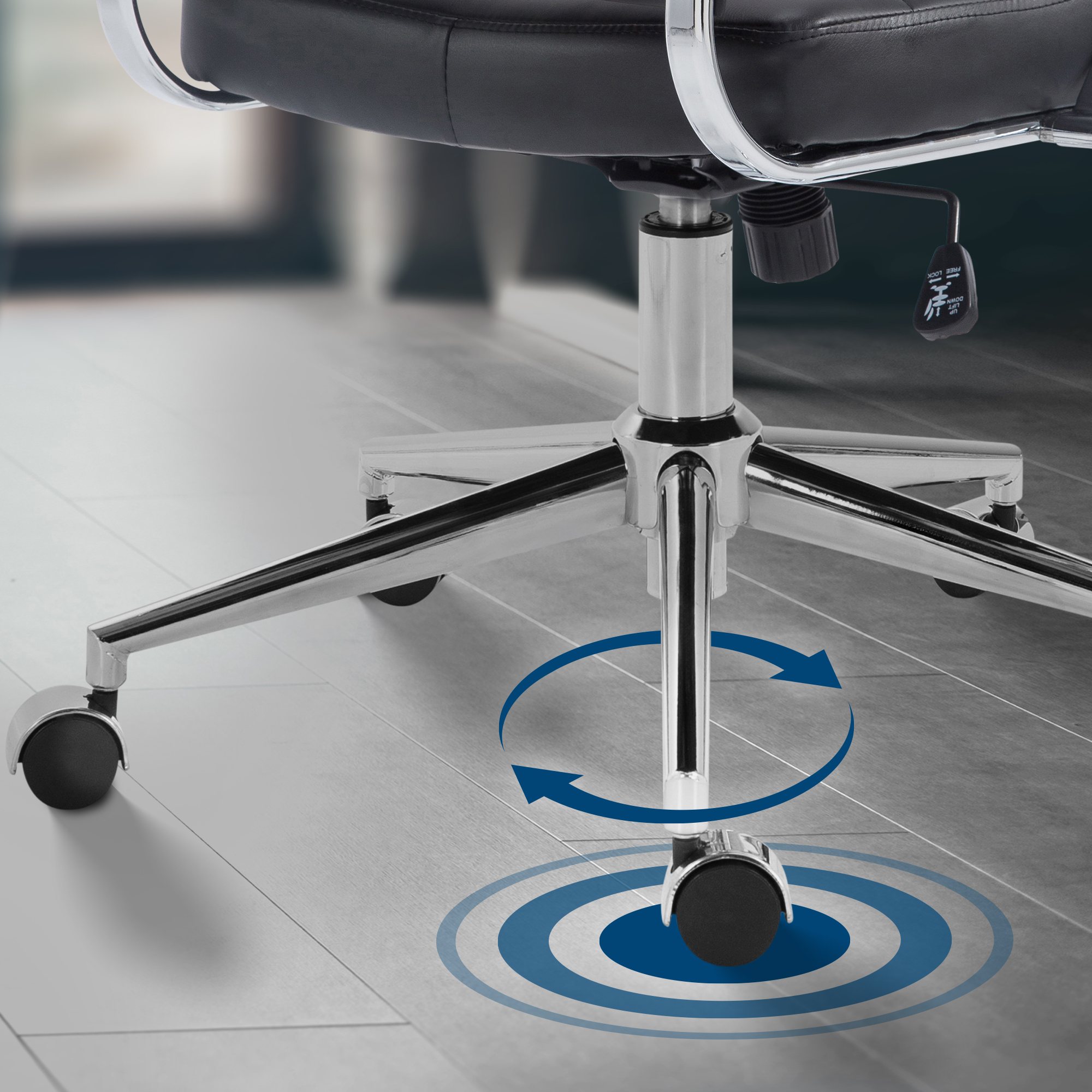 Der Bürostuhl Oakland vereint ergonomisches Design mit individuellem Komfort und stilvoller Optik. Er ist die perfekte Ergänzung für jedes Büro, in dem Gesundheit und Wohlbefinden am Arbeitsplatz großgeschrieben werden. Die gepolsterte Rückenlehne und die ergonomische Form unterstützen Ihre natürliche Sitzhaltung. Mit der höhenverstellbaren Sitzfläche, der einstellbaren Wippfunktion und den 360° drehbaren Leichtlaufrollen passt sich der Stuhl flexibel Ihren Bedürfnissen an. Das Chromgestell bietet Stabilität und eine lange Lebensdauer. Mit seiner breiten Sitzfläche bietet der Oakland auch an langen Arbeitstagen optimalen Sitzkomfort.