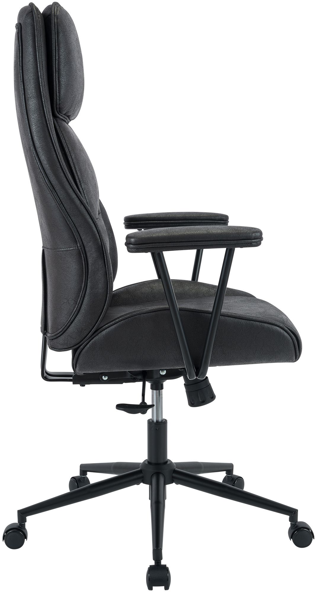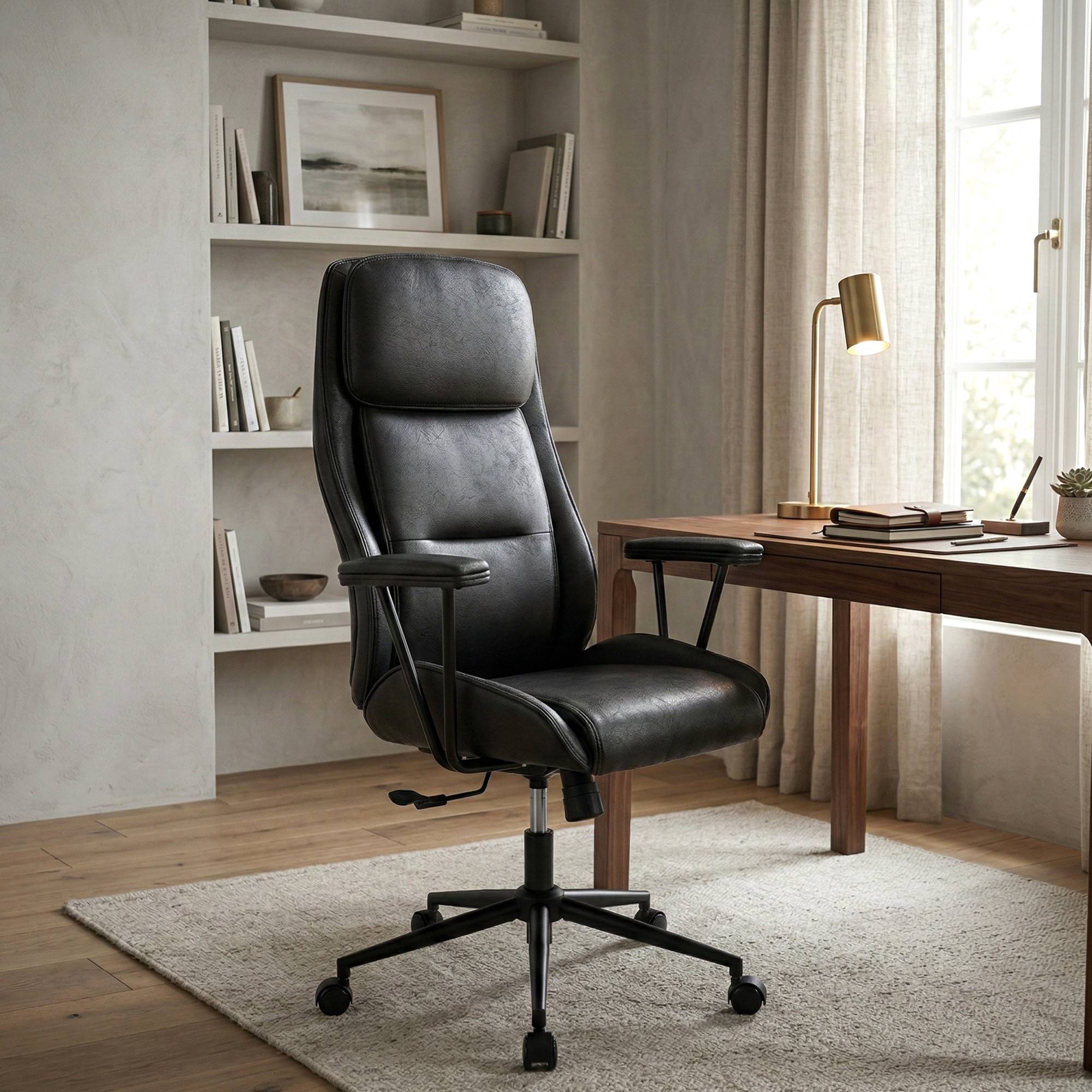 Das dicke Komfortpolster ermöglicht in Kombination mit dem hochwertigem Kunstlederbezug angenehmes Sitzen und ist zudem atmungsaktiv sowie leicht zu reinigen. Dabei sorgt die extra hohe Rückenlehne für perfekten Halt und die leisen, leichtgängigen Rollen ermöglichen ein müheloses Gleiten auf jedem Untergrund.