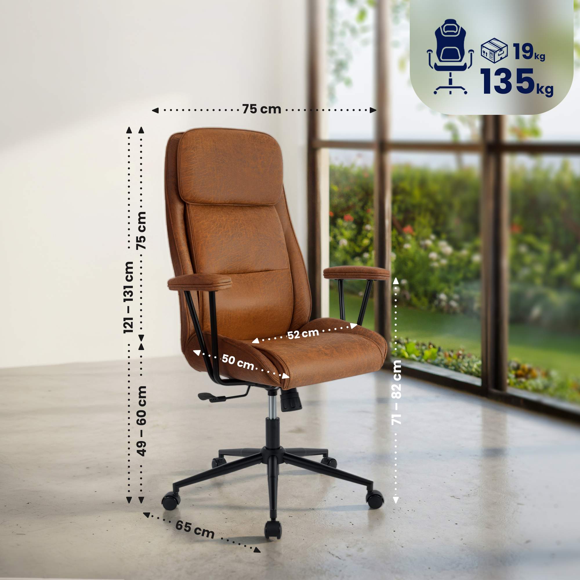 Die hohe Tragfähigkeit von bis zu 135 kg und der extra große Sitz mit einer Sitzbreite von 52 cm bieten optimalen Sitzkomfort, ideal für größere Personen.