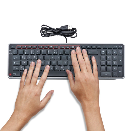 Ganz gleich, wie lange Sie am Computer sitzen: Die konzentrierte Arbeit und die immer gleichen Bewegungen der Hände sind eine überraschend große Belastung für den Körper. Die Tastatur ist neben der Maus das wichtigste Werkzeug und sollte daher so komfortabel wie möglich zu bedienen sein. Das Balance Keyboard ist als perfekte Ergänzung für die RollerMouse Red, Red plus, Rex max und Free3 entwickelt worden. In Kombination mit den verschiedenen RollerMouse Modellen sorgt sie für ideale Arbeitsbedingungen. Sie ist nach hinten leicht abfasselnd und entlastet so die Handgelenke, die nicht nach oben gebogen werden müssen und in einer möglichst natürlichen Position bleiben können. Die Finger werden zusätzlich durch den geringen Tastendruck geschont.Farbe schwarzKabellänge in cm: 180 cmProgrammierbar j/n: jaPlug and PlayMultimediatasten programmierbar auch für MAC OS Xintegrierter NummernblockTastaturneigung kann negativ, neutral oder positiv seinSeparate Handgelenksstütze kann dazu gekauft werdenDeutsches Layout QWERTZAusführung mit KabelGewicht: 0,58 KGProduktmaße: 39,2 x 11,9 x 2,05 cm