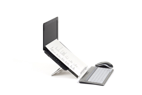 Der Laptopständer Ergo-Q 260 12 inch ist bestens für den mobilen Einsatz mit Notebooks bis 12 Zoll geeignet. Er ist sehr dünn, verfügt über einen integrierten Dokumentanhalter und lässt sich 4fach in der Neigung verstellen und ist damit der ideale Partner für unterwegs. Bei Nutzung eines Laptopständers in Kombination mit externer Tastatur verbessert sich die Sitzhaltung bedeutend. Der Nacken wird weniger belastet, die Unterarme befinden sich in einer neutraleren Position.Für Tablet: neinFarbe silberMaterial: Hylite Aluminium-VerbundVerstellbar j/n: jamit integriertem Dokumentenhaltereinstellbar in 4 Positionen, 10-15 cmrutschfeste Gummifüßeideal für Laptops mit 12 Zollzusammenfaltbar und ultradünnGewicht: 0,24 KGProduktmaße: 24,4 x 18,5 x 0,6 cmBakkerElkhuizen B.V.Taalstraat 1515261 BC VughtNiederlandeinfo@bakkerelkhuizen.combakkerelkhuizen.com