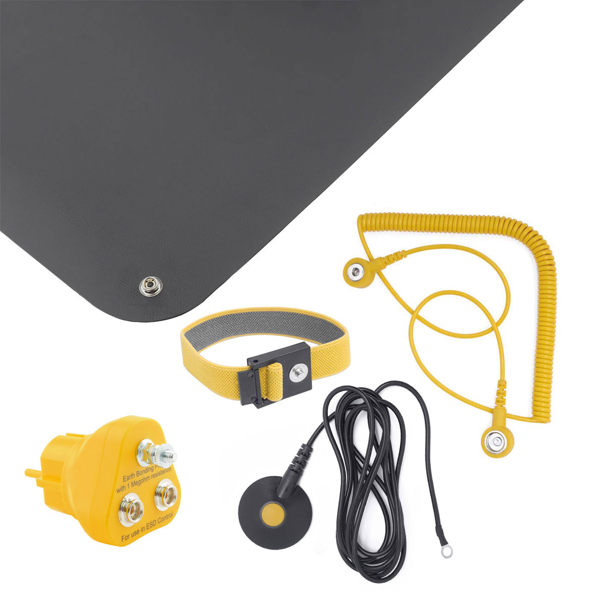 Home » Shop »ESD Handling Set 5-tlg Matte schwarz (610x450x1,5) Armband 2 Kabel Erdungsstecker