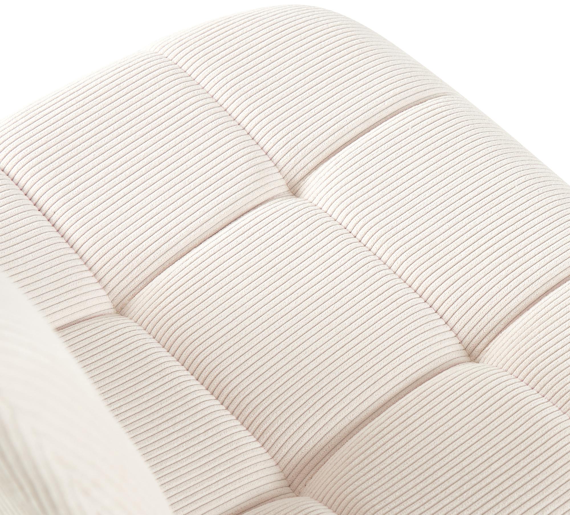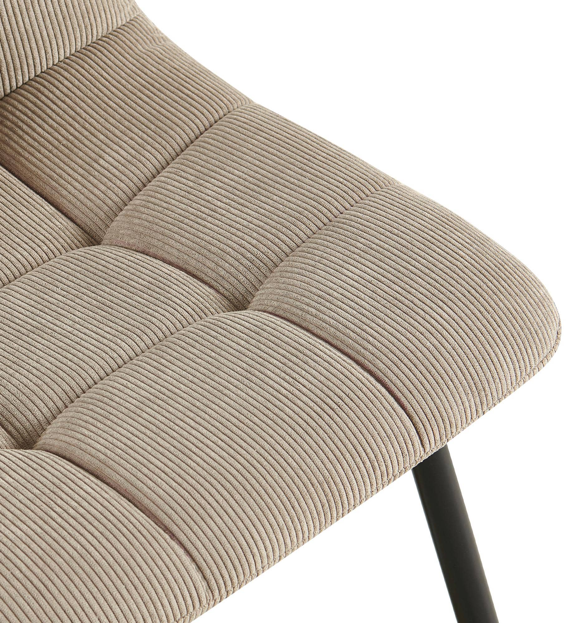 Entscheidend für einen bequemen Sitz ist die angenehme Polsterung über Sitz und Rückenlehne. Dabei sind sowohl Sitzschale als auch Rückenlehne durchgängig mit einem schicken Cordbezug versehen. Das schicke Steppmuster erzeugt einen Blickfang.
