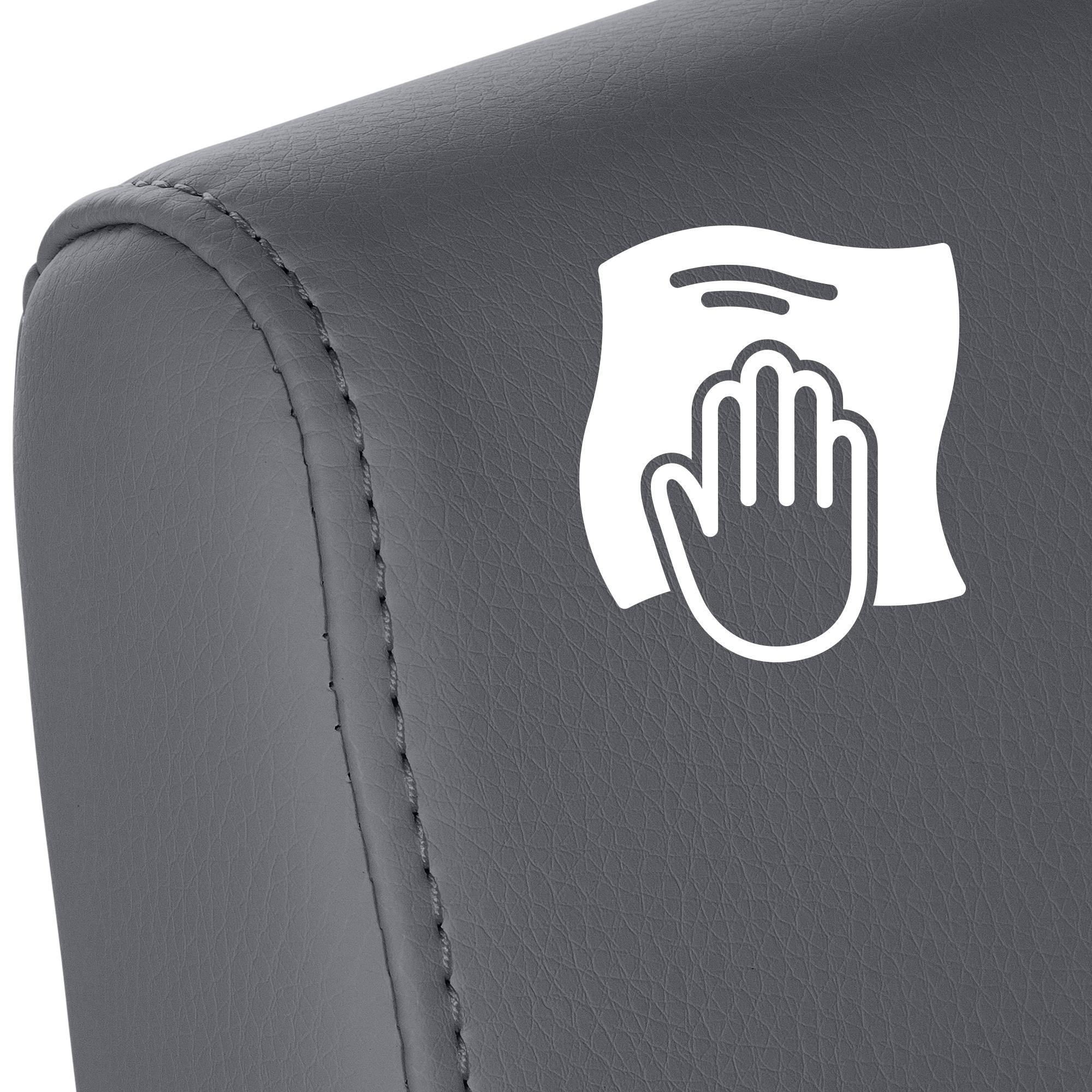 Der Kunstlederbezug ist pflegeleicht und kann einfach mit einem feuchten Tuch gereinigt werden. Die an den Stuhlbeinen angebrachten Kunststoff-Füße schützen den Boden vor Kratzern und erhöhen die Stabilität des Stuhls.