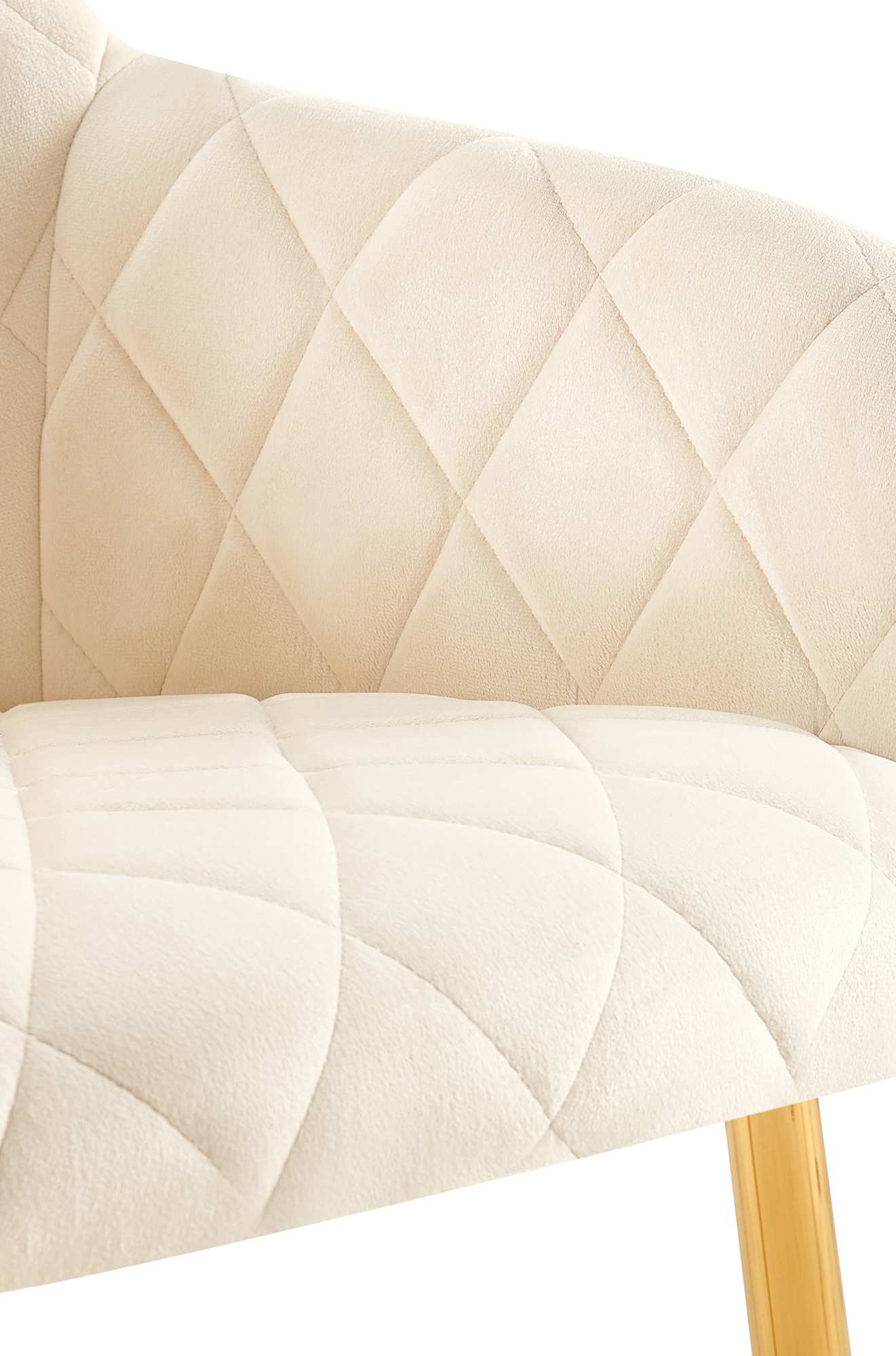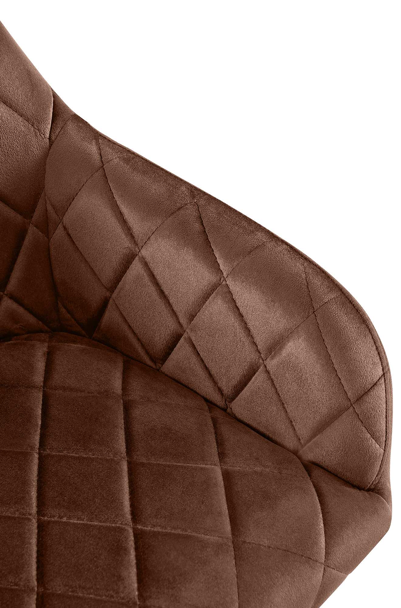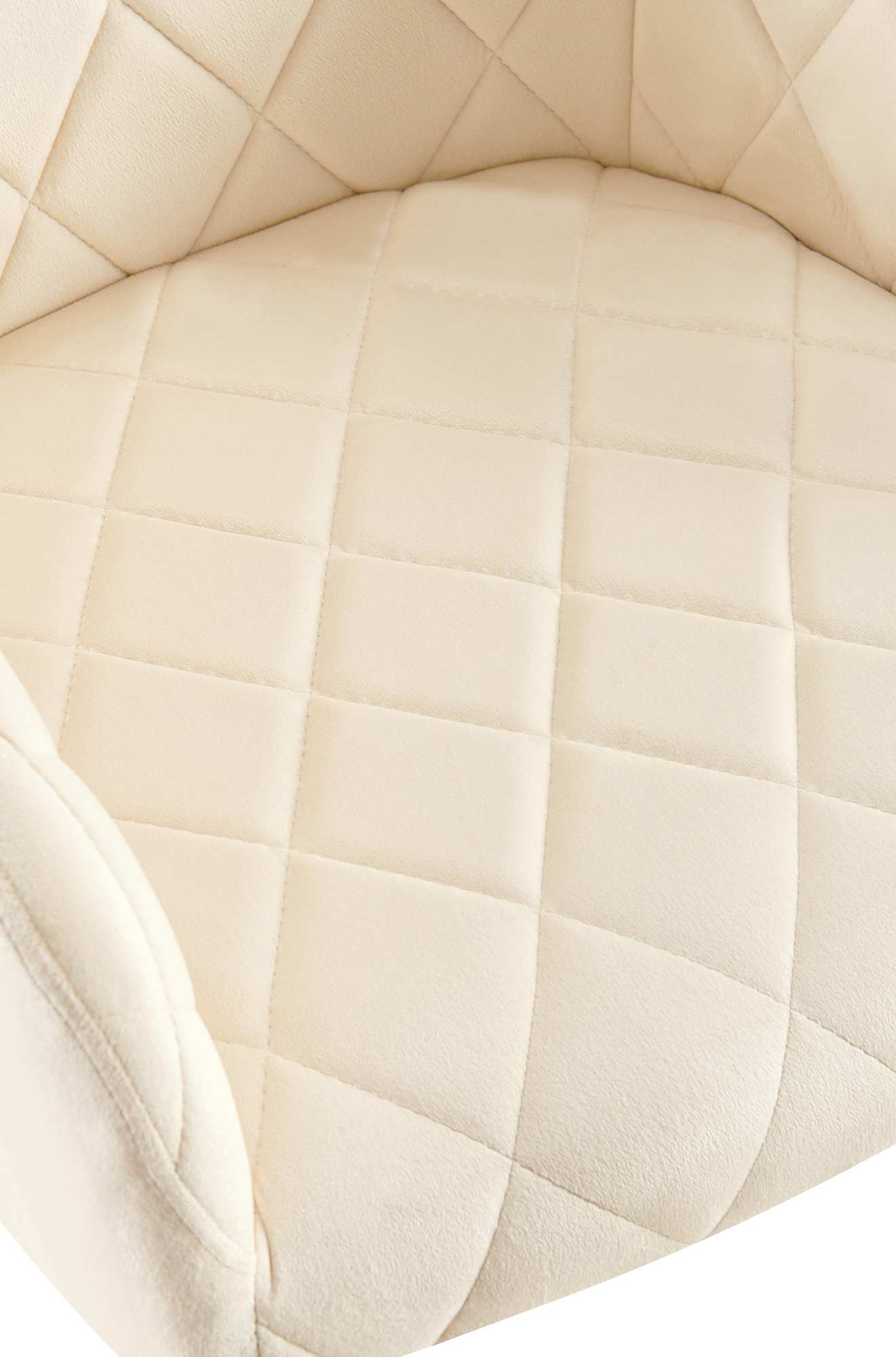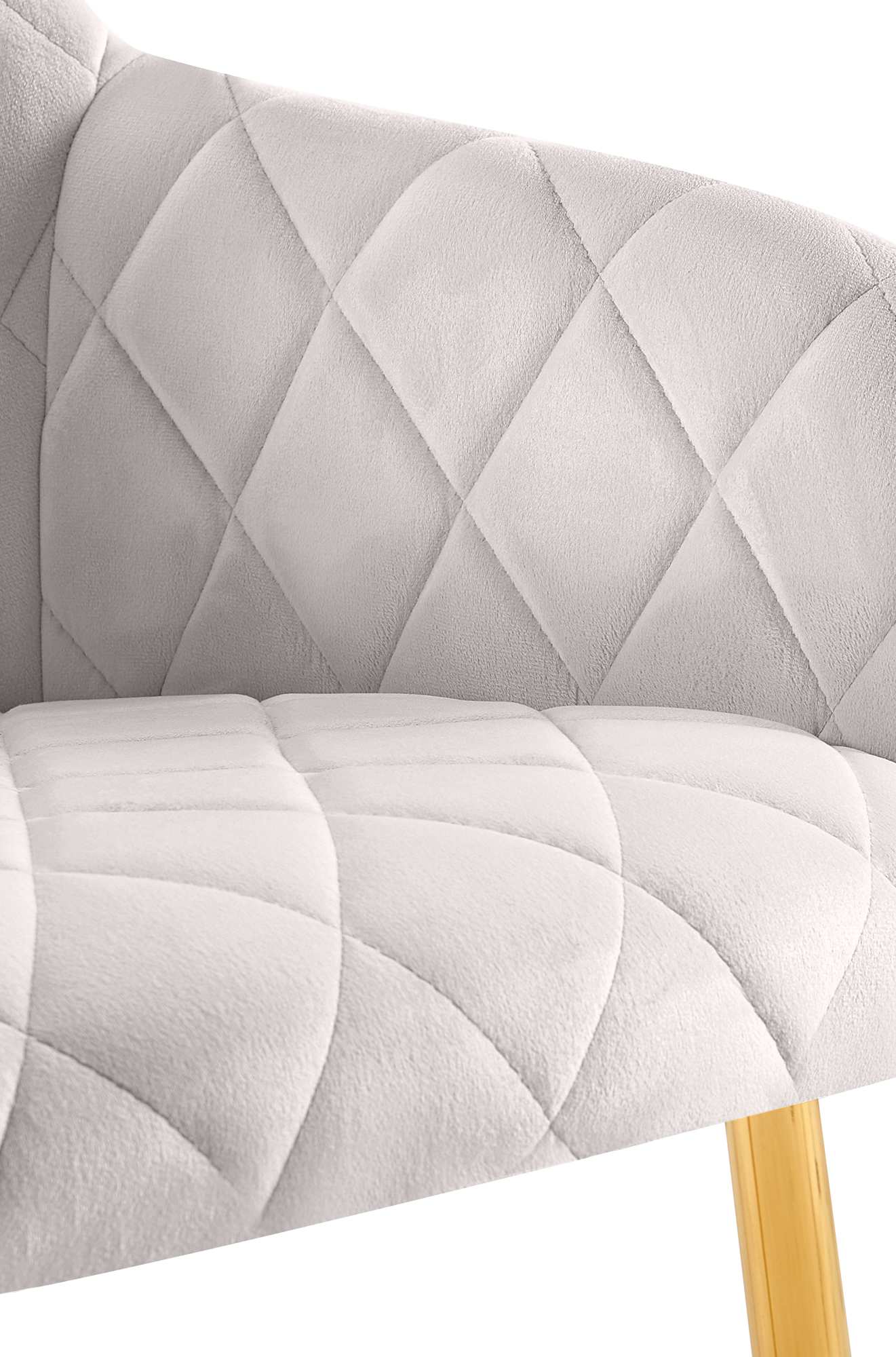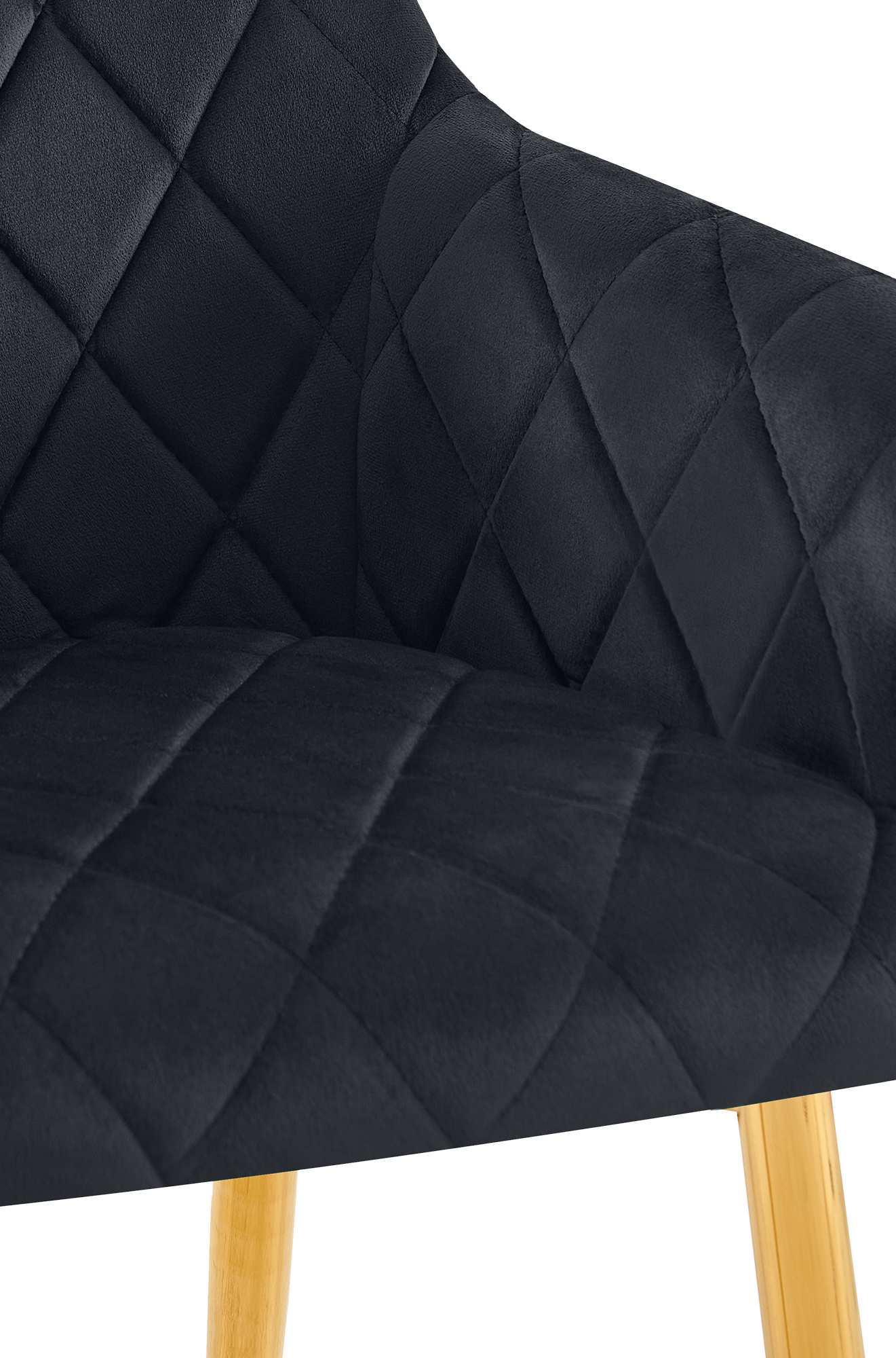 Der Stuhl verfügt über eine großzügig gepolsterte Sitzfläche mit rautenförmigem Steppmuster. Das Polster ermöglicht komfortables Sitzen auch über einen längeren Zeitraum hinaus. Ergänzt wird der Sitzkomfort durch die Rückenlehne und die Armlehnen.