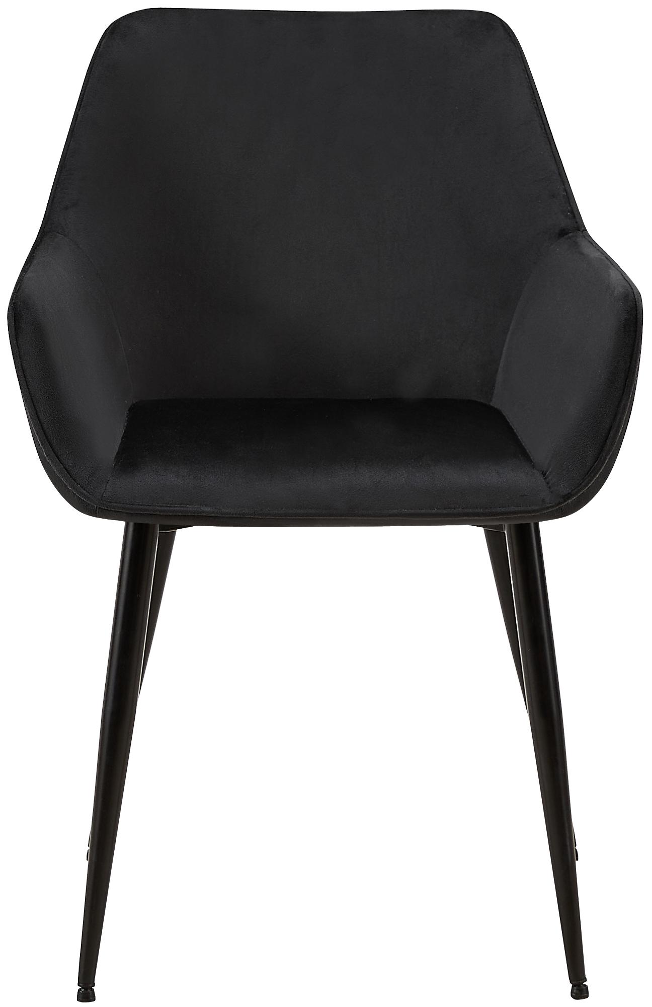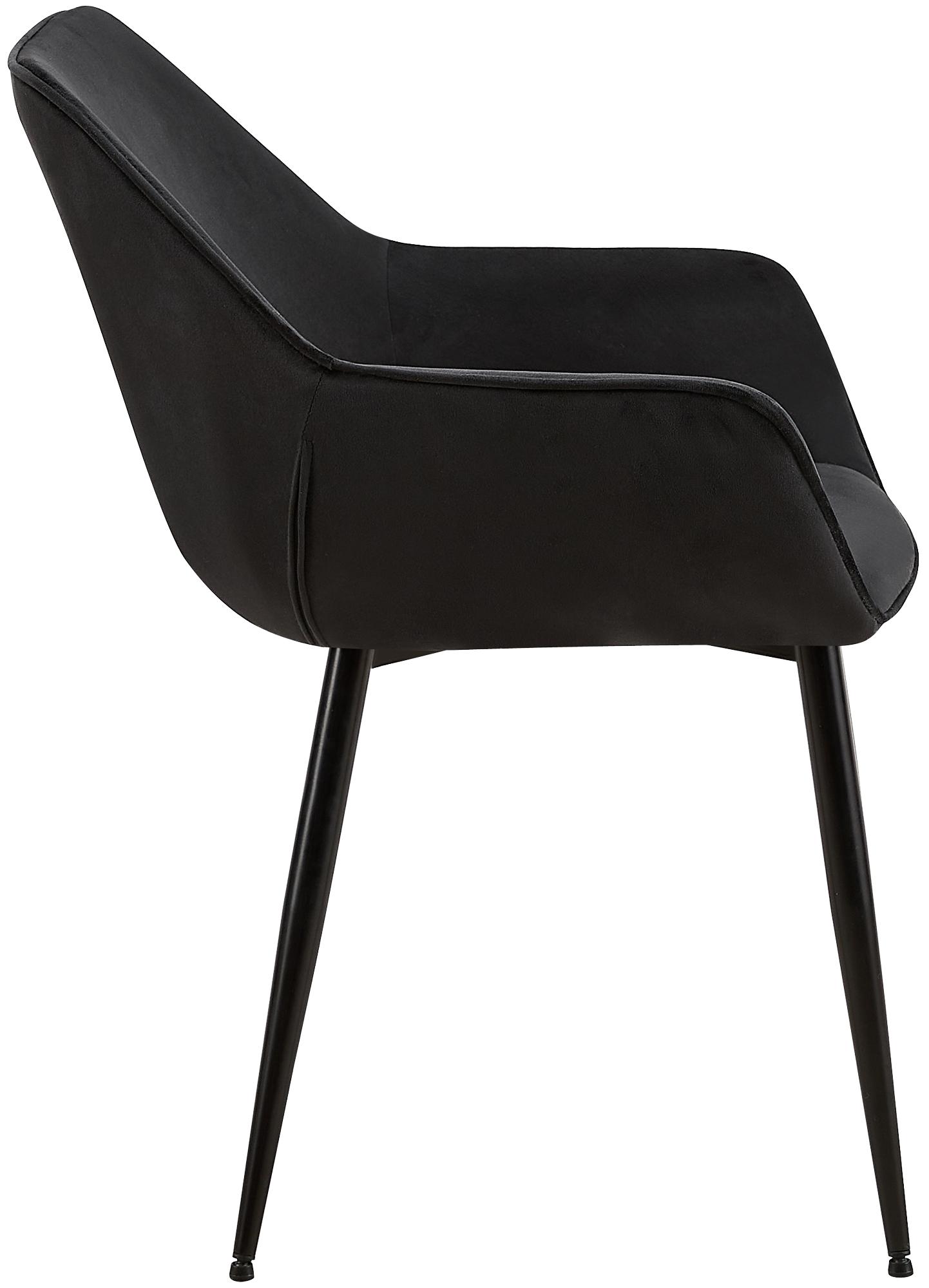 Fundament für diesen Esszimmerstuhl ist das standfeste Vierfußgestell aus schwarzem, pulverbeschichtetem Metall. So kann der Stuhl Vessa bedenkenlos mit bis zu 150 Kilogramm belastet werden. Bodenschoner beugen dabei Beschädigungen empfindlicher Böden vor.