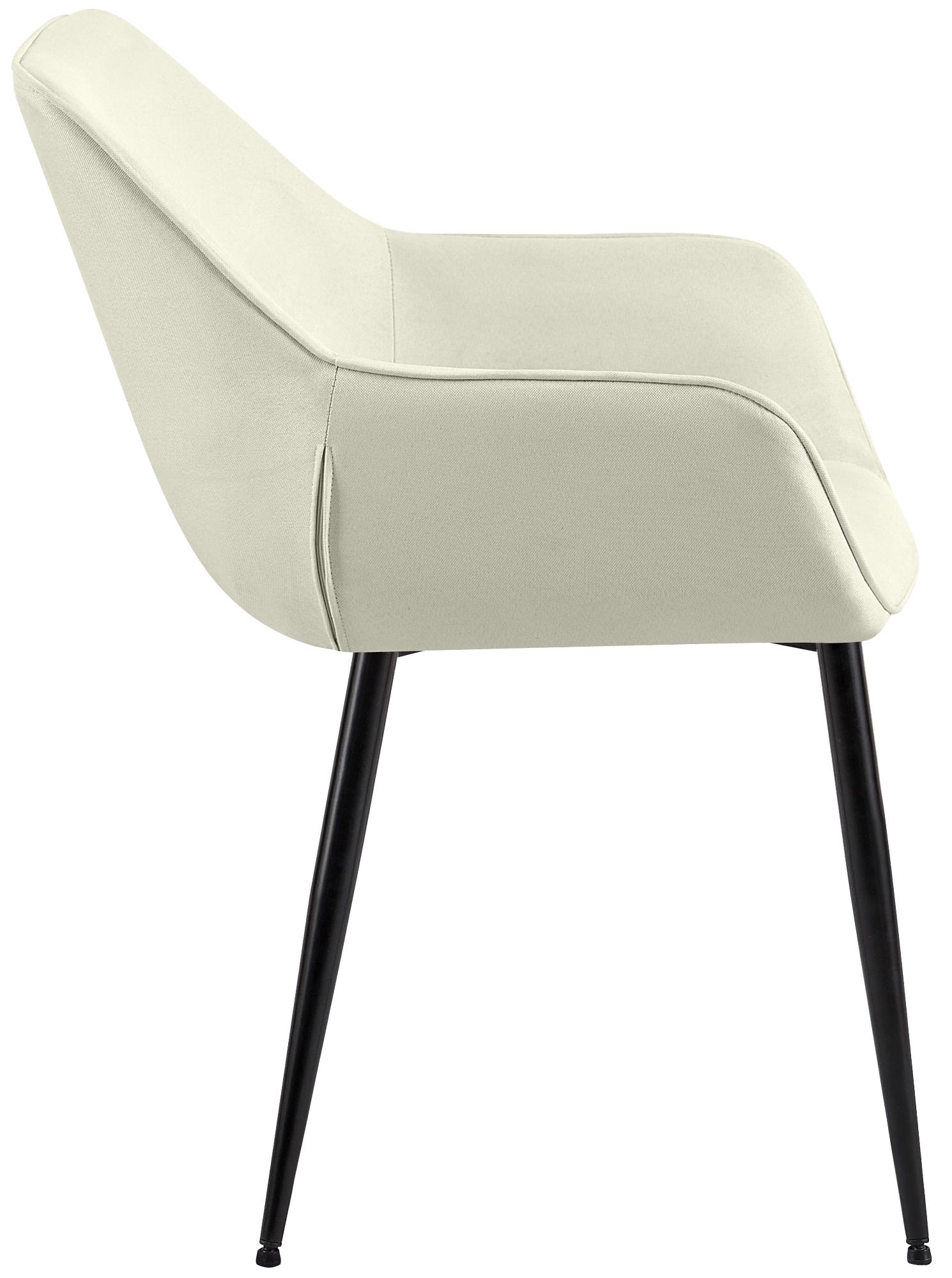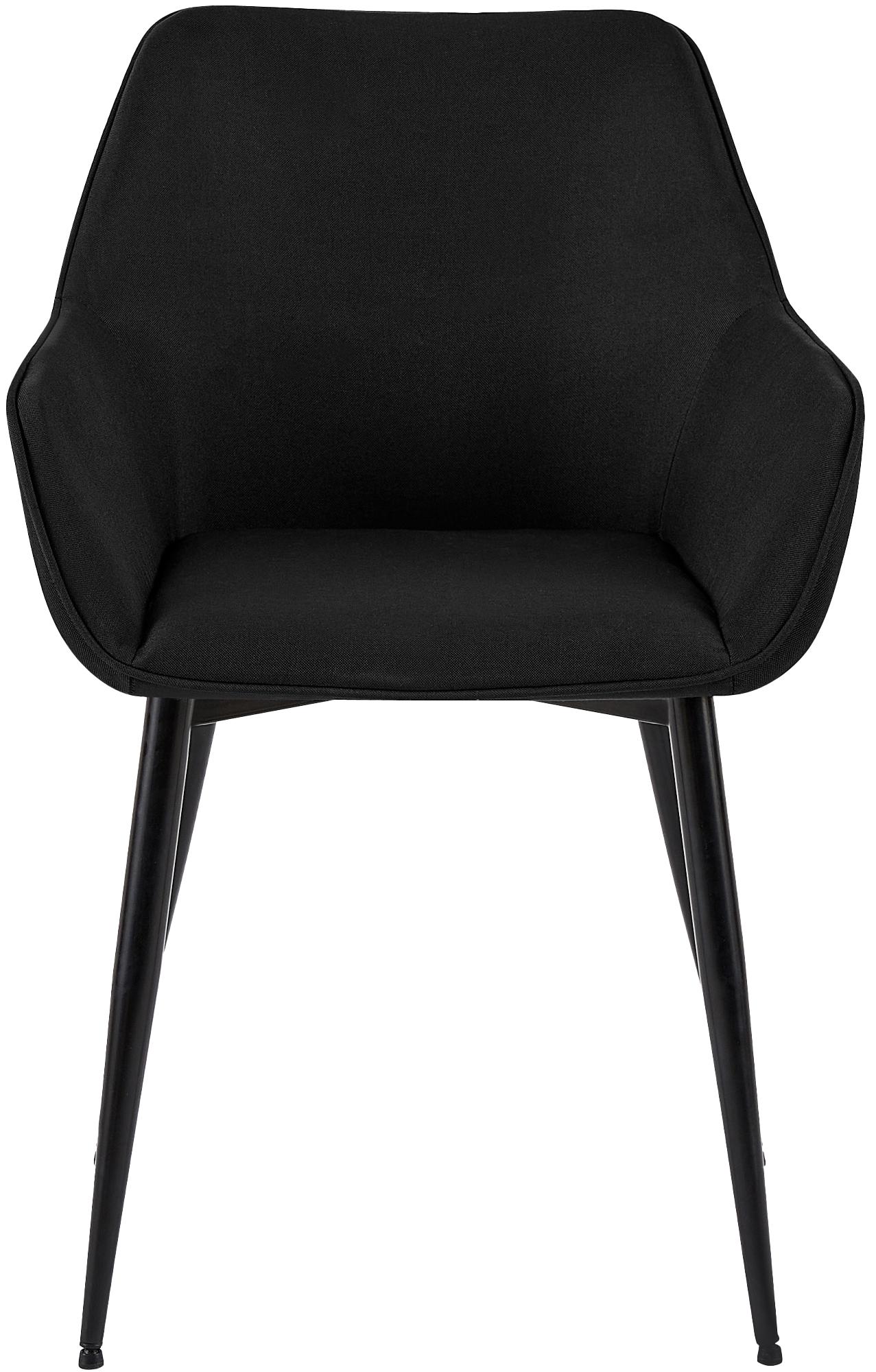 Fundament für diesen Esszimmerstuhl ist das standfeste Vierfußgestell aus schwarzem, pulverbeschichtetem Metall. So kann der Stuhl Vessa bedenkenlos mit bis zu 150 Kilogramm belastet werden. Bodenschoner beugen dabei Beschädigungen empfindlicher Böden vor.