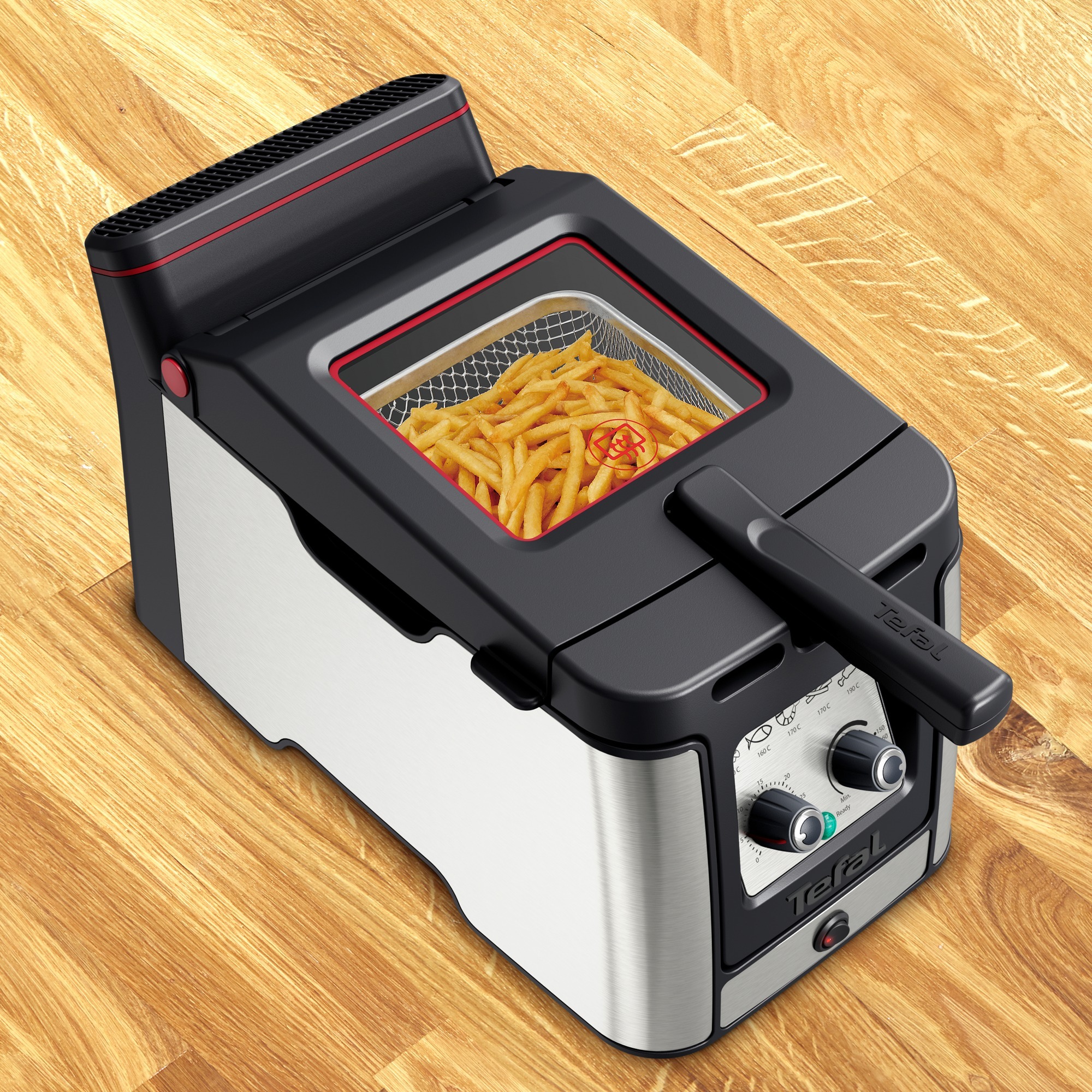 ProduktbeschreibungDie Fritteuse Clear Duo FR600D von Tefal bietet den Genuss köstlicher, perfekt frittierter Leckereien – mit weniger Rauch und Geruch für ein unvergleichliches Kocherlebnis. Die Clear Duo Fritteuse ist mit einem innovativen aktiven Luftstromsystem ausgestattet, das die Rauchentwicklung um bis zu 70% reduziert, sowie mit einem einzigartigen aktiven Filtersystem, das Gerüche um 43% reduziert. Eine außergewöhnliche Auswahl an Funktionen rundet das Paket ab und sorgt für ein perfektes Frittiervergnügen zuhause. Die Temperaturregelung sorgt für präzise Einstellungen, damit die Mahlzeiten stets perfekt gelingen, mit einem Timer für eine Dauer von bis zu 30 Minuten. Das intelligente und sichere Design ermöglicht das Absenken des Frittierkorbs bei geschlossenem Deckel, um Ölspritzer und mögliche Verbrennungen zu vermeiden, und der Cool-Touch-Griff sorgt für zusätzliche Sicherheit. Durch das extra-große Sichtfenster, das nicht beschlägt, lässt sich der Kochvorgang leicht kontrollieren. Bis zu 1,2 kg Lebensmittel beim Garen von Zutaten wie Chicken Nuggets oder 650g Zutaten wie tiefgefrorene Pommes frites, eine Fritteuse, die ideal für eine Vielzahl von unwiderstehlichen Leckereien ist. Reinigen ist dank der abnehmbaren und spülmaschinenfesten Teile, einschließlich Öltank, Deckel, Frittierkorb, Aluminiumfilter, Kohlefilterdeckel und Auffangbehälter für überschüssiges Öl ein Kinderspiel.
