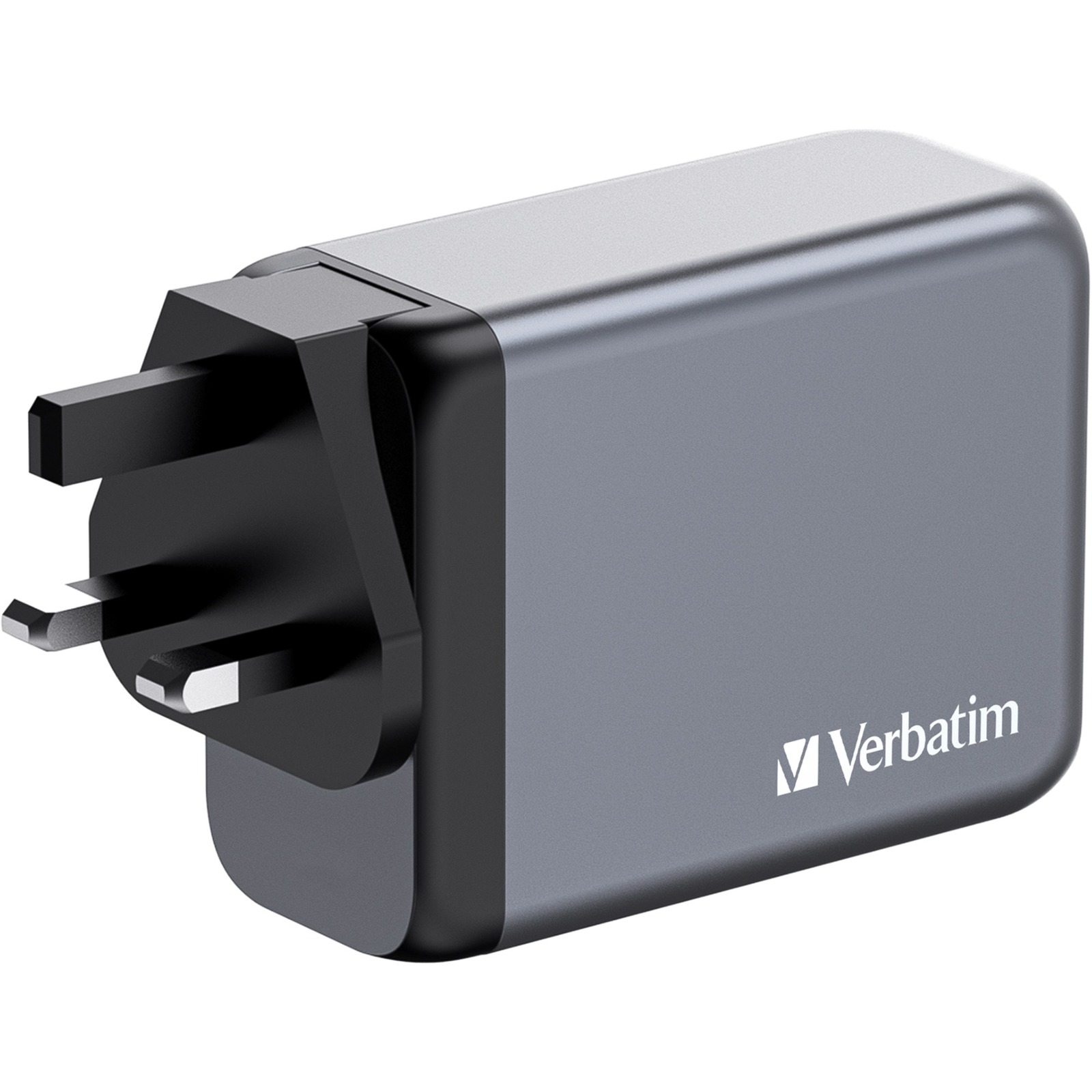 ProduktbeschreibungDas 200-Watt GaN-Ladegerät von Verbatim vereint mehrere Ladegeräte in einem einzigen Gerät. Zwei USB-C PD 100-W-Anschlüsse, ein USB-C PD 65-W-Anschluss und ein USB-A QC 3.0 (EU/UK/US)-Anschluss sind in einem schlanken, gerade handtellergroßen Design vereint. Das Ladegerät eignet sich ideal zum Laden von Laptops, Tablets, Smartphones, Spielkonsolen usw., im Büro, zu Hause oder unterwegs. Es unterstützt das gleichzeitige Laden von bis zu vier Geräten mit einer Ausgangsleistung von insgesamt maximal 200 Watt. Die Galliumnitrat-(GaN-)Technik sorgt für schnelles, effizientes Laden mit hoher Leistung bei geringerer Wärmeentwicklung. Da GaN-Ladegeräte kleiner und leichter als herkömmliche Ladegeräte auf Silikon-Basis sind, sind sie sehr einfach zu transportieren. Das Ladegerät wird aus qualitativ hochwertigen, nicht entflammbaren Materialien hergestellt und ist mit vier Schutzsystemen ausgestattet: Überstromschutz, Überspannungsschutz, Kurzschlussschutz und Übertemperaturschutz. Mit ausklappbaren US-Stiften und austauschbaren EU- und UK-Steckern ist dieses Ladegerät der perfekte Reisebegleiter.