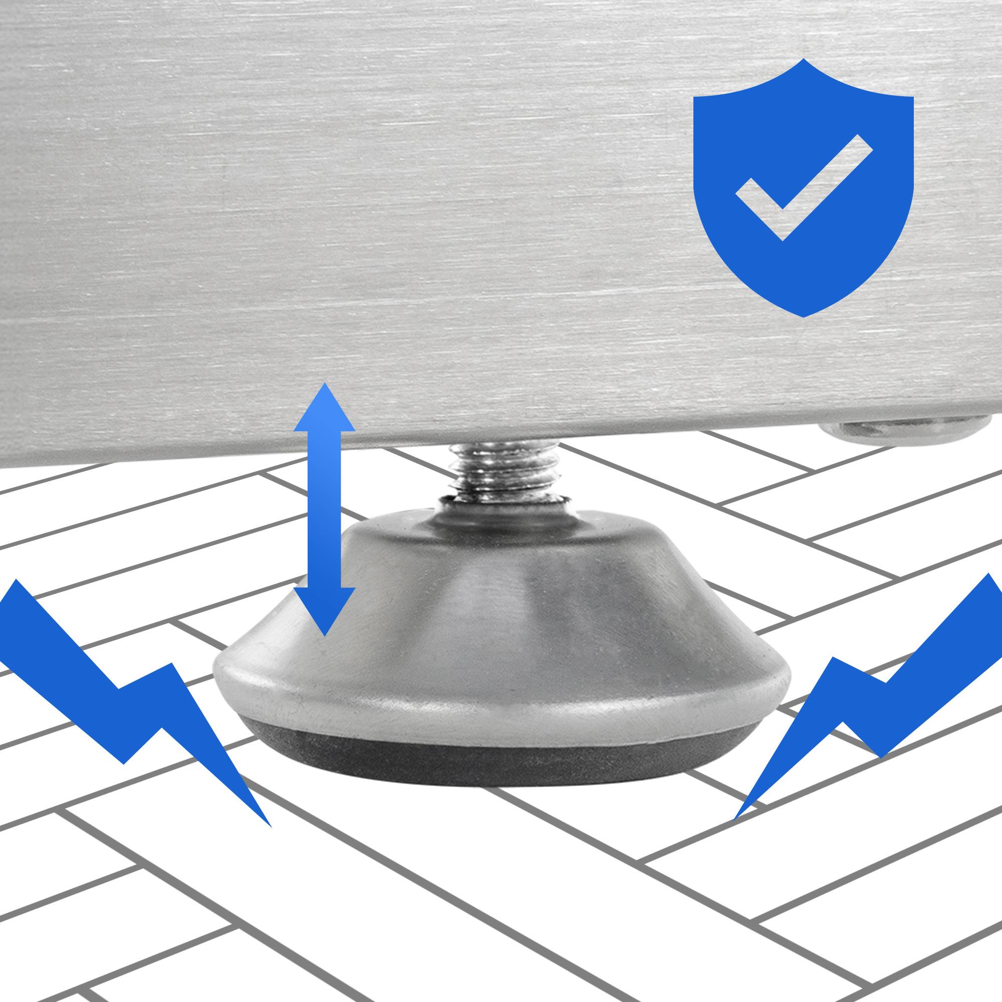 Damit das Holz nicht herausfällt, sind an jeder Seite 3 Querstreben angebracht. Sie gewährleisten auch zusätzliche Stabilität des Kaminholzständers. Außerdem ist das Regal mit 4 Bodenschonern ausgestattet, die in der Höhe regulierbar sind, um Unebenheiten ausgleichen zu können.