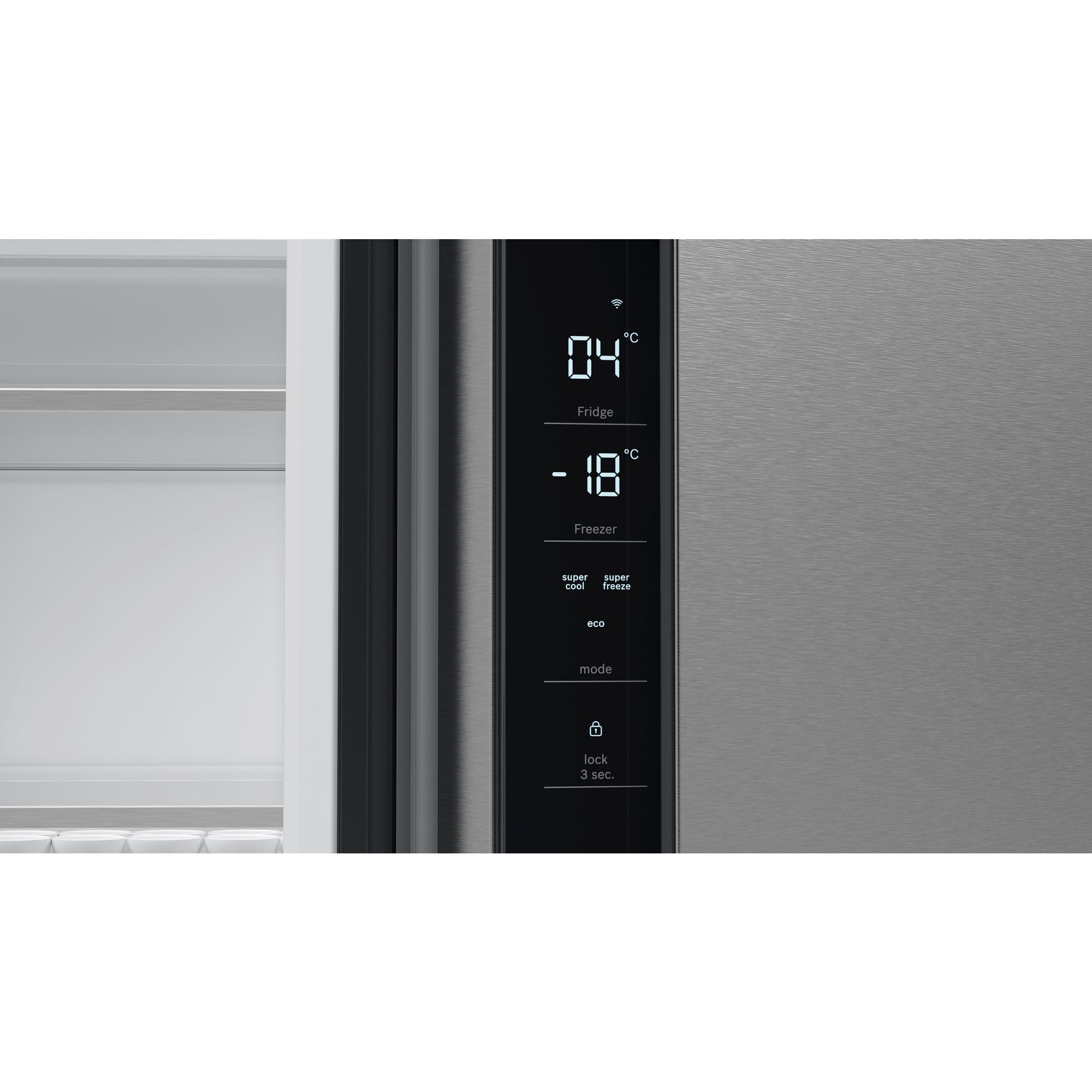 ProduktbeschreibungDer French-Door-Kühlschrank Bosch KFN96APEA ist mit einem Gesamtnutzinhalt von 605 Litern bestens für den großen Haushalt geeignet. Das 405 Liter umfassende Kühlteil stellt vier Abstellflächen aus Sicherheitsglas, eine VitaFresh XXL Schublade auf Rollen mit Feuchtigkeitsregulierung für Obst und Gemüse, eine VitaFresh 0°C Schublade für Fisch und Fleisch sowie vier Türfächer zur Verfügung. Dank der Silbermetallic Rückwand mit MultiAirflow zirkuliert kühle, frische Luft für gleichmäßige Temperatur im ganzen Kühlschrank. Der Gefrierbereich mit einem Nutzinhalt von 200 Litern ist mit NoFrost-Technologie gegen Eis- und Reifbildung ausgerüstet und bietet sechs Gefrierschubladen für Tiefkühlkost. Besonders komfortabel sind die SuperKühlen- und SuperGefrieren-Funktion sowie die außenliegende Temperatur- und Funktionssteuerung mittels TouchControl. Zudem lässt sich der KFN96APEA dank Home Connect auch aus der Ferne Steuern und Überwachen. Mit einem Stromverbrauch von 333 kWh im Jahr ist der KFN96VPEA in die Energieeffizienzklasse E eingestuft.