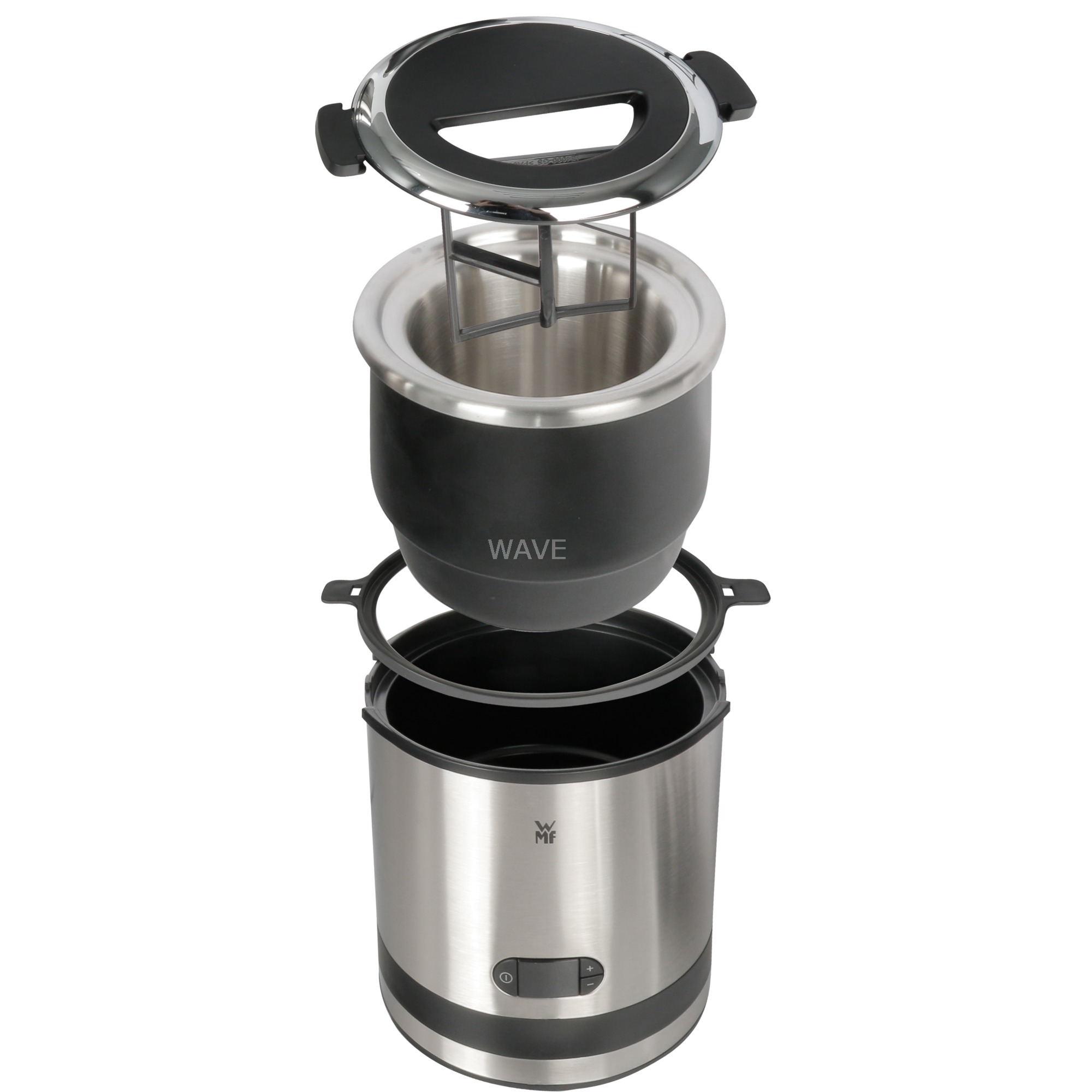 ProduktbeschreibungDreierlei Gefrorenes frisch serviert: Leckere Sorbets, cremiges Eis und Frozen Yoghurt können in wenigen Minuten mit der kompakten WMF Küchenminis Eismaschine 3 in 1 selbst zubereitet werden. Einfach Früchte, Pistazien oder andere Zutaten nach Geschmack in den formschönen, herausnehmbaren Gefrierbehälter mit 300 ml Fassungsvermögen geben. Der rotierende Rührer und die clevere Zeitsteuerung erledigen den Rest. Mit dem dazugehörigen Eislöffel können die eiskalten Varianten direkt portioniert und serviert werden.