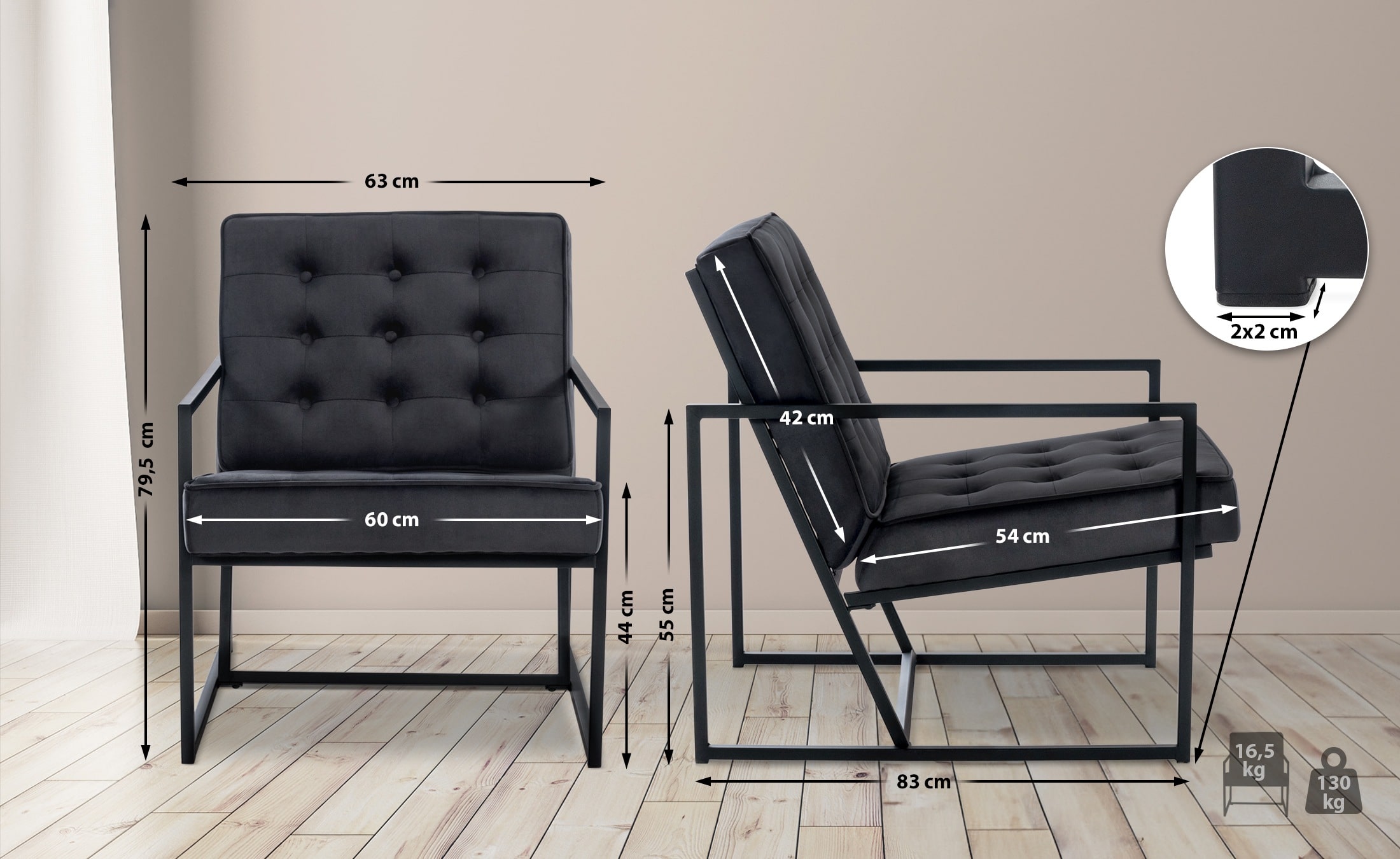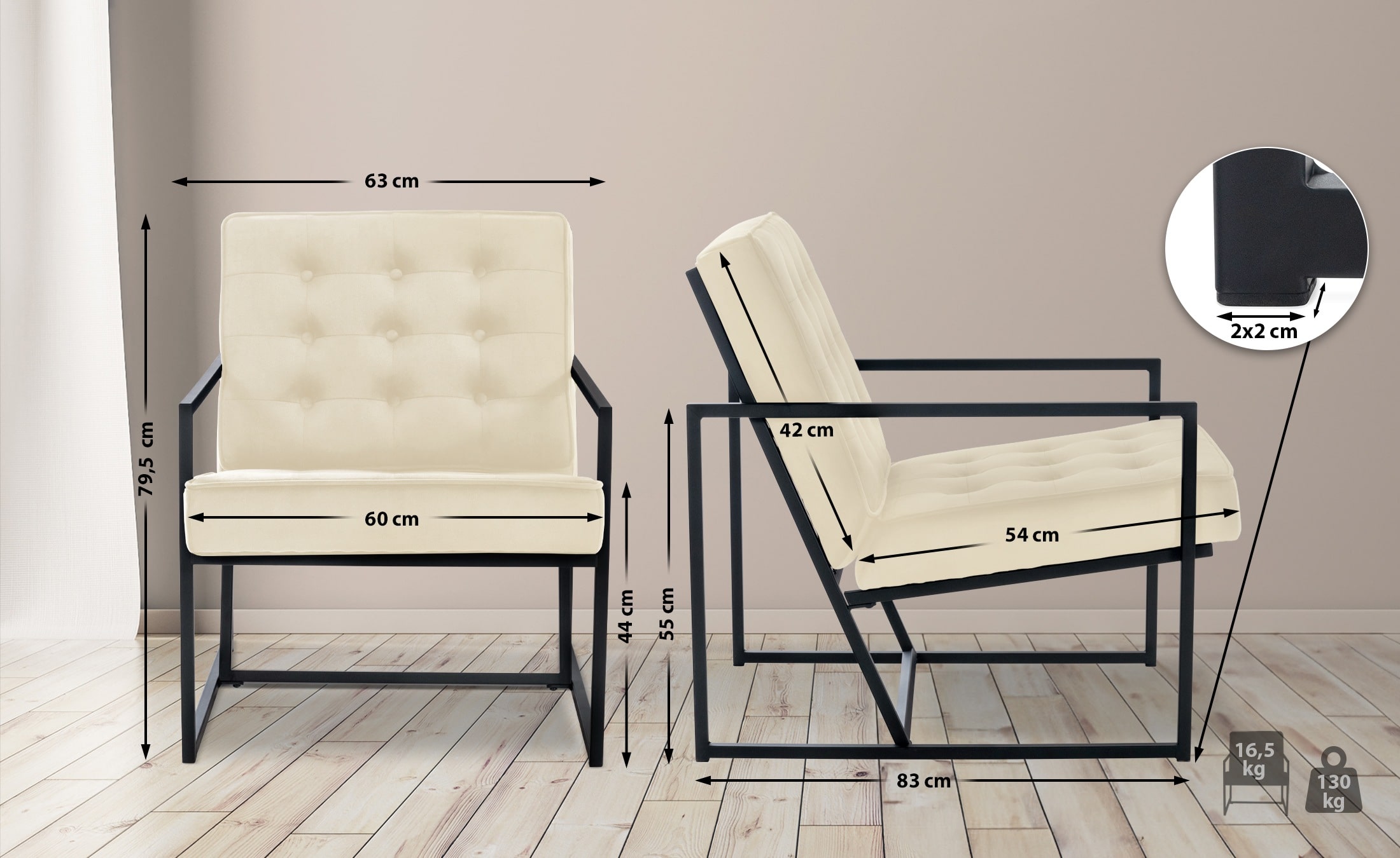 Sitzfläche (BxT): 60 x 54 cm