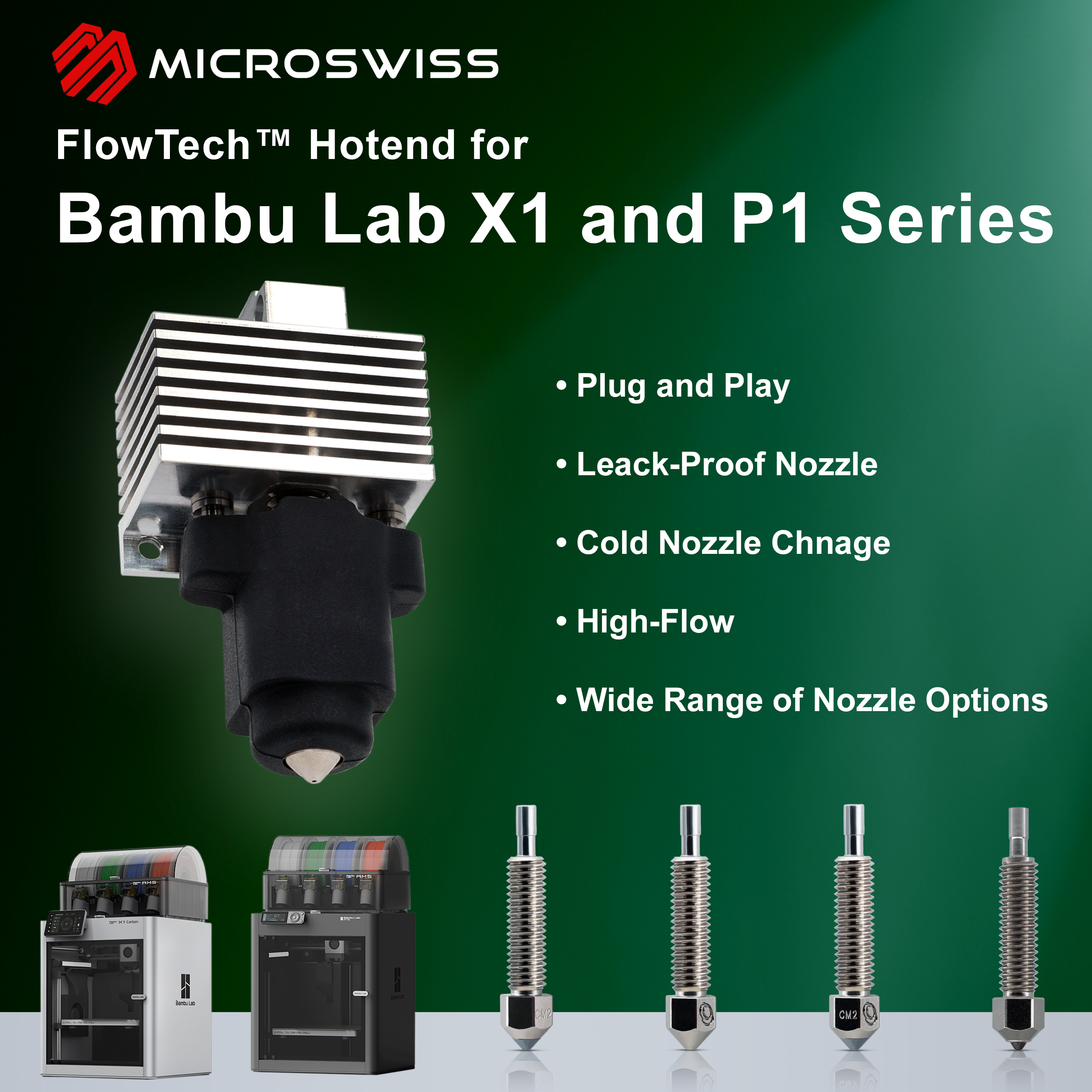 Microswiss FlowTech™ Hotend for Bambu Lab P1P/P1S – CM2™ CHT – Hardened Tip – High Flow
